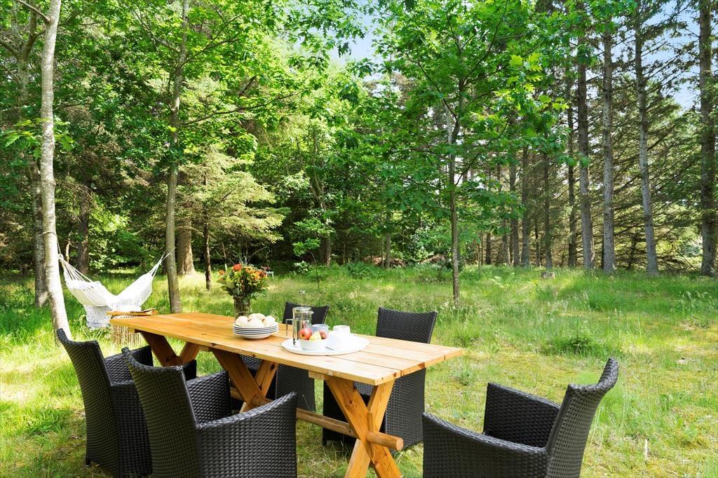 Mit einer Entfernung von 1,3 Kilometern bis zum Saltum Strand spricht nichts gegen zahlreiche Bäder in der rauschenden Nordsee und gegen viele wundervolle Sonnenuntergänge, die Sie vom Strand aus genießen. Zügig erreichen Sie zudem den populären Vergnügungspark Fårup Sommerland, der nicht nur die Augen Ihrer Kinder zum Strahlen bringen wird. Die nahegelegenen Badeorte Blokhus und Løkken sind per Pkw schnell erreicht. Beide Orte laden mit entspannter Ferienstimmung, interessanten Geschäften und gemütlichen Restaurants zum Bummeln und Verweilen ein. Ein wenig östlich des Hauses verläuft der "Sti 100", bei dem es sich um einen beliebten Wander- und Fahrradpfad handelt, der Sie durch den Wald, die Dünen und ganz bis hinunter an den Strand führt.
