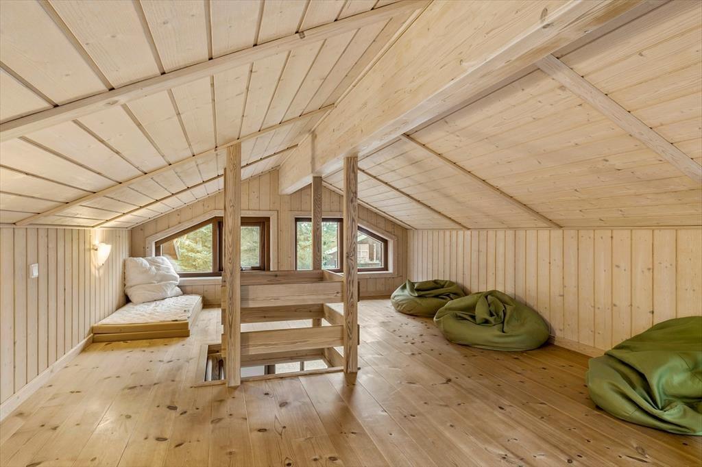 Rund um das Ferienhaus erwartet dich ein großes Naturgrundstück mit hohen Bäumen, Vogelgezwitscher und ganz viel Privatsphäre. Auf der sonnigen Terrasse kannst du morgens deinen Kaffee genießen und abends den Grill anwerfen – und das alles völlig ungestört. Die Kinder können hier frei spielen, ohne dass du dir Sorgen um den Verkehr machen musst, und die entspannte Atmosphäre lädt einfach zum Durchatmen ein.
