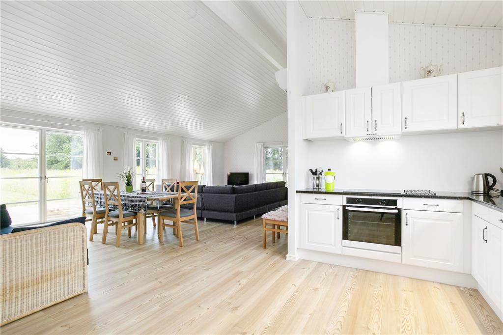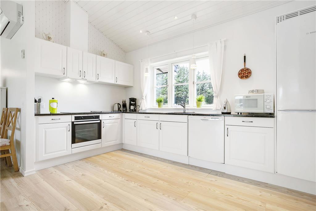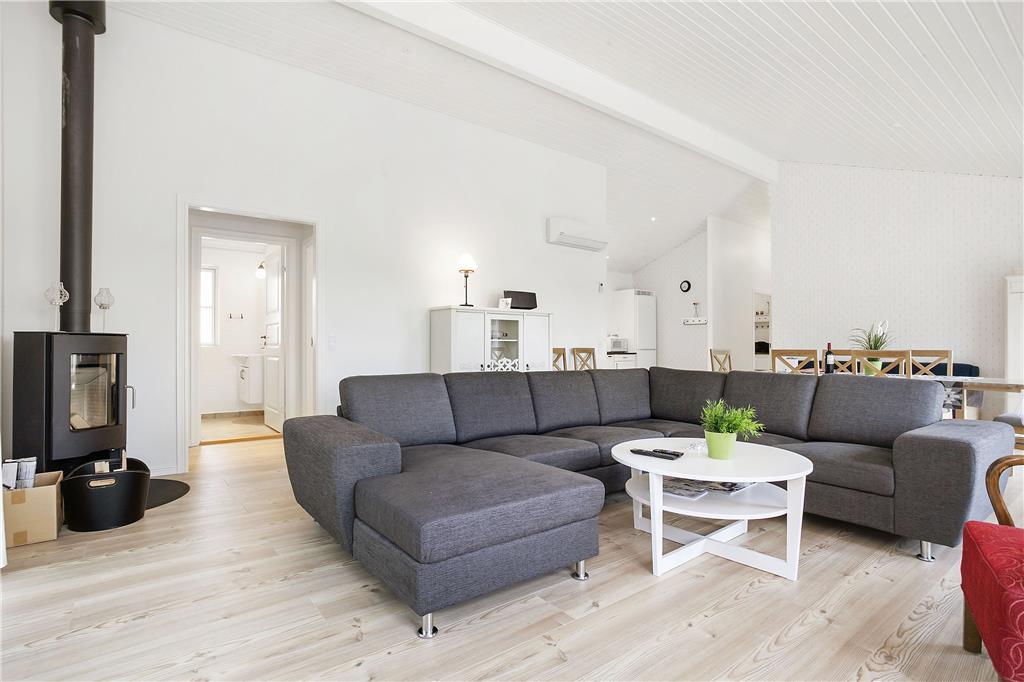 Tritt ein in dieses helle und einladende Ferienhaus, das mit hohen Decken und großen Fenstern eine geräumige Atmosphäre schafft. Die offene Küche ist perfekt für gemeinsames Kochen und Zusammensein, während das gemütliche Wohnzimmer mit Kaminofen zum Entspannen einlädt. Die vier komfortablen Schlafzimmer sorgen für einen erholsamen Schlaf, und die beiden stilvollen Badezimmer, von denen eines über Whirlpool und Sauna verfügt, bieten zusätzliche Verwöhnmomente.