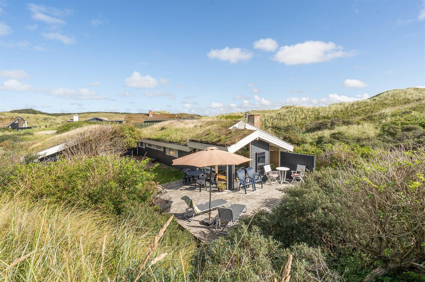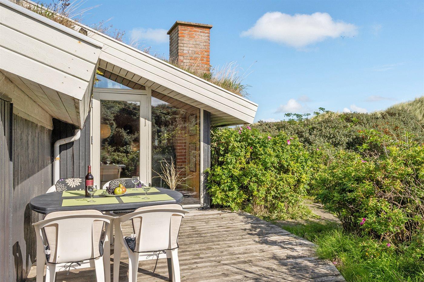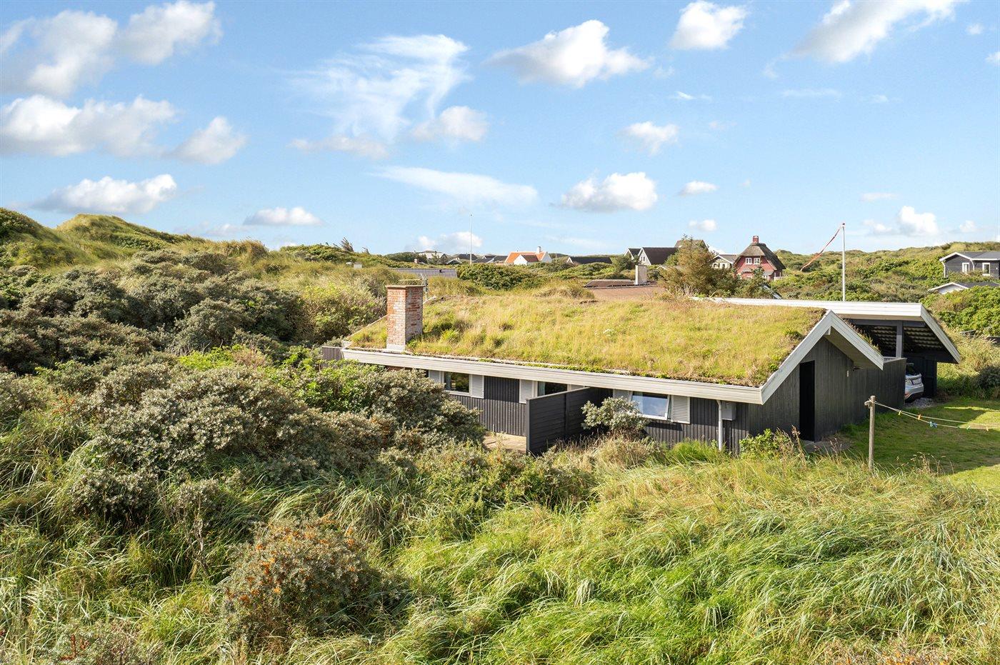 The holiday home is situated on a 1250 m² dune site. Situated 310 m from the sea. Nearest shop is 1000 m away. A 50 m² terrace belong to the holiday home. You find a tool shed. Carport is at your disposal.