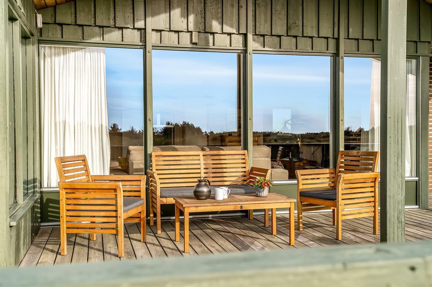The holiday home is situated on a 1660 m² dune site. Situated 480 m from the sea. Nearest shop is 4000 m away. A 100 m² terrace belong to the holiday home. Furthermore the house has a 15 m² covered terrace. You find a tool shed. On warm nights the outdoor fireplace ensures a cosy atmosphere. Plug for charging electric car is available. Parking place by the holiday home.