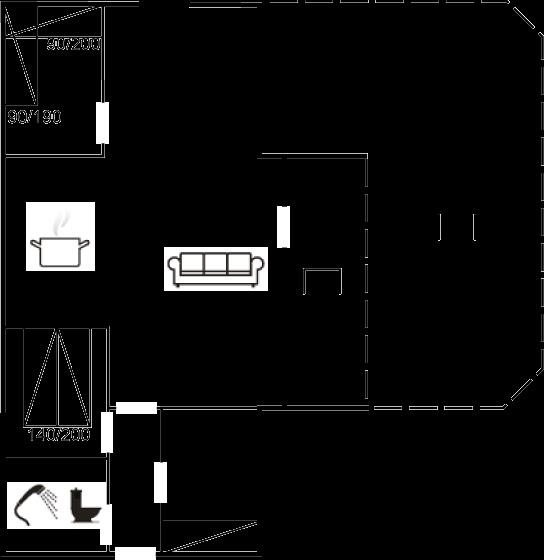 All together there are 3 bedrooms. The beds are divided on: 2 sleeping places in double bed. 3 sleeping places in single beds.
