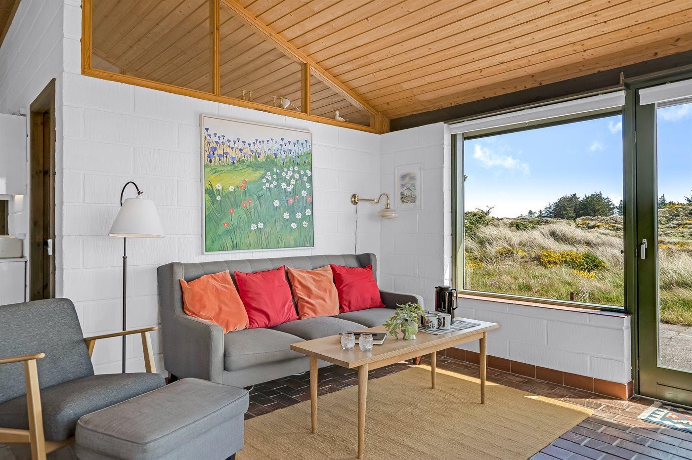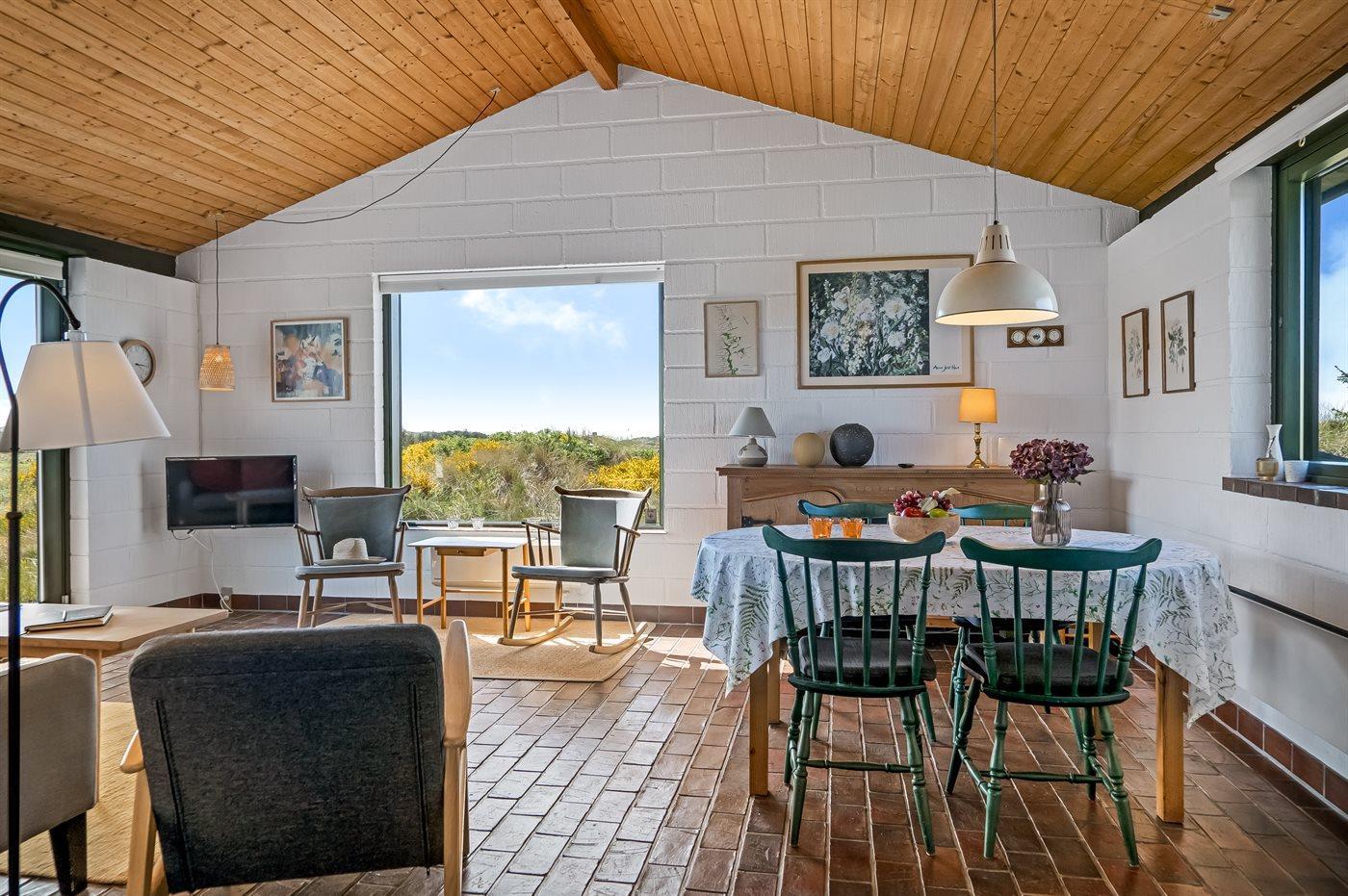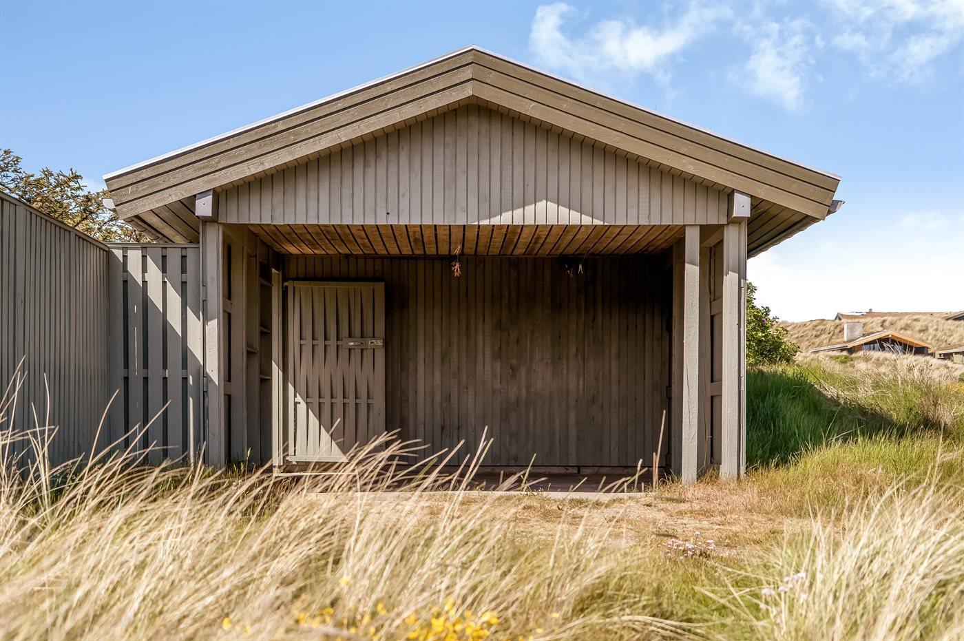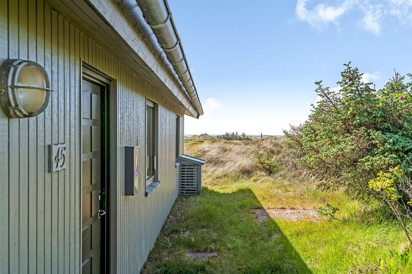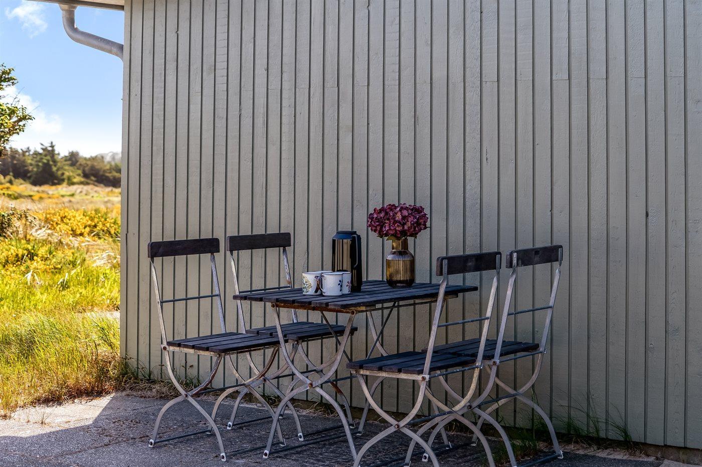 The holiday home is situated on a 3185 m² dune site. Situated 350 m from the sea. Nearest shop is 2500 m away. A 86 m² terrace belong to the holiday home. You find a tool shed. Sandbox. Carport is at your disposal. Parking place by the holiday home.