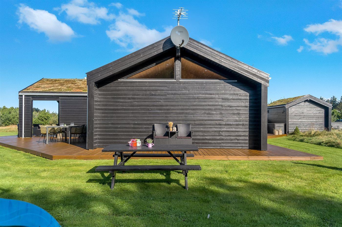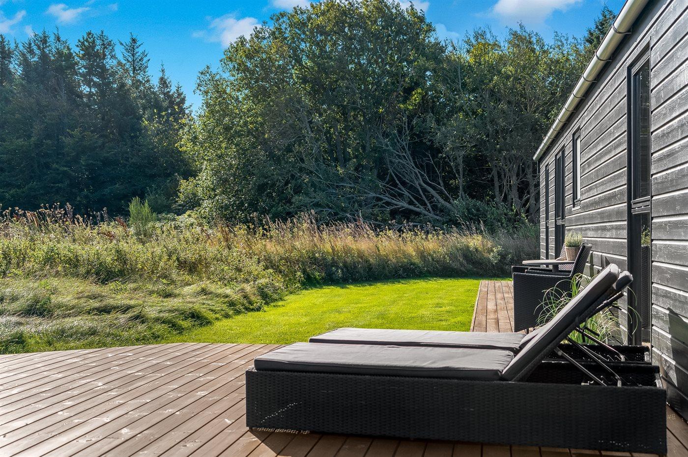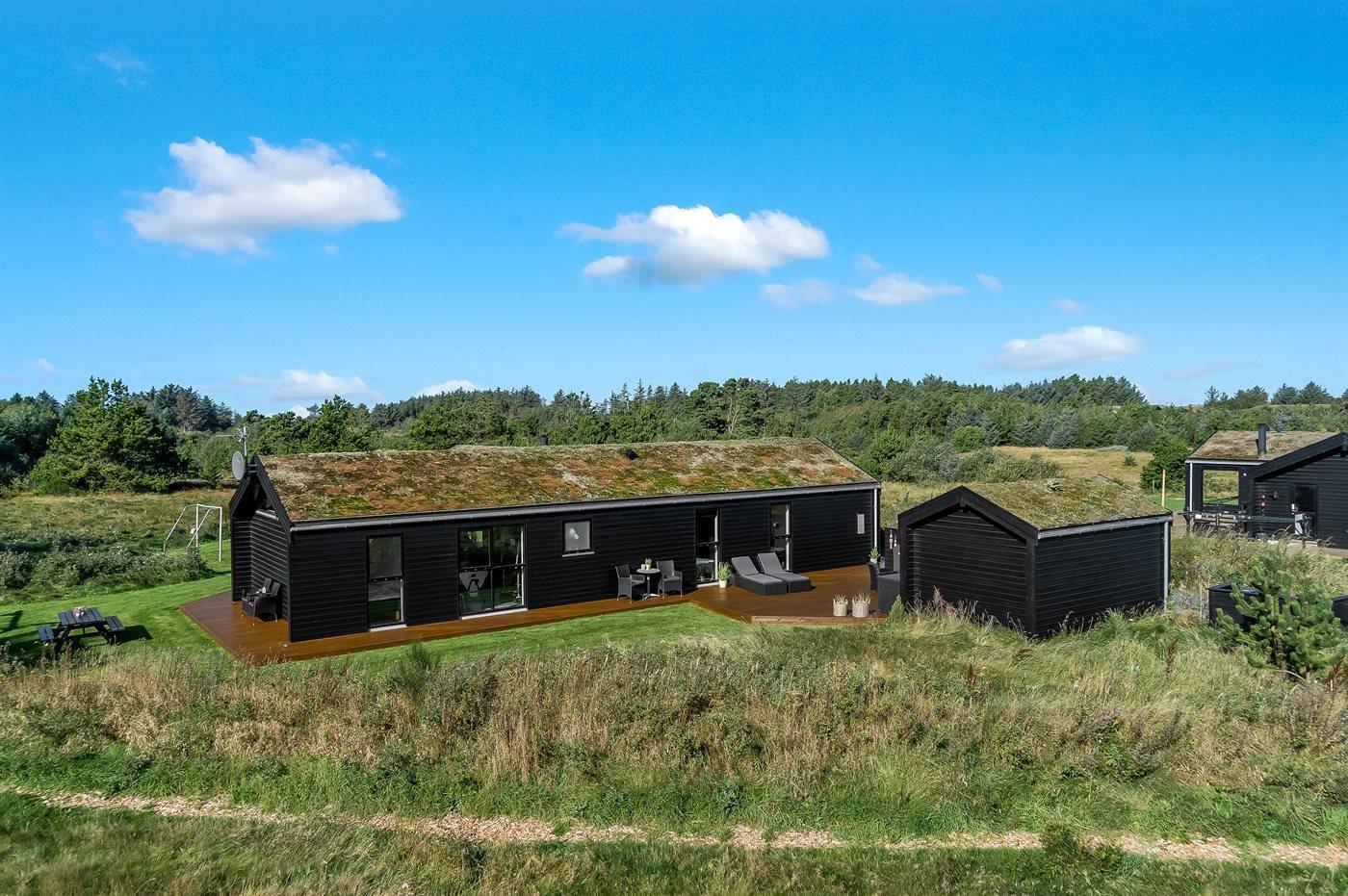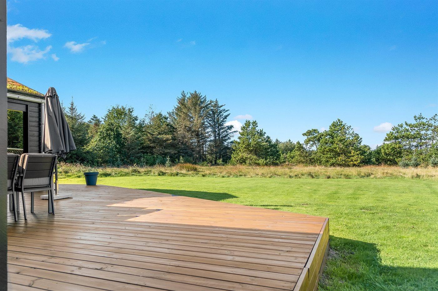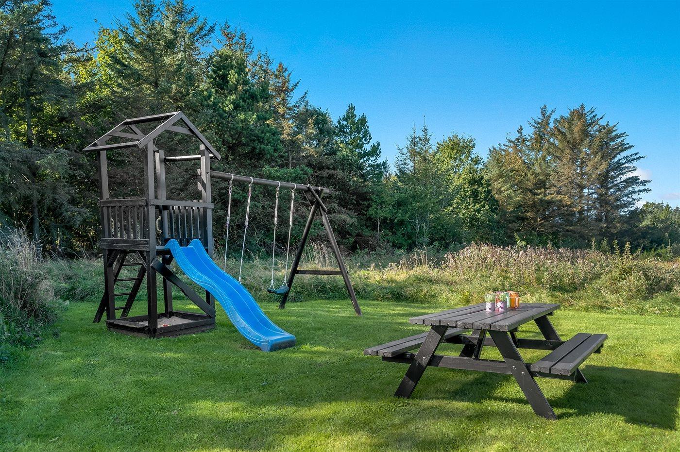 The holiday home is situated on a 2500 m² natural site. Situated 1400 m from the sea. Nearest shop is 1800 m away. A 90 m² terrace belong to the holiday home. Furthermore the house has a 10 m² covered terrace. Swing. Play tower. Slide. Football goal. Barbecue at your disposal. Parking place by the holiday home.