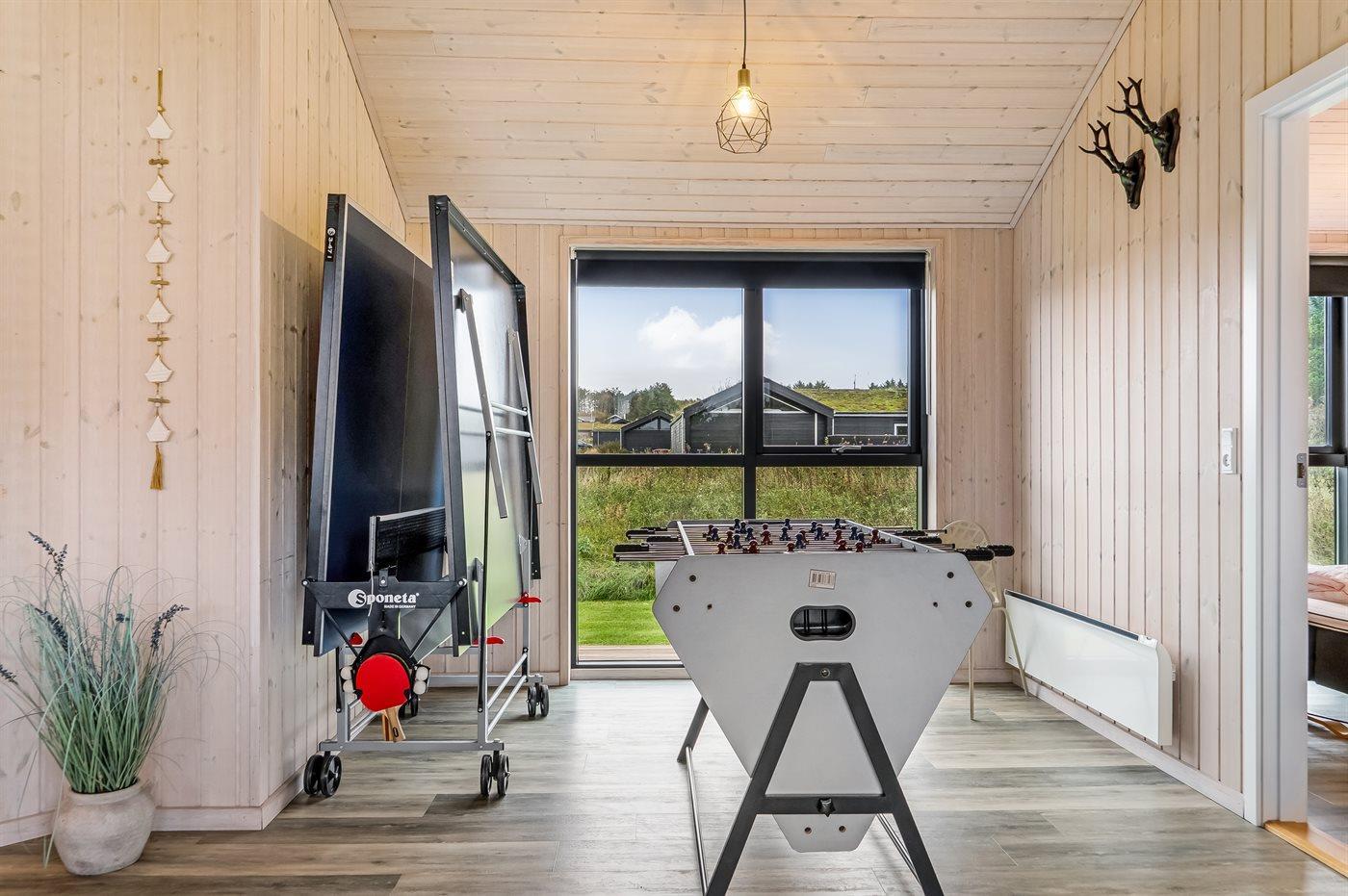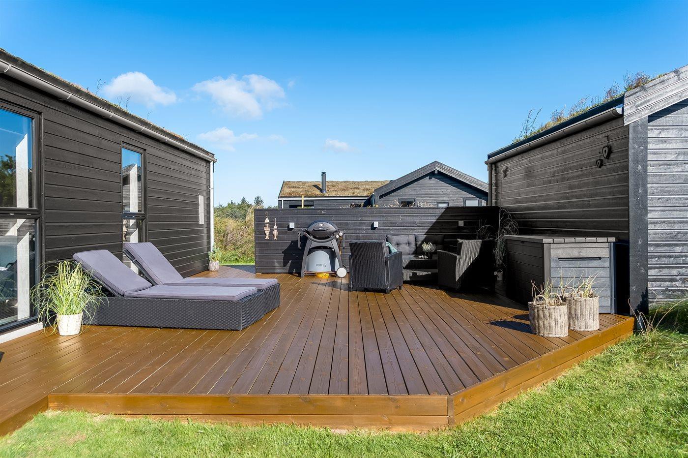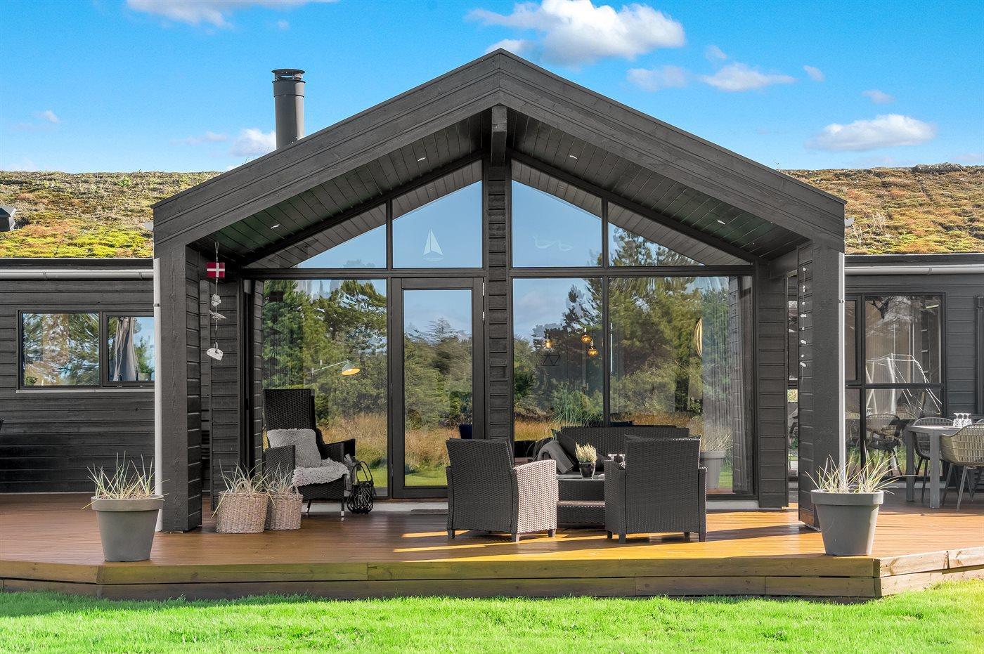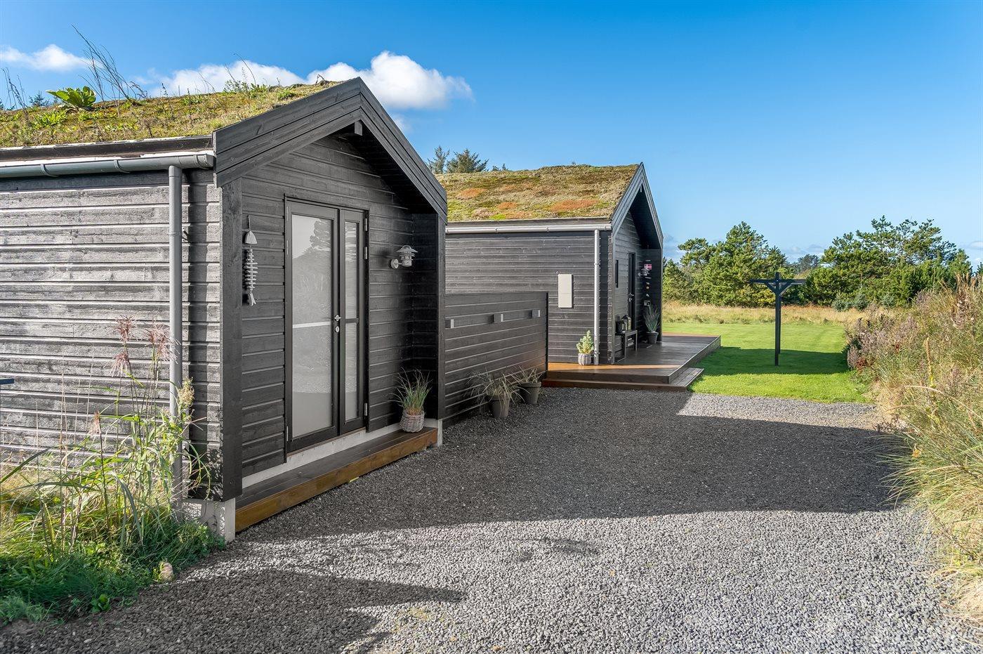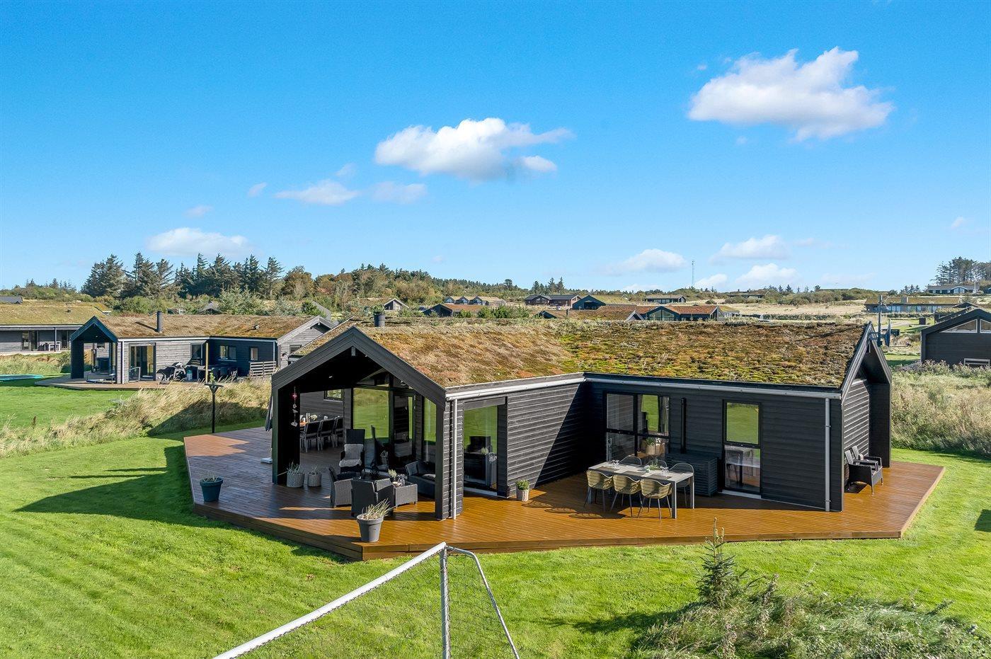 The holiday home is situated on a 2500 m² natural site. Situated 1400 m from the sea. Nearest shop is 1800 m away. A 90 m² terrace belong to the holiday home. Furthermore the house has a 10 m² covered terrace. Swing. Play tower. Slide. Football goal. Barbecue at your disposal. Parking place by the holiday home.