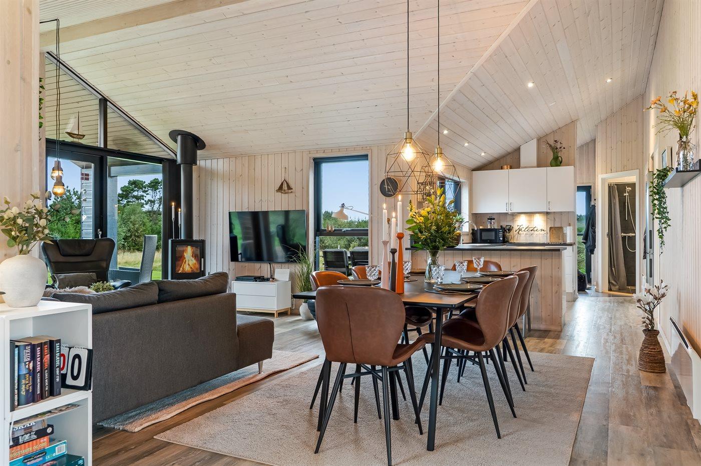 Holiday home suitable for 8 persons as well as 1 child up to 3 years. The holiday home is 120 m² and is build in 2017. You can bring along 1 pet. The holiday home is equipped with energy-saving heat pump. The holiday home has washing machine. Tumble dryer. Freezer capacity of 90 litres. Further more there is 1 wood-burning stove. For the youngest ones there is 1 high chair.