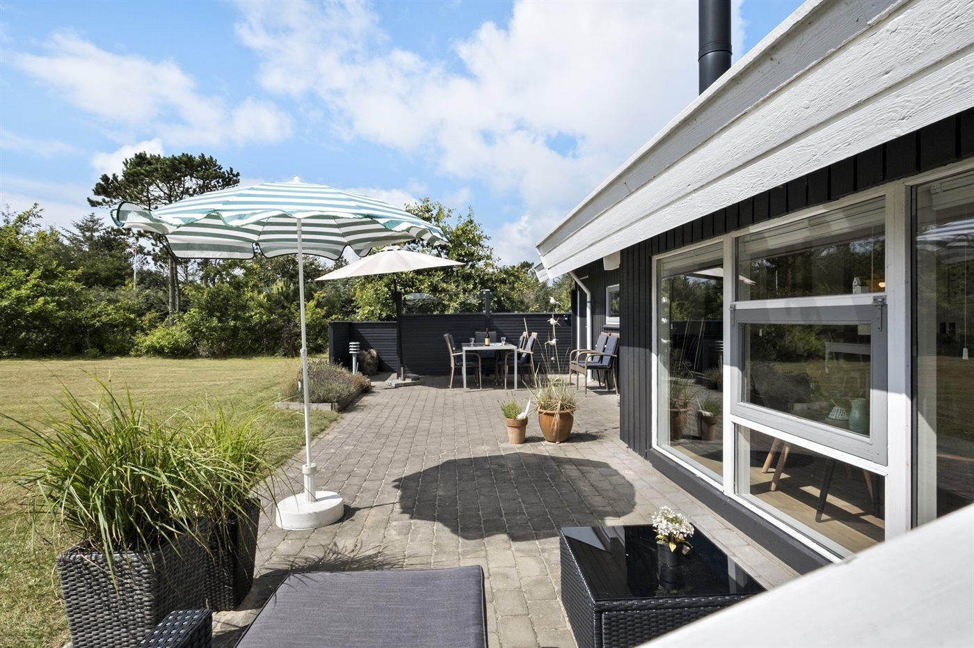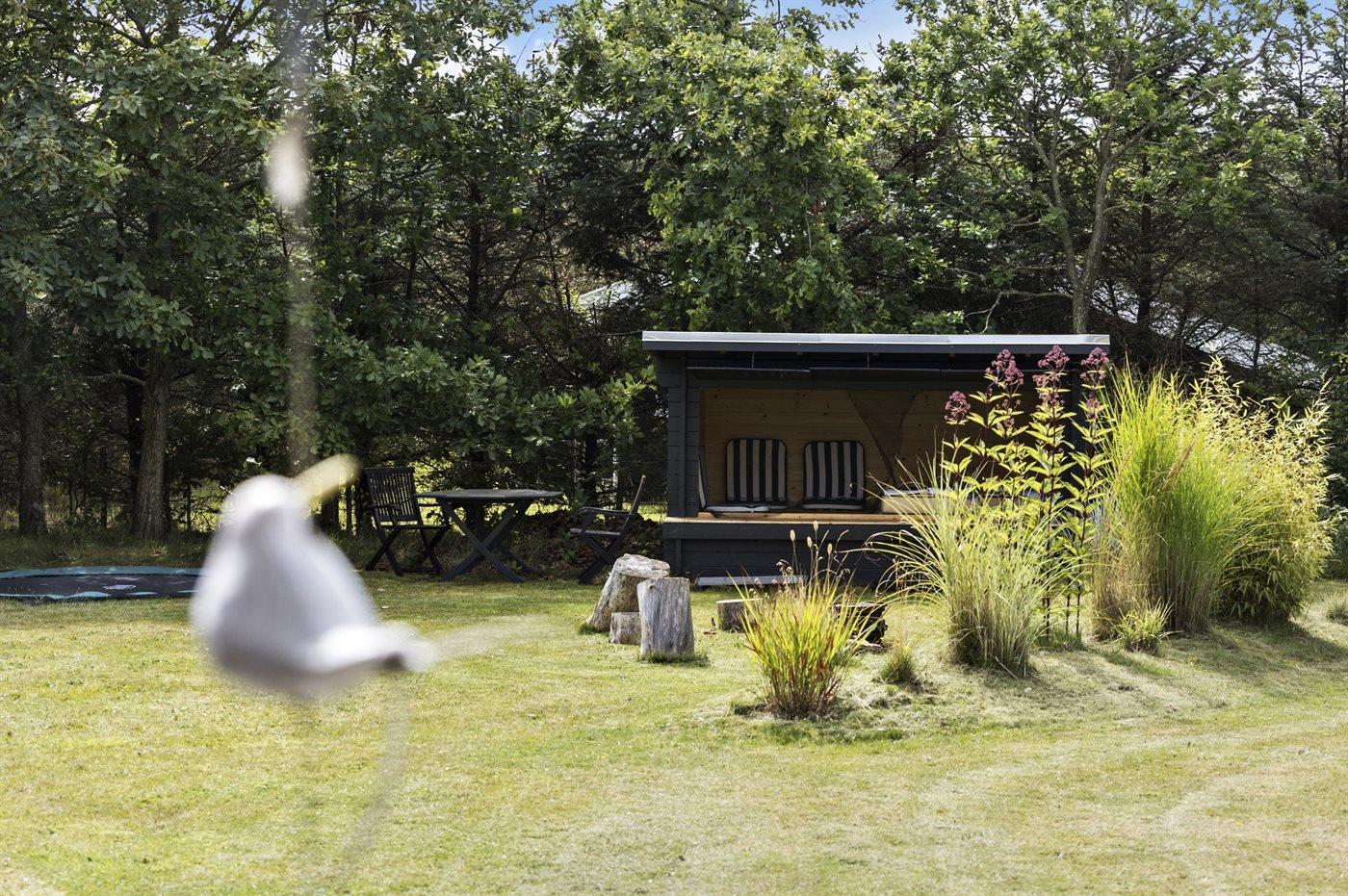 The holiday home is situated on a 1444 m² natural site. Situated 2200 m from the sea. Nearest shop is 300 m away. You will find a golf course in a distance of 6000 m. A 30 m² terrace belong to the holiday home. Swing. Trampoline. Shelter. Parking place by the holiday home.