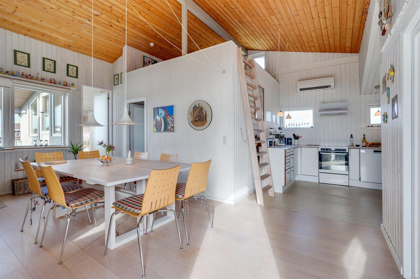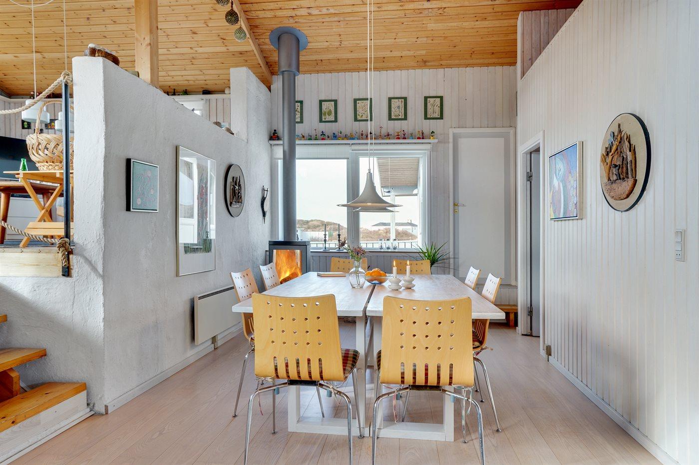 Holiday home suitable for 6 persons as well as 1 child up to 3 years. The holiday home is 100 m² and is build in 1972. In 2012 the holiday home was renovated. No pets allowed. The holiday home is equipped with energy-friendly air-to-air heat pump.} Freezer capacity of 60 litres. Further more there is 1 wood-burning stove. For the youngest ones there is 1 high chair.