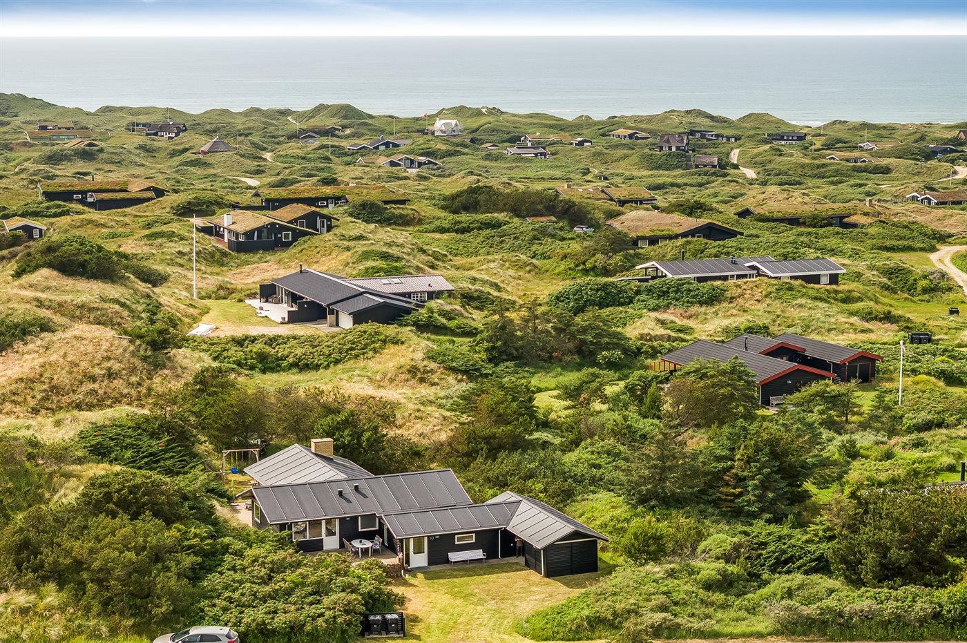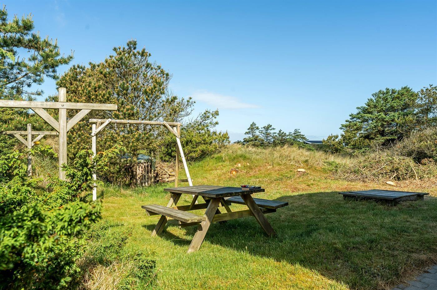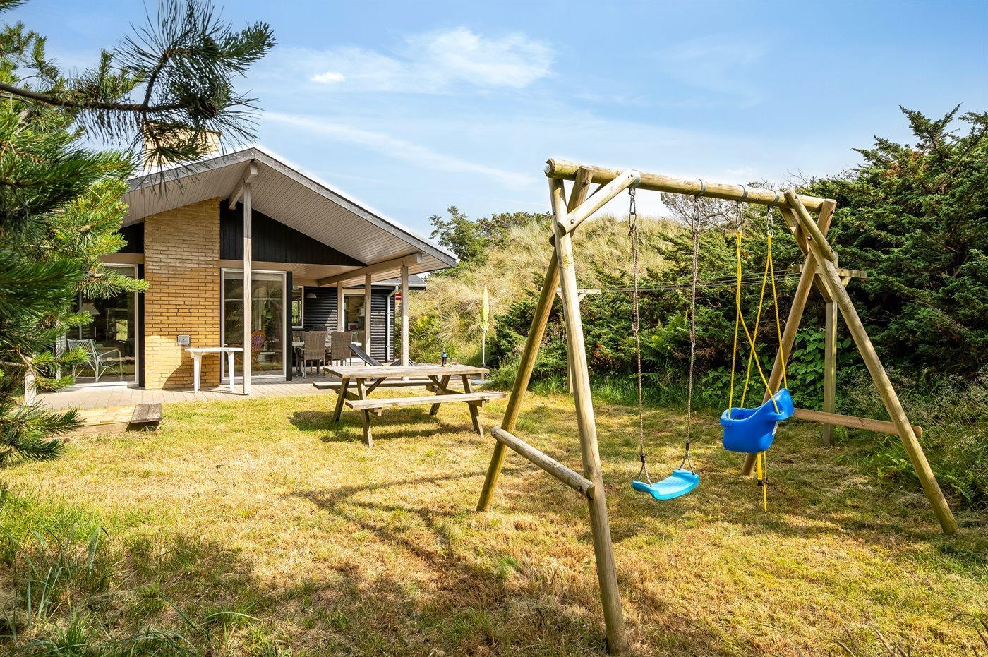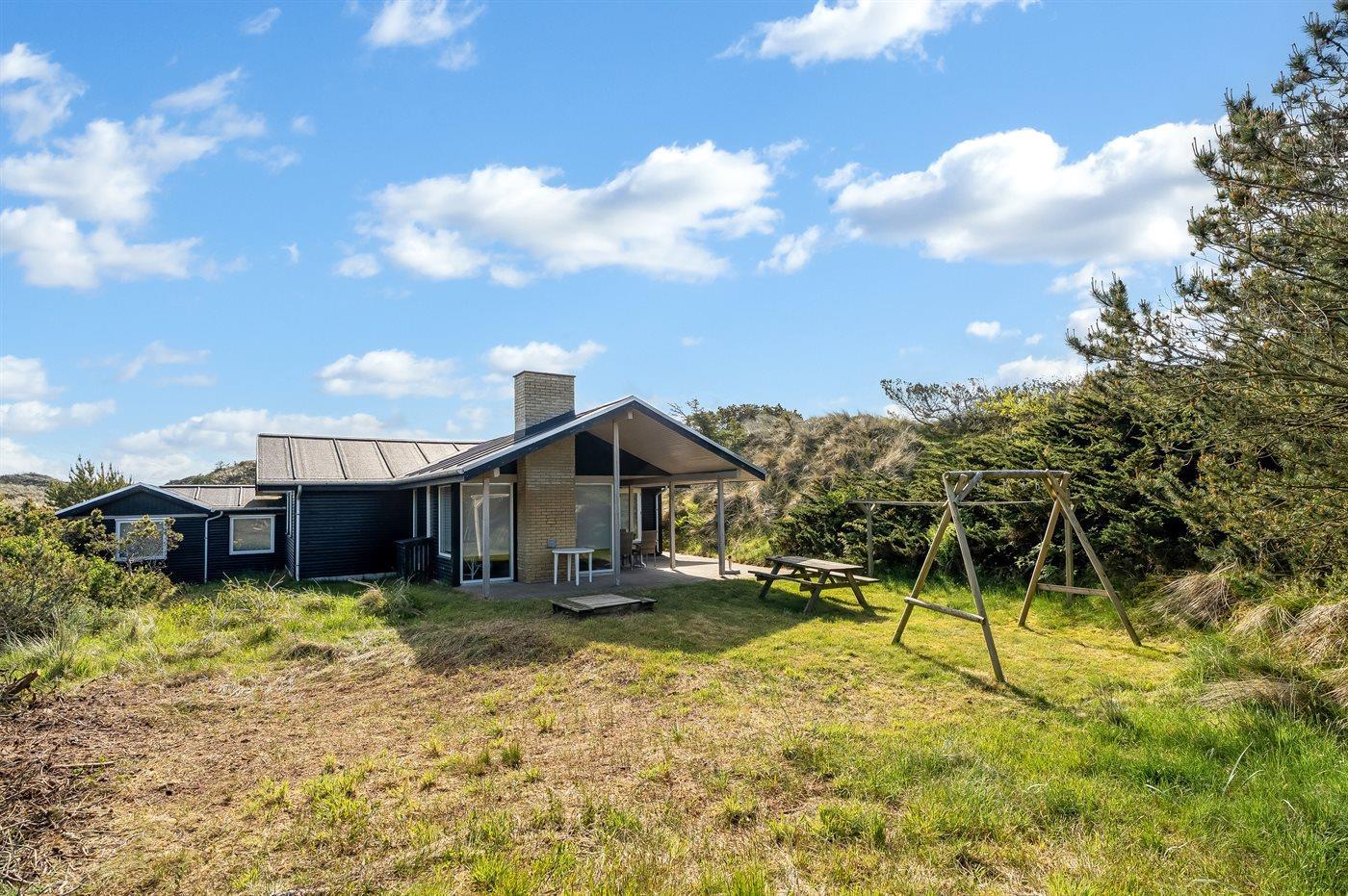 The holiday home is situated on a 2000 m² dune site. Situated 1000 m from the sea. Nearest shop is 3500 m away. You will find a golf course in a distance of 12000 m. A 15 m² terrace belong to the holiday home. Furthermore the house has a 12 m² covered terrace. Swing. Sandbox. Barbecue at your disposal. Parking place by the holiday home.