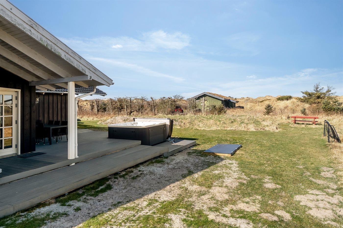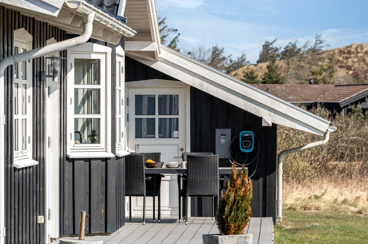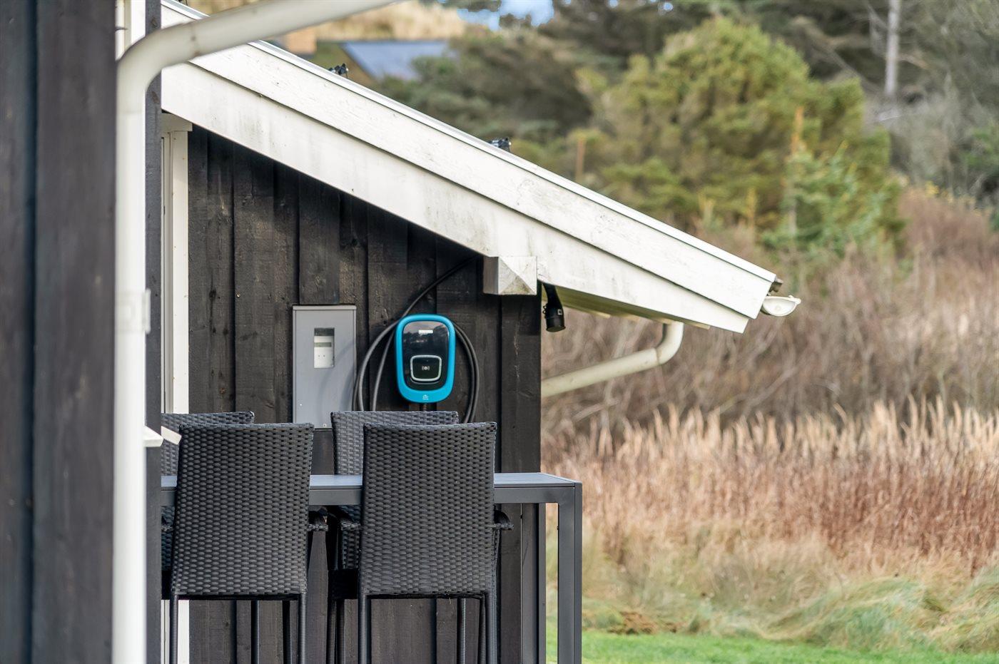 The holiday home is situated on a 1594 m² garden site. Situated 550 m from the sea. Nearest shop is 4000 m away. A 174 m² terrace belong to the holiday home. You find a tool shed. Swing. Sandbox. Football goal. Outdoor shower. Barbecue at your disposal. Outdoor sink. Plug for charging electric car is available. With 22 kW power output. Parking place by the holiday home.