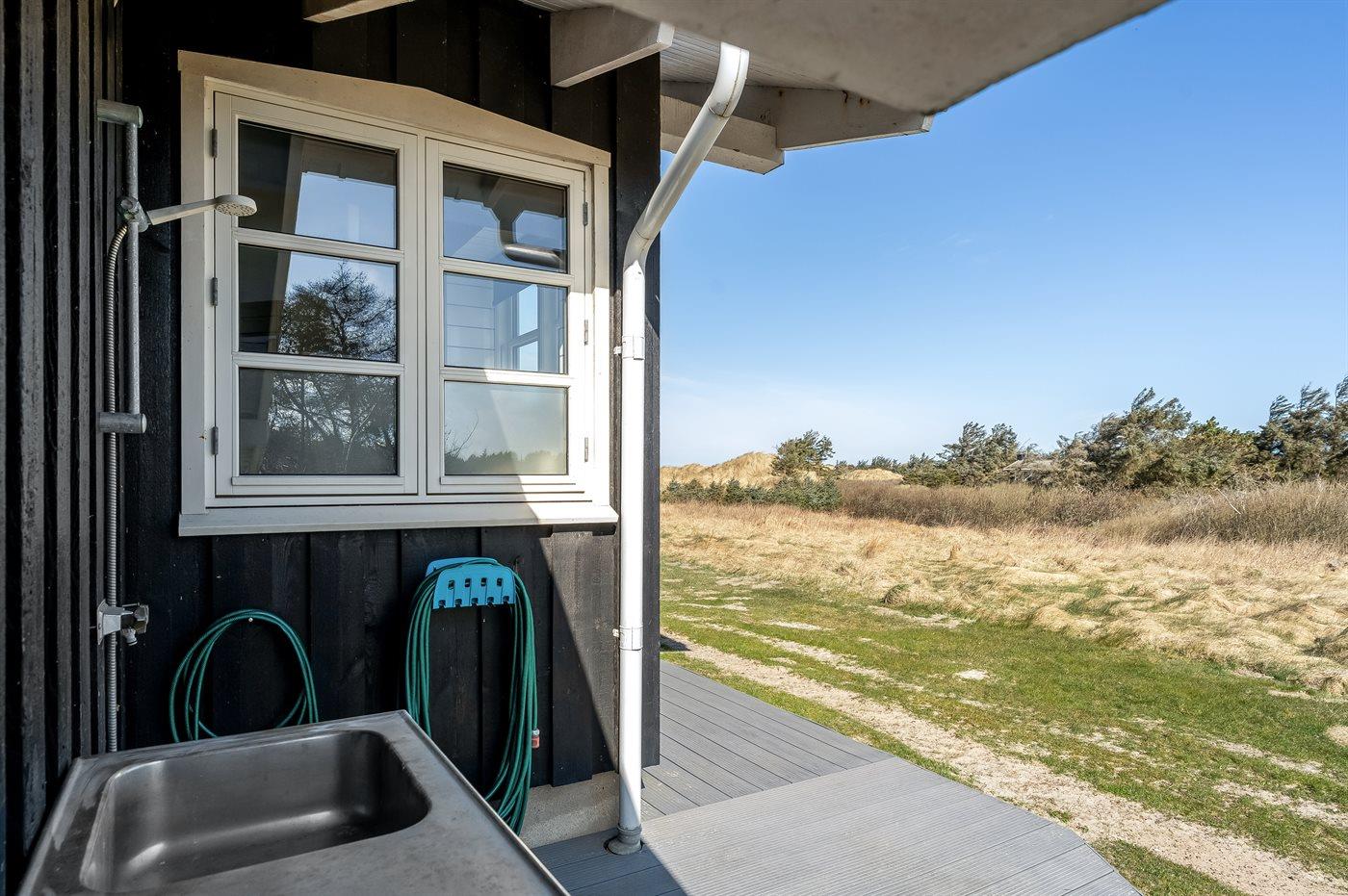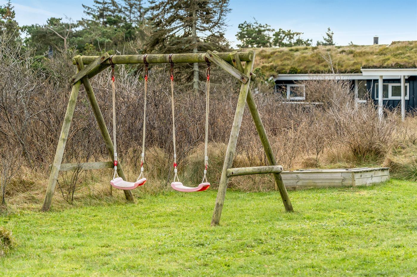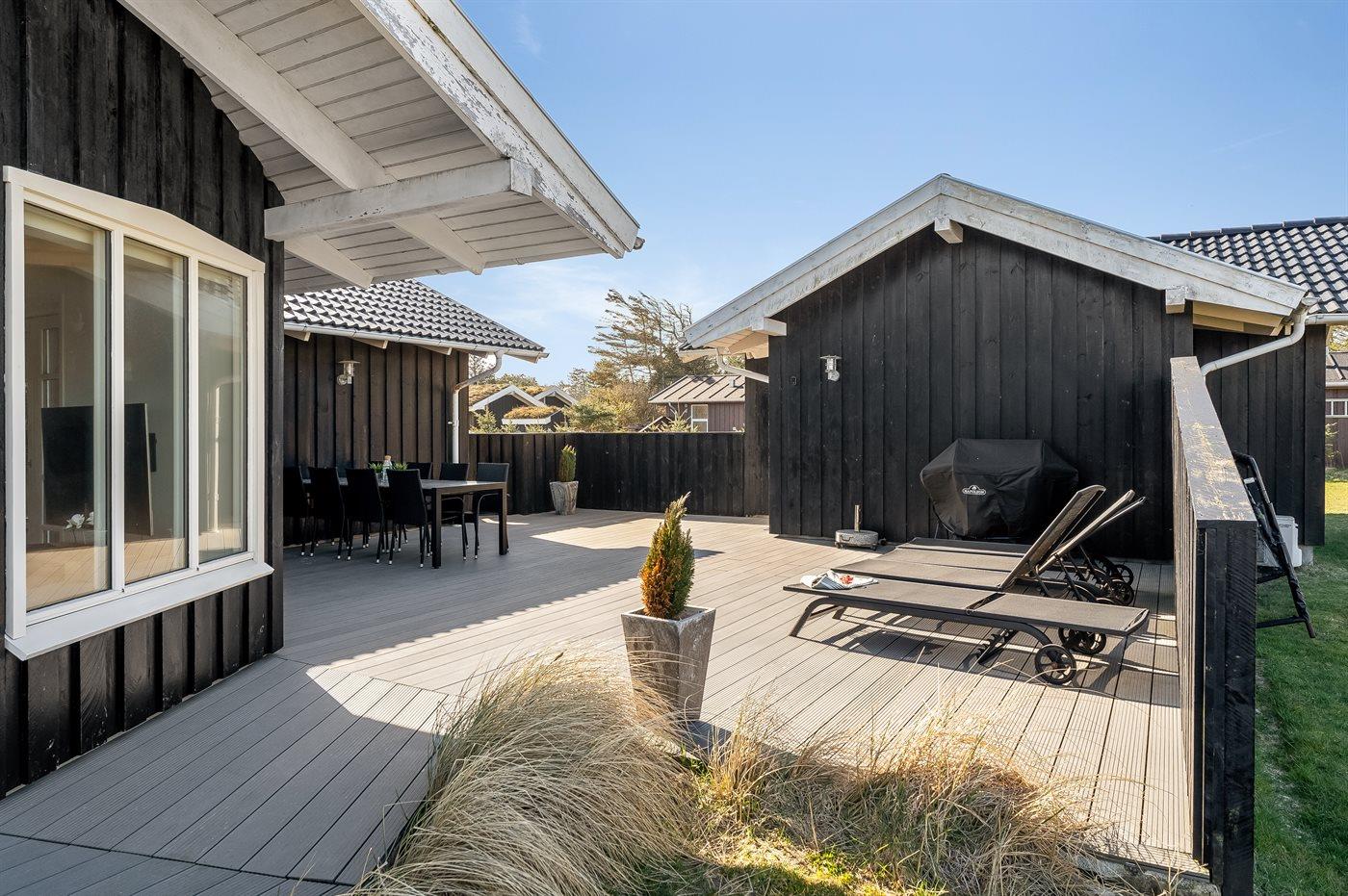 The holiday home is situated on a 1594 m² garden site. Situated 550 m from the sea. Nearest shop is 4000 m away. A 174 m² terrace belong to the holiday home. You find a tool shed. Swing. Sandbox. Football goal. Outdoor shower. Barbecue at your disposal. Outdoor sink. Plug for charging electric car is available. With 22 kW power output. Parking place by the holiday home.
