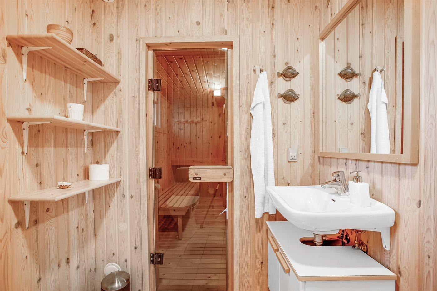There is 1 bathroom with shower cabinet and 1 toilet.. There is floor heating in 1 bathroom. The sauna offers opportunity for relaxation.