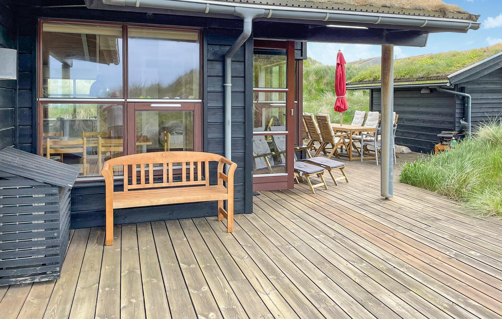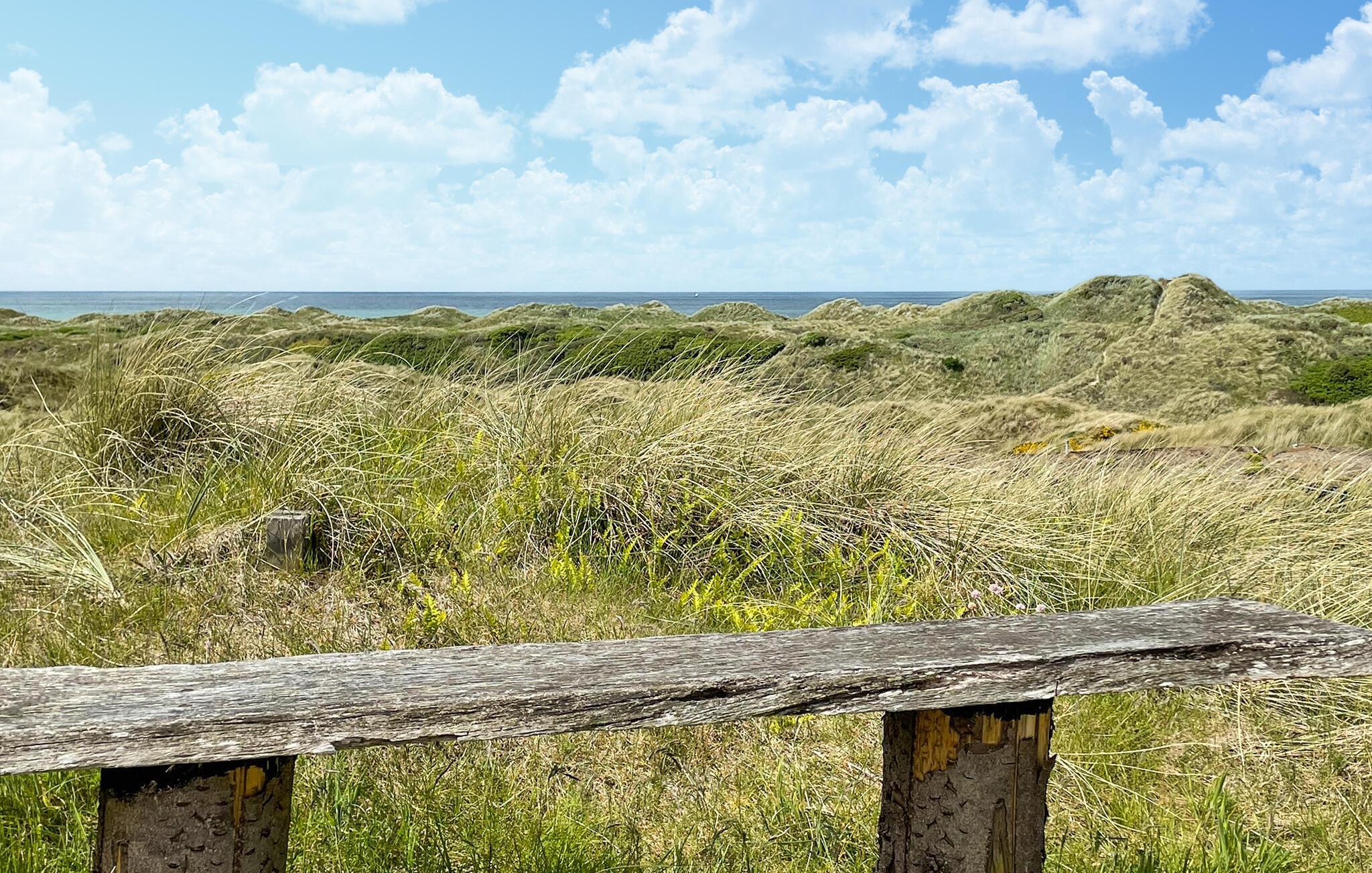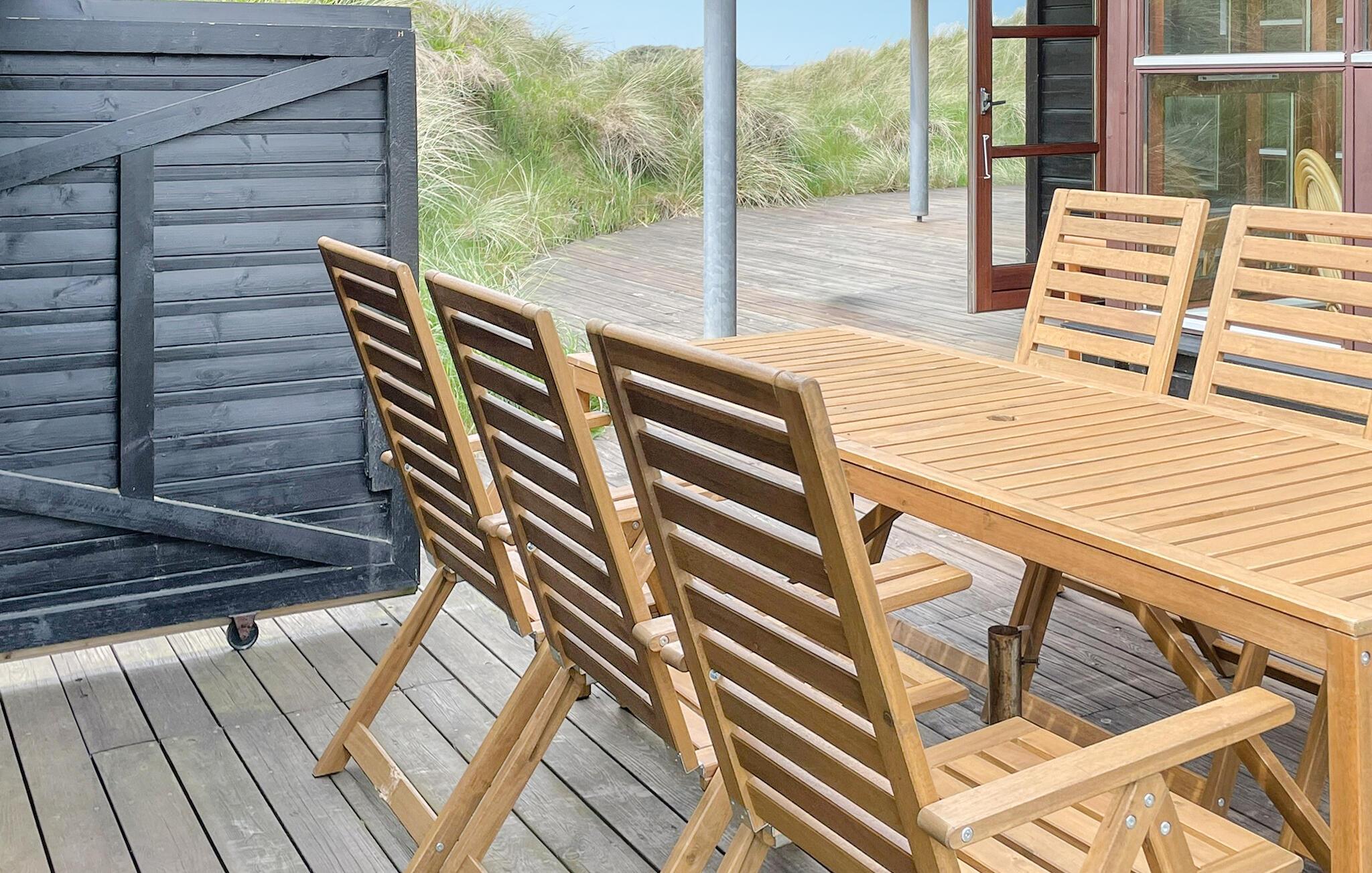 In den Sommermonaten lädt die schöne Holzterrasse zu Mahlzeiten im Freien ein, oder Sie steigen über die Treppen hinauf auf die Dünen, wo Sie an den Abenden wundervolle Sonnenuntergänge genießen können.