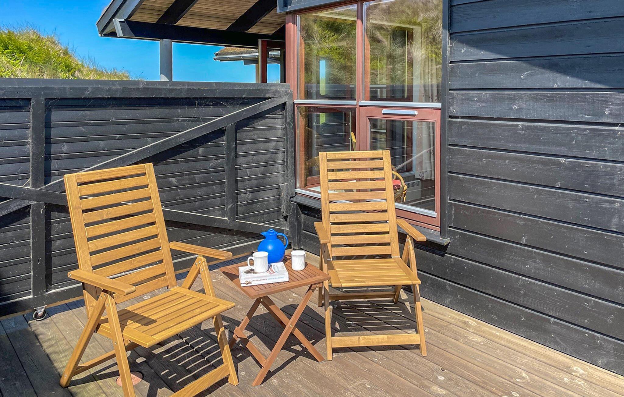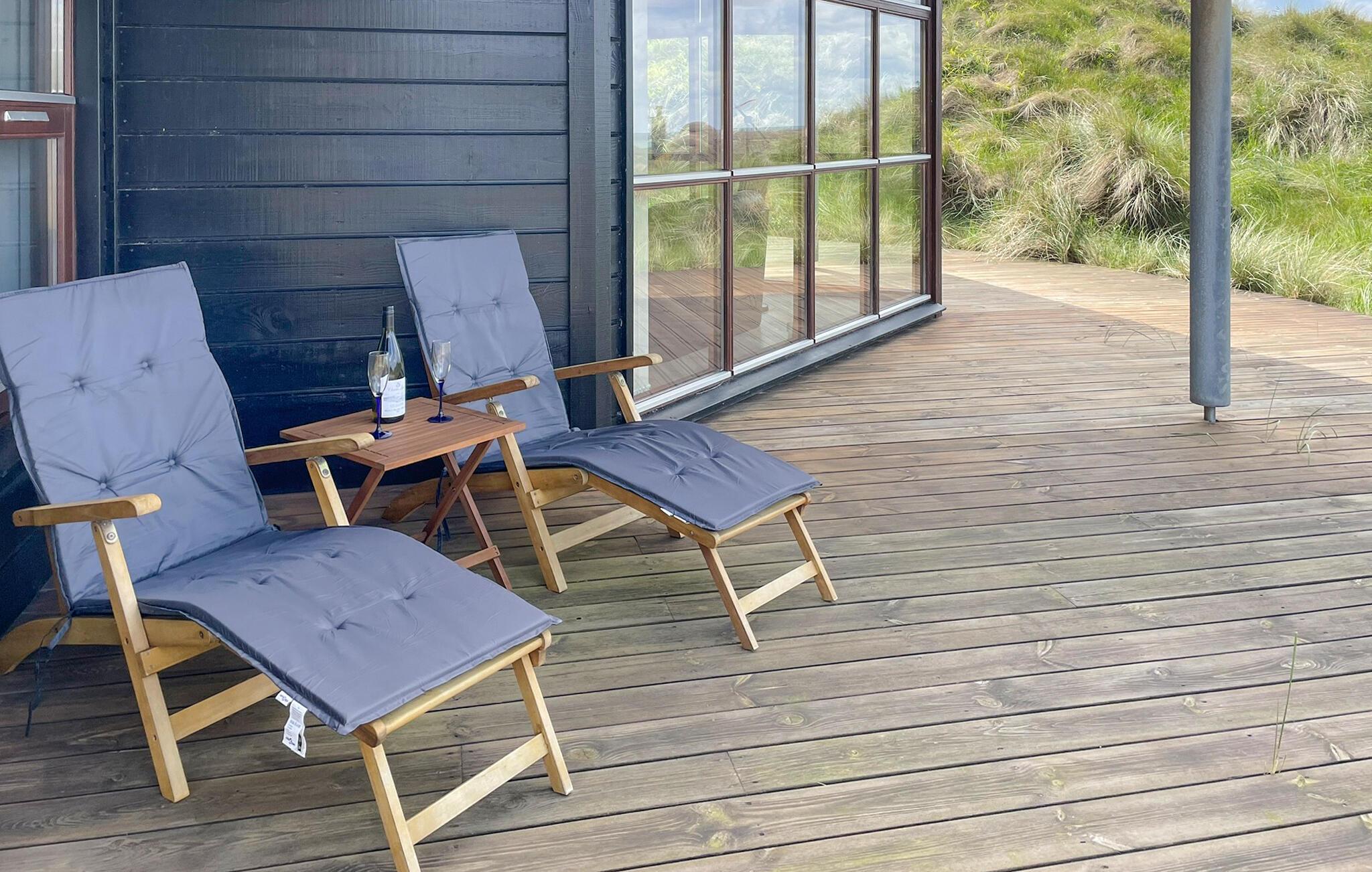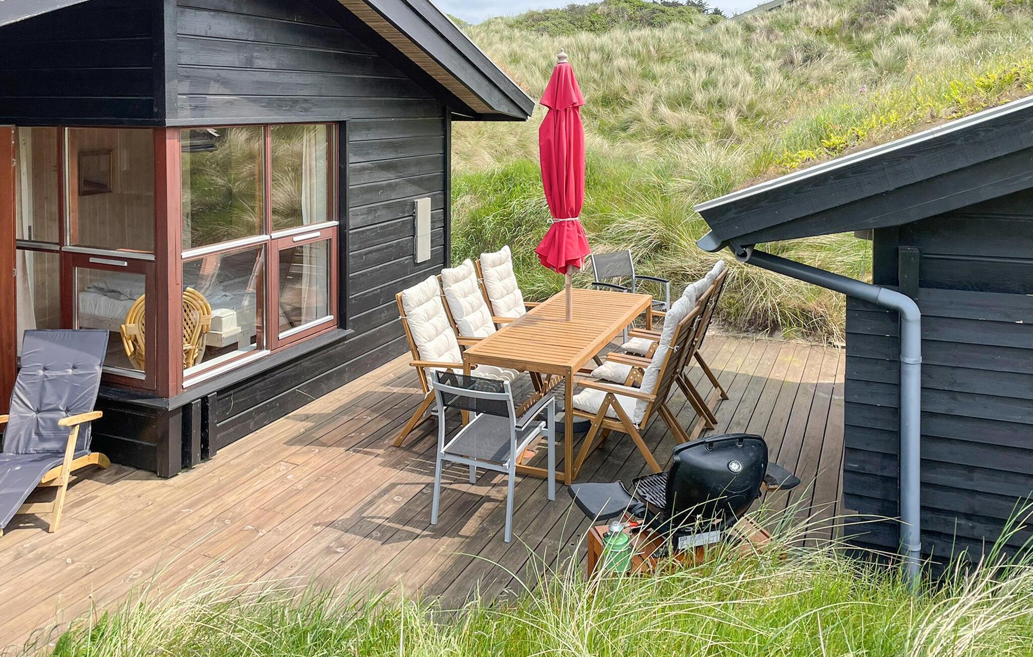 In den Sommermonaten lädt die schöne Holzterrasse zu Mahlzeiten im Freien ein, oder Sie steigen über die Treppen hinauf auf die Dünen, wo Sie an den Abenden wundervolle Sonnenuntergänge genießen können.
