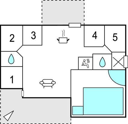 Badezimmer 5m2 (nr. 1) - WC. Warmes und kaltes Wasser. Dusche