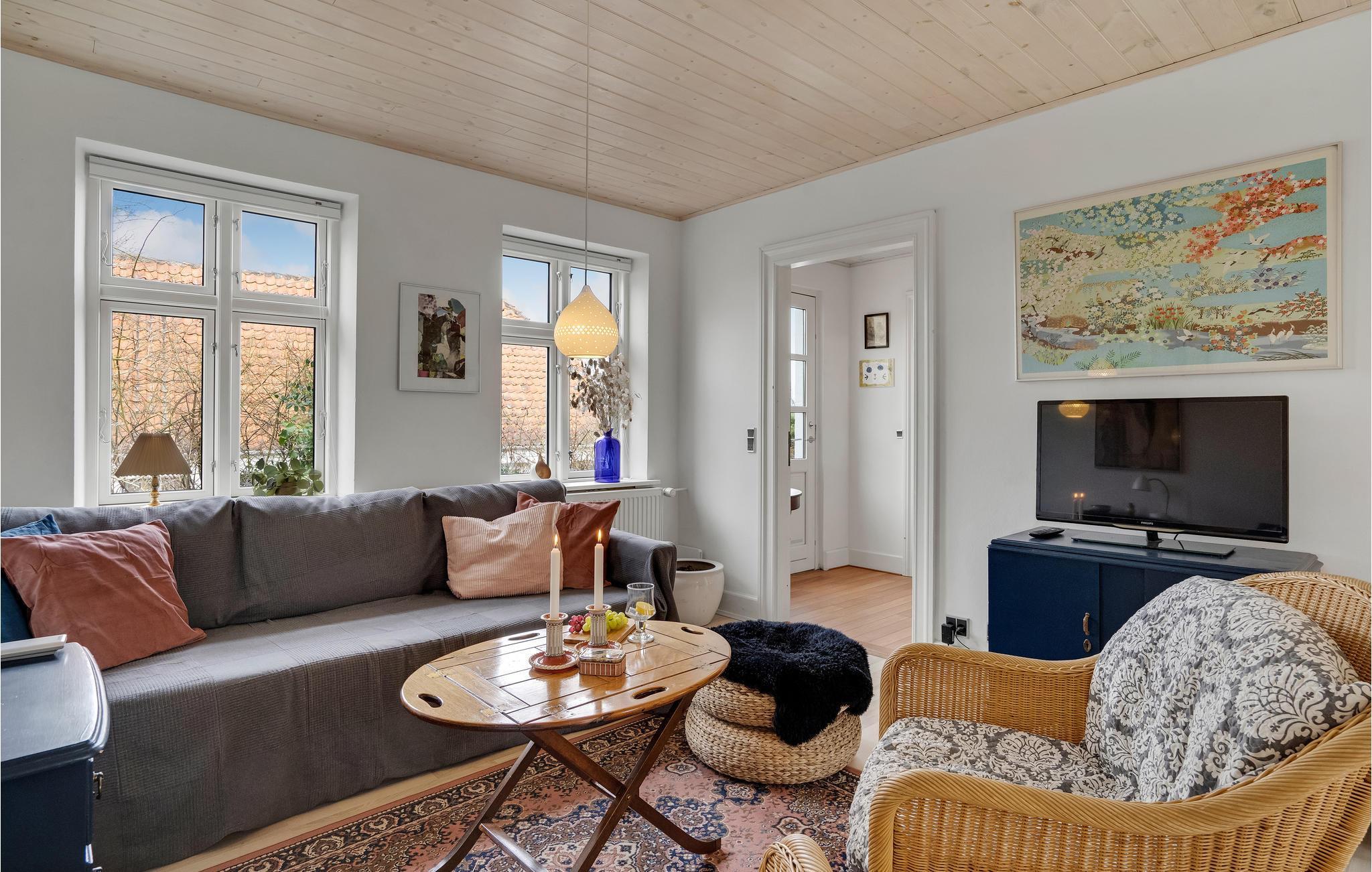 In diesem gemütlichen Ferienhaus ist Ihr Vierbeiner ebenfalls willkommen. In den behaglich eingerichteten Räumen mit dekorativen sichtbaren Holzbalken werden Sie sich gleich wohlfühlen. Lassen Sie sich nach einem aktiven Tag mit Spaziergängen oder einer Fahrradtour auf der Insel auf dem bequemen Sofa nieder und plaudern Sie bis spät beim Prasseln der Flammen im Kaminofen. Genießen Sie eine angenehme Zeit im Freien auf der Terrasse des Hauses, genießen Sie leckere Gerichte vom Grill an langen Sommerabenden und lassen Sie hier den Tag mit Getränken ausklingen.