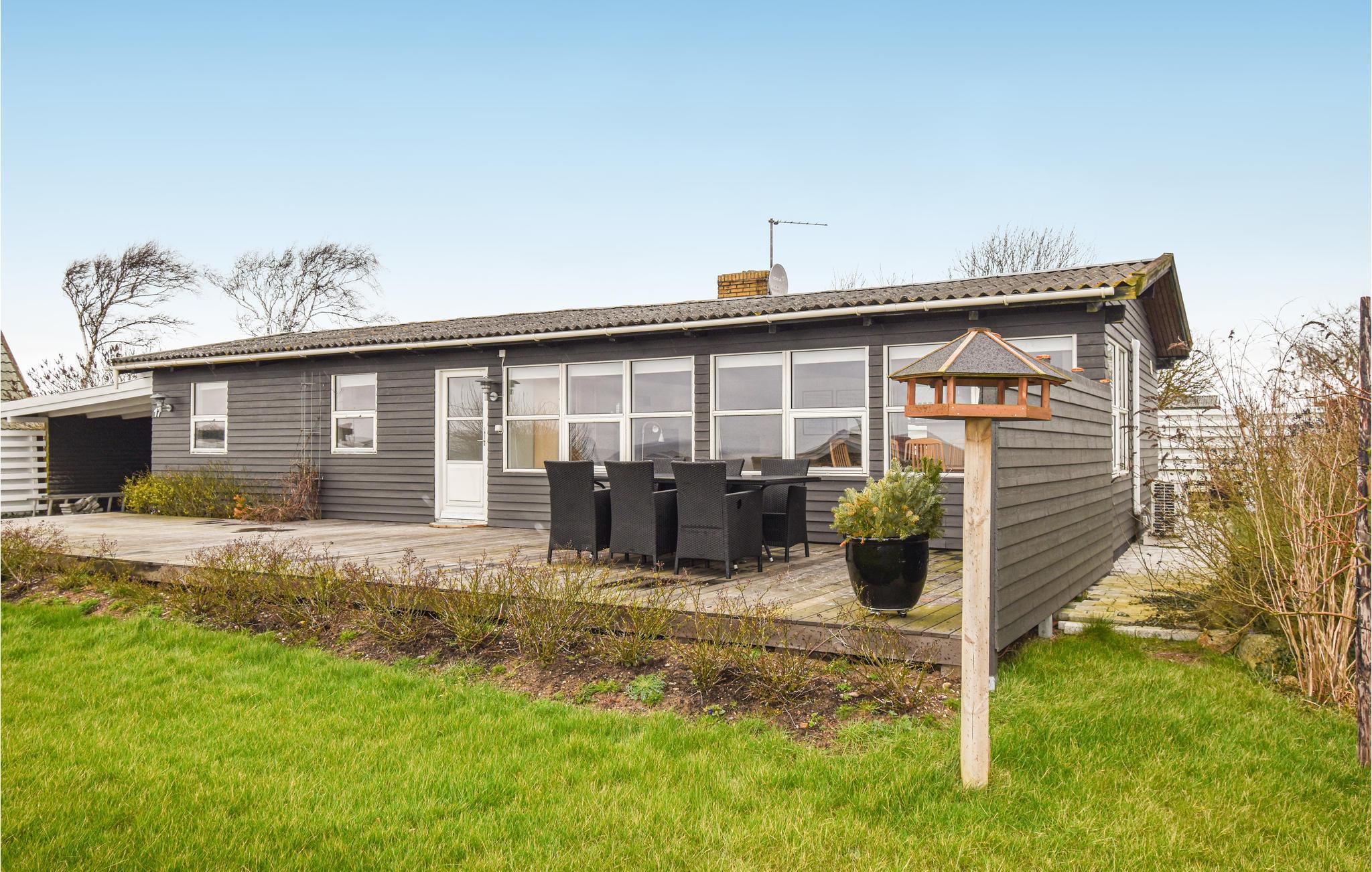 Vor dem Haus gibt es eine offene Terrasse, von der aus Sie den herrlichen Blick auf das Wasser genießen können. Hinter dem Haus befindet sich ein gemütlicher Innenhof, der Privatsphäre bietet. Das Haus bildet den perfekten Rahmen für einen Anglerurlaub und auch für einen erholsamen Strandurlaub.