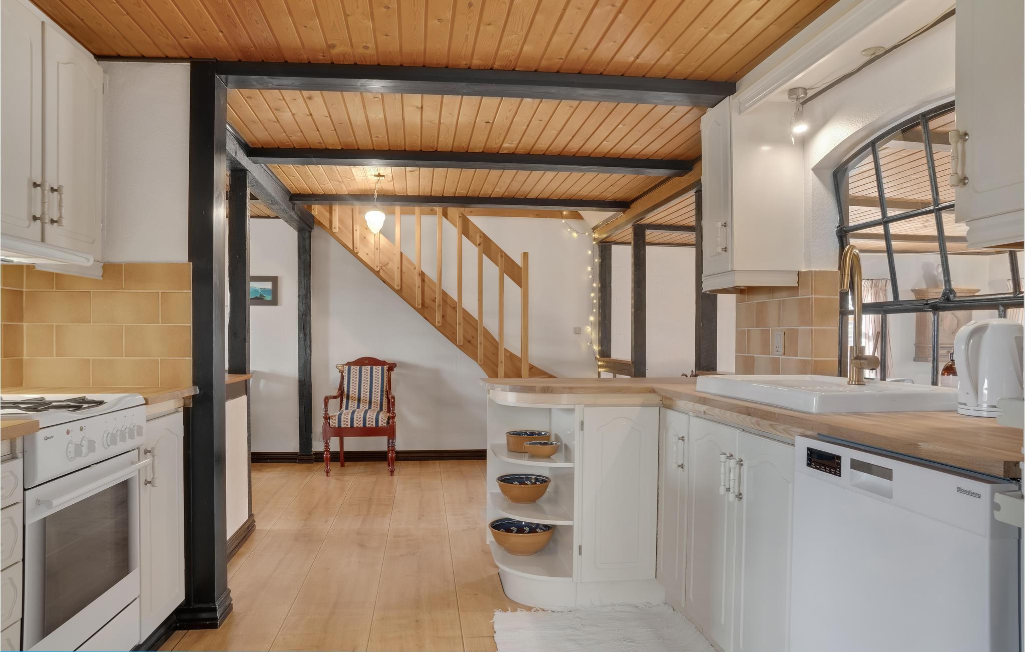 Willkommen in diesem charmanten Haus in ruhiger, landschaftlich reizvoller Umgebung, nur wenige hundert Meter vom Nakskov Fjord entfernt. Die Inneneinrichtung ist sehr schön gestaltet und bewahrt die ländliche Idylle, ohne auf Komfort zu verzichten. Die Einrichtung ist warm und rustikal, mit gut erhaltenen Holzdecken, freiliegendem Holzwerk und Sprossenfenstern, die von mehreren Seiten Licht hereinlassen. Wenn das Wetter mitspielt, können Sie den Holzofen anfeuern, um sich zu wärmen und in der gut ausgestatteten Küche zu kochen, die Mahlzeiten mit Blick auf die Umgebung zu genießen und bis spät in die Nacht Gesellschaftsspiele zu spielen.