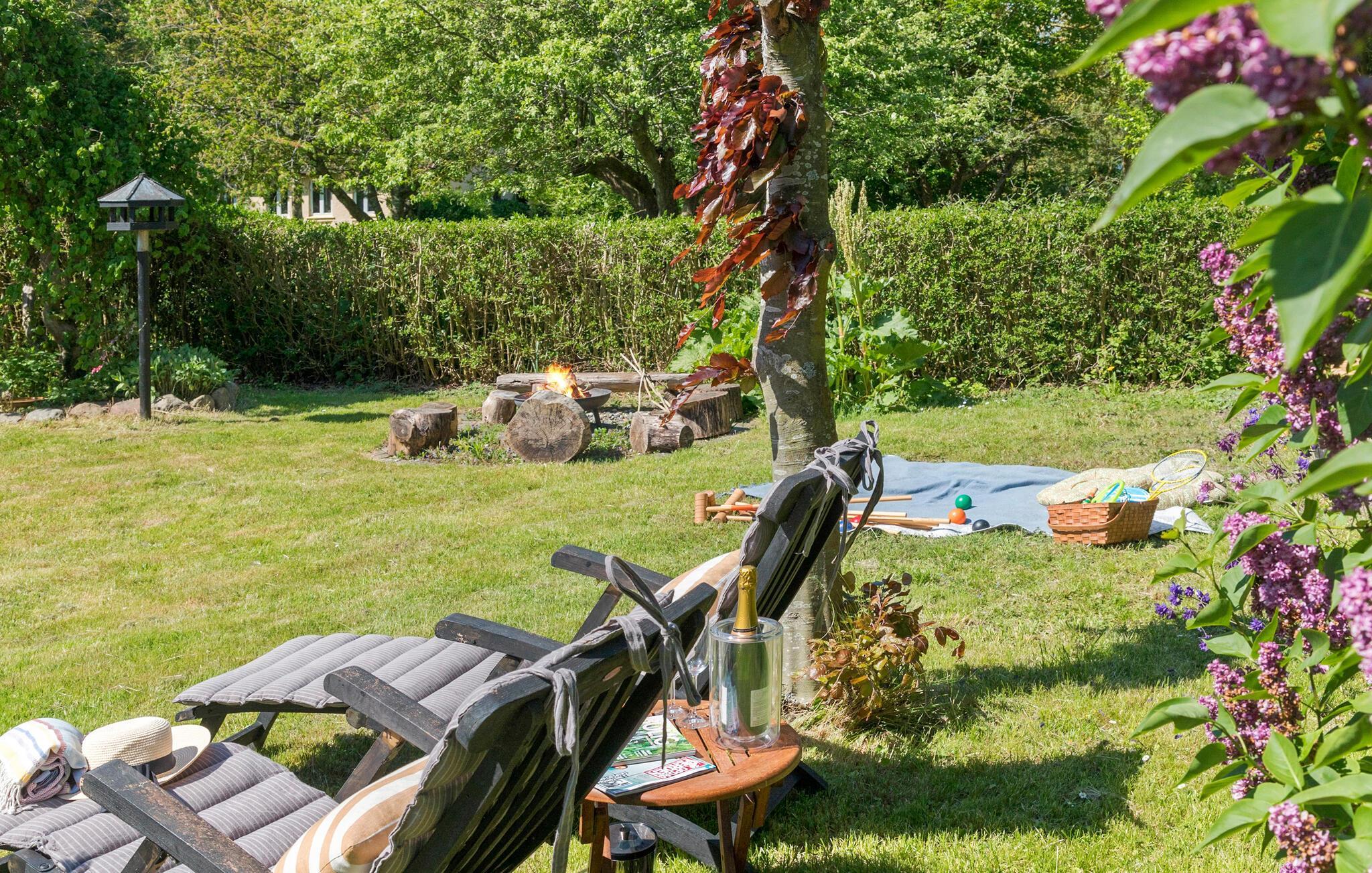 Genießen Sie die Sommerabende im schönen, umzäunten Garten mit einer Partie Krocket, Lagerfeuer, Grillen oder einfach nur Entspannung. Der Garten verfügt über eine teilweise überdachte Terrasse mit Gartenmöbeln und Grill, und im Garten finden Sie Liegestühle, eine Feuerstelle und kleine gemütliche Ecken, wo Sie die Ruhe genießen und ein gutes Buch lesen können.