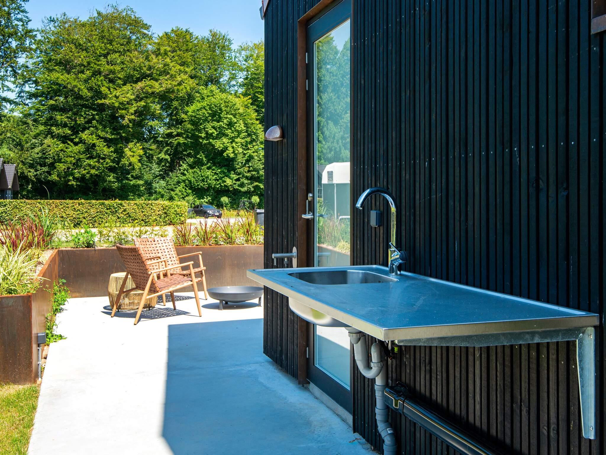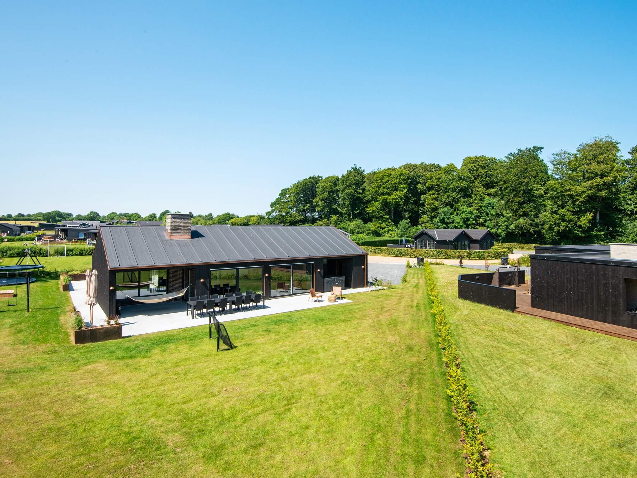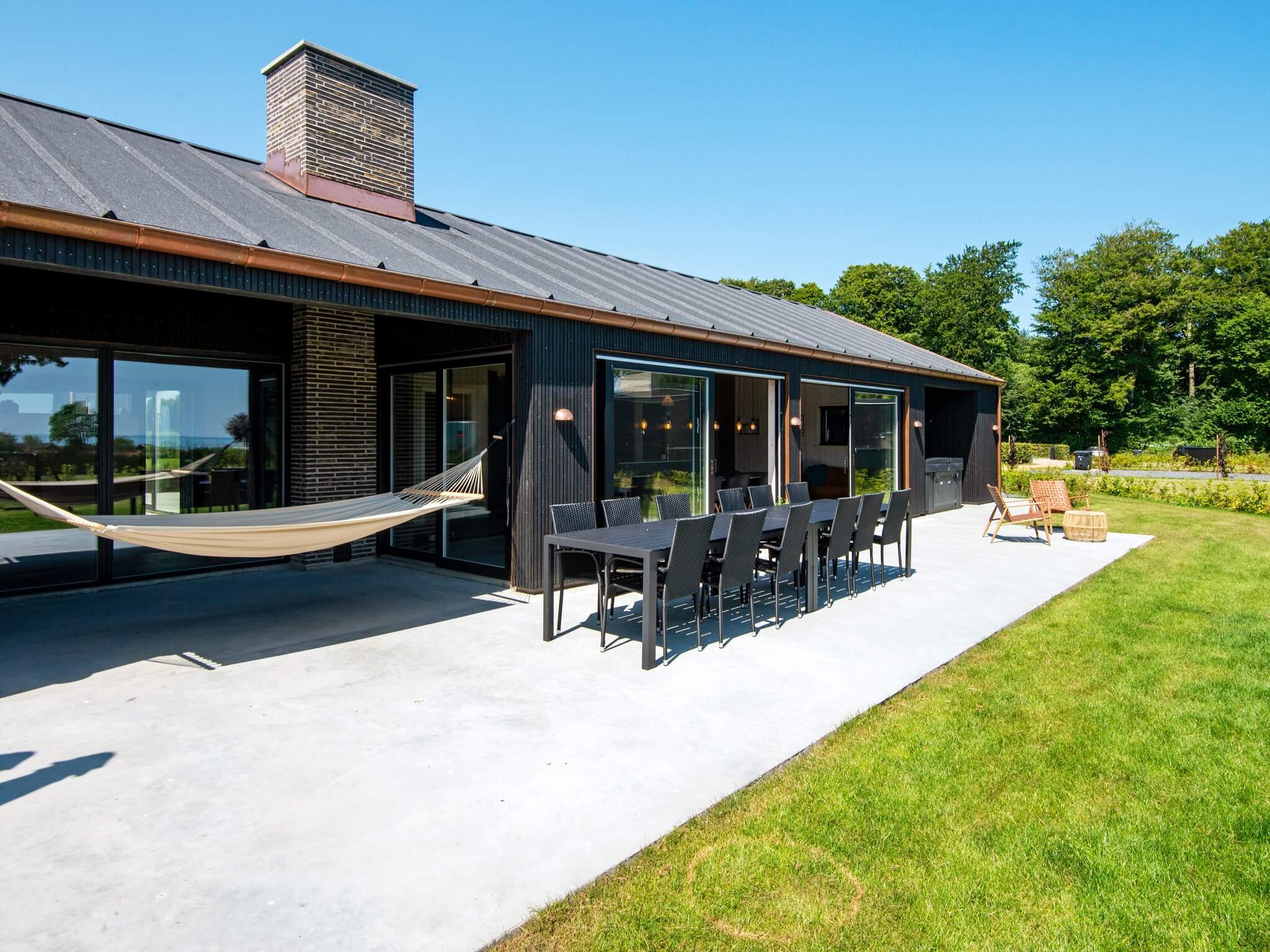 Umgeben wird das Ferienhaus von mehreren Terrassenflächen, auf denen Sie die Sonnentage und Grillabende mit Blick in die Natur ringsum genießen können. Zusätzlich zu mehreren überdachten Flächen steht eine 180 m2 große, offene Terrasse bereit. Das Ferienhaus wurde vom Architekten so gestaltet und platziert, dass Sie Ausblick und Sonne möglichst von morgens bis abends wahrnehmen und genießen können. Auch vom Außen-Whirlpool hat man eine reivzolle Aussicht bis zum Wasser.