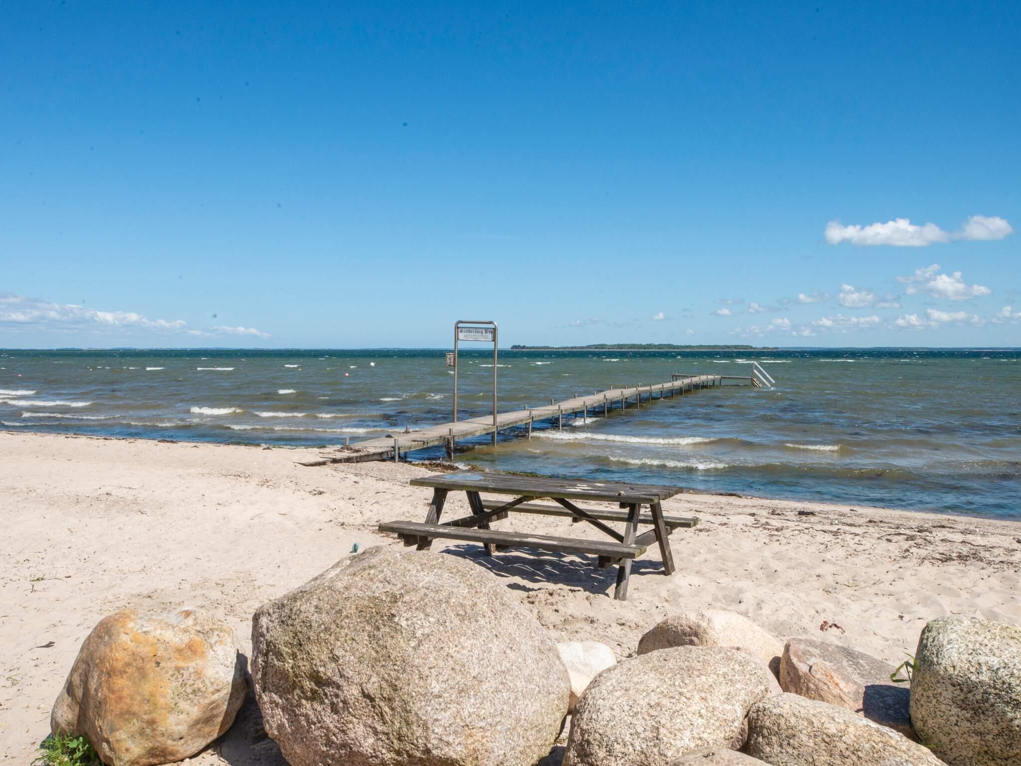 Ganz nah am Strandufer gelegenes, gemütliches Ferienhaus bei Sandersvig, mit herrlicher Aussicht über den Fjord. Das traditionelle Ferienhaus bietet wohnlichen Charme. Es hat einen offenen Küchen-/Wohnbereich mit TV und Holzofen für kühlere Abende. Außerdem gibt es 3 Schlafzimmer und ein schönes Badezimmer im Haus. Draußen auf der Terrasse stehen ein Grill und Gartenmöbel zur Verfügung und die Rasenfläche lädt zum Ballspielen etc. ein.