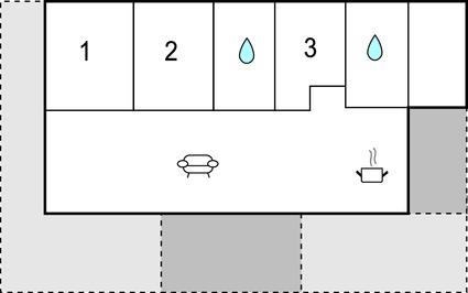 Badezimmer (nr. 2) - WC. Warmes und kaltes Wasser. Dusche