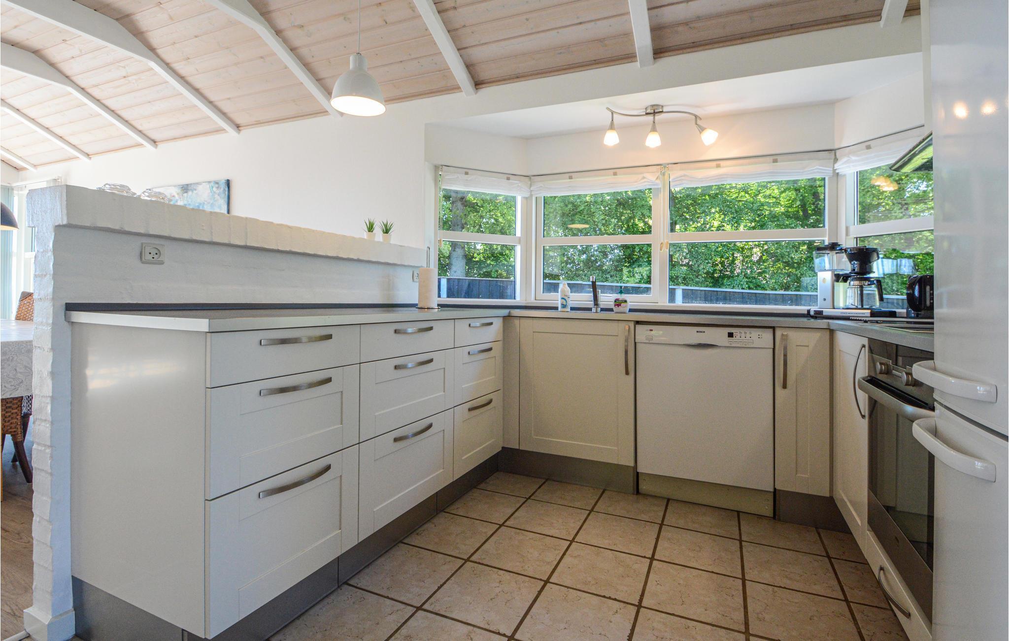 Schönes Ferienhaus in der ersten Reihe mit direktem Zugang und Blick zum Strand von Sandersvig. Das Haus befindet sich auf einem abgeschirmten Grundstück, sodass Sie ungestört auf der Terrasse und im Garten Zeit verbringen können. Die Innenräume sind hell mit hohen Decken, die Küche ist zum Wohnzimmer hin offen und von dort haben Sie Zugang zur teilweise überdachten Terrasse. Das Haus hat 2 Schlafzimmer und ein schönes Badezimmer. Genießen Sie Ihren Urlaub am ruhigen und schönen Sandstrand von Sandersvig. Oder machen Sie einen Ausflug nach Christiansfeld, das auf der Liste des Weltkulturerbes der Unesco steht, einer der markantesten Städte Dänemarks. Auch für Kuchenliebhaber ist Christiansfeld eine Reise wert, denn die Stadt ist berühmt für ihren köstlichen Lebkuchen, der hier seit 1783 gebacken wird. Sie wohnen außerdem in der Nähe vom Tyrstrup Kro. Das Hotel mit Restaurant bietet eine Küche von hoher internationaler Klasse. Auch Kolding und seine Umgebung spannende Ziele, wo Sie eine Vielzahl von Aktivitäten finden - unabhängig davon, ob Sie mit Kindern Urlaub machen, aktiv Urlaub suchen oder Kunst und Kultur lieben. Sehenswürdigkeiten der Gegend sind das Kunstmuseum Trapholt, das Koldinghus, die Fußgängerzonen mit gemütlichen Cafés oder das Kolding Storcenter, das mit seinen vielen Geschäften unter einem Dach zum Power-Shopping einlädt. Die nahe gelegene Stadt Haderslev hat eine charmante Altstadt, die von der beeindruckenden Kathedrale der Stadt dominiert wird.