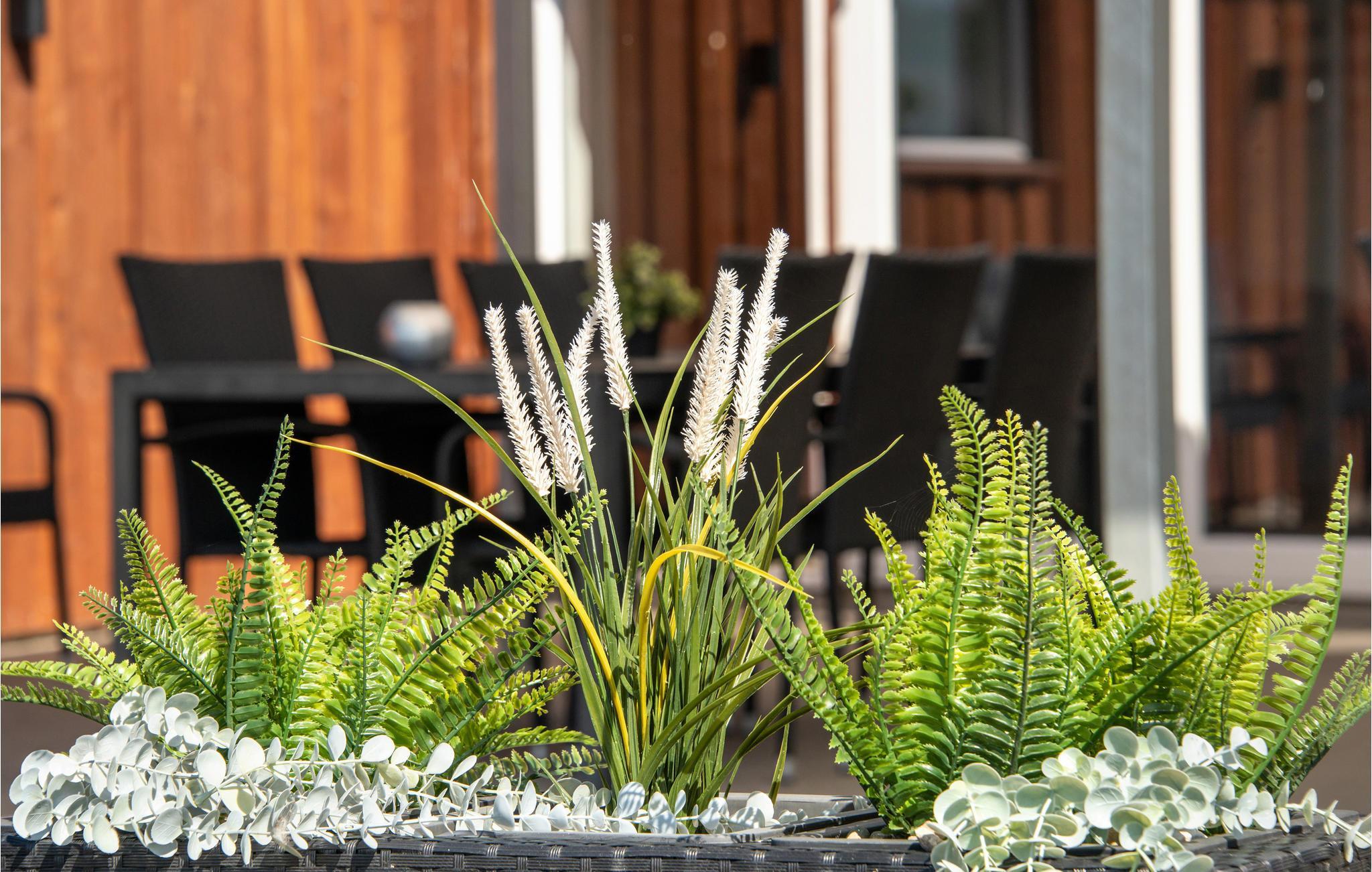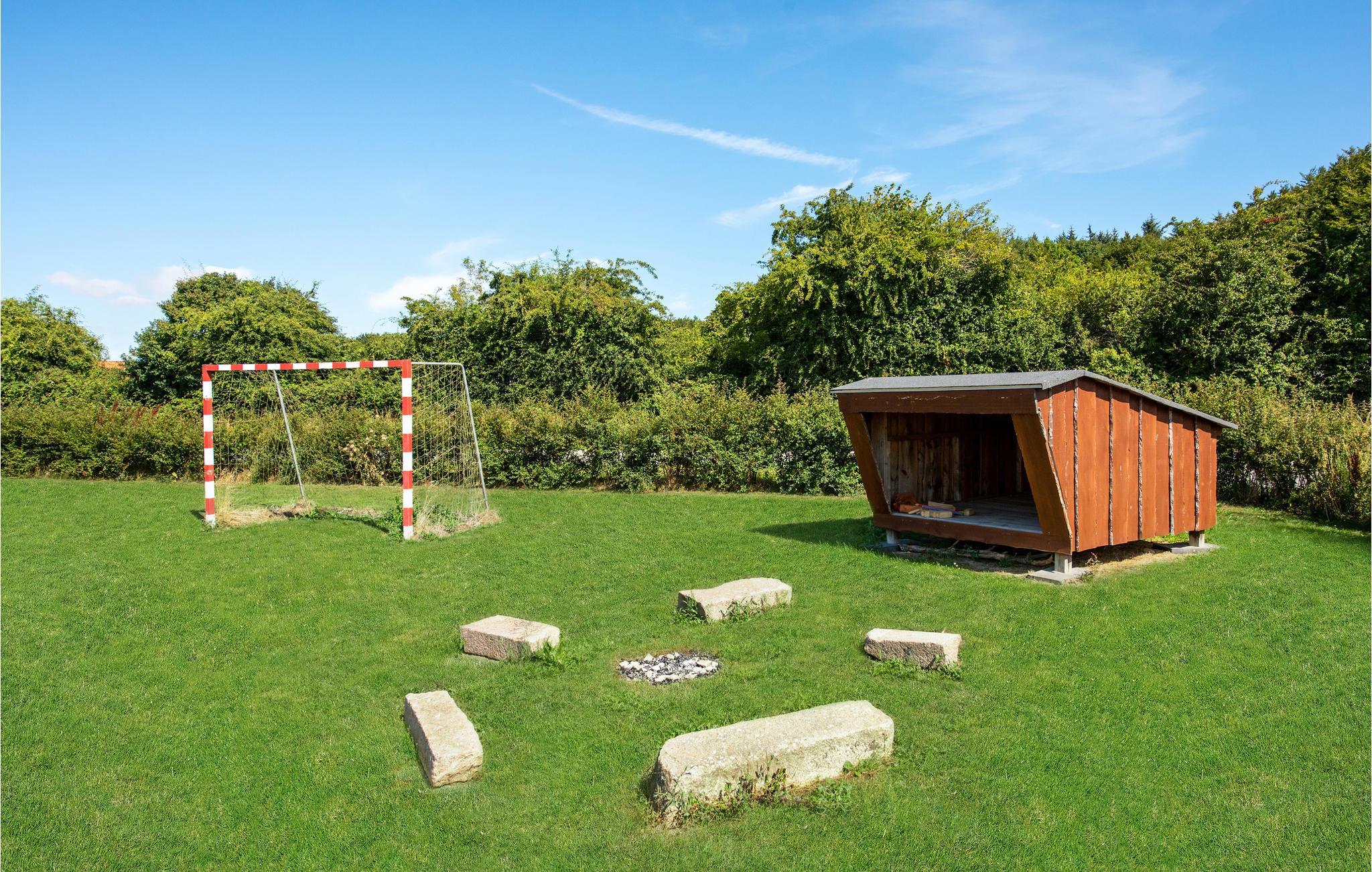 Draußen stehen viele Gartenmöbel und Liegestühle sowie eine Feuerstelle udn ein Shelter zur Verfügung. Hier ist alles bereit für einen herrlichen Urlaub mit der ganzen Familie.