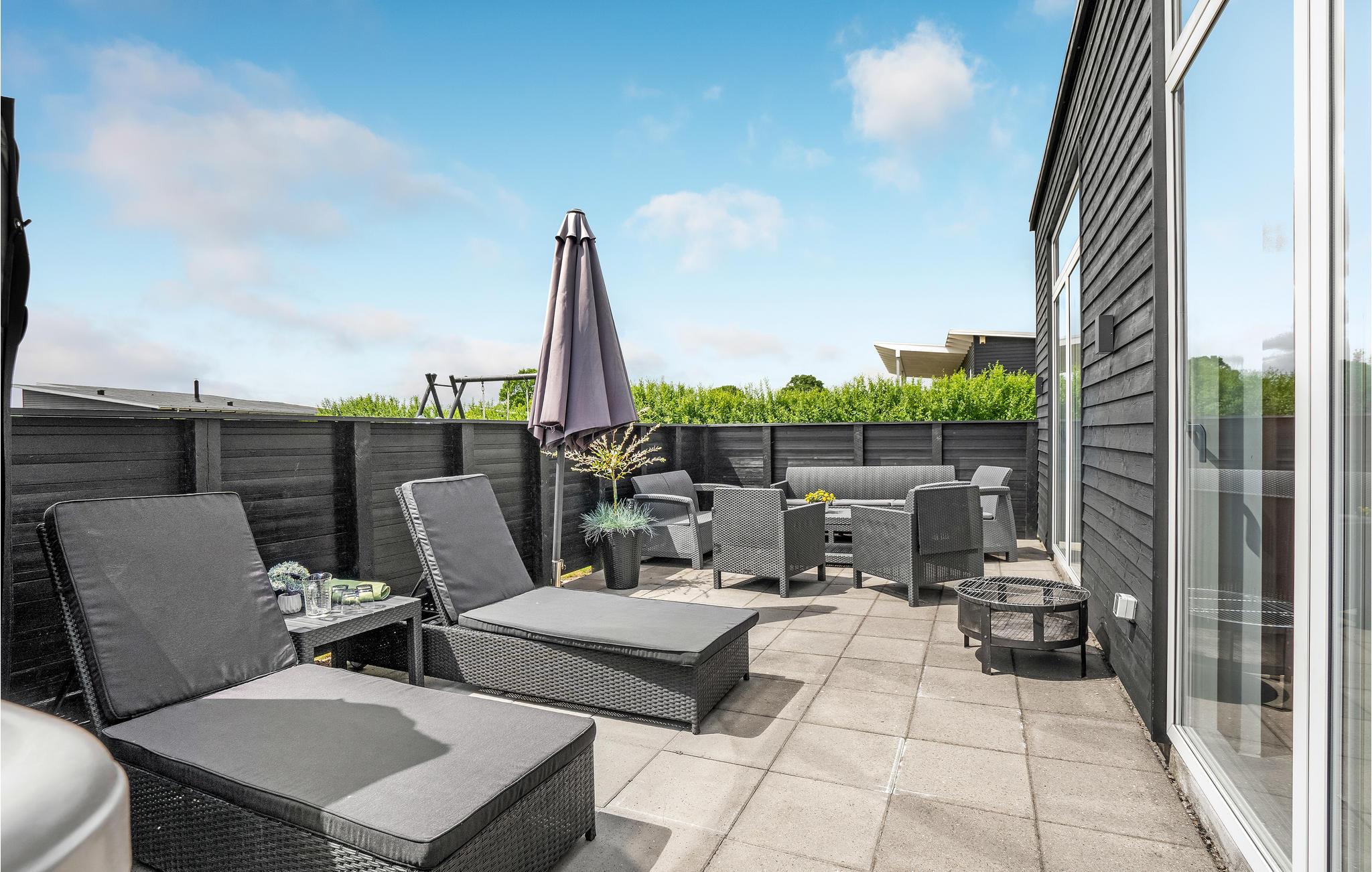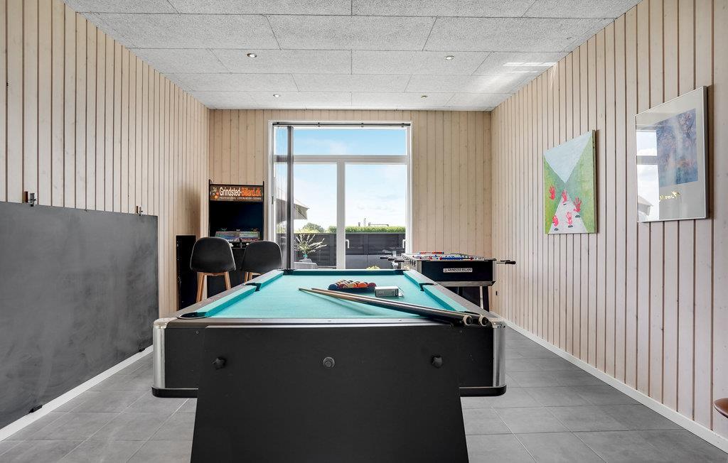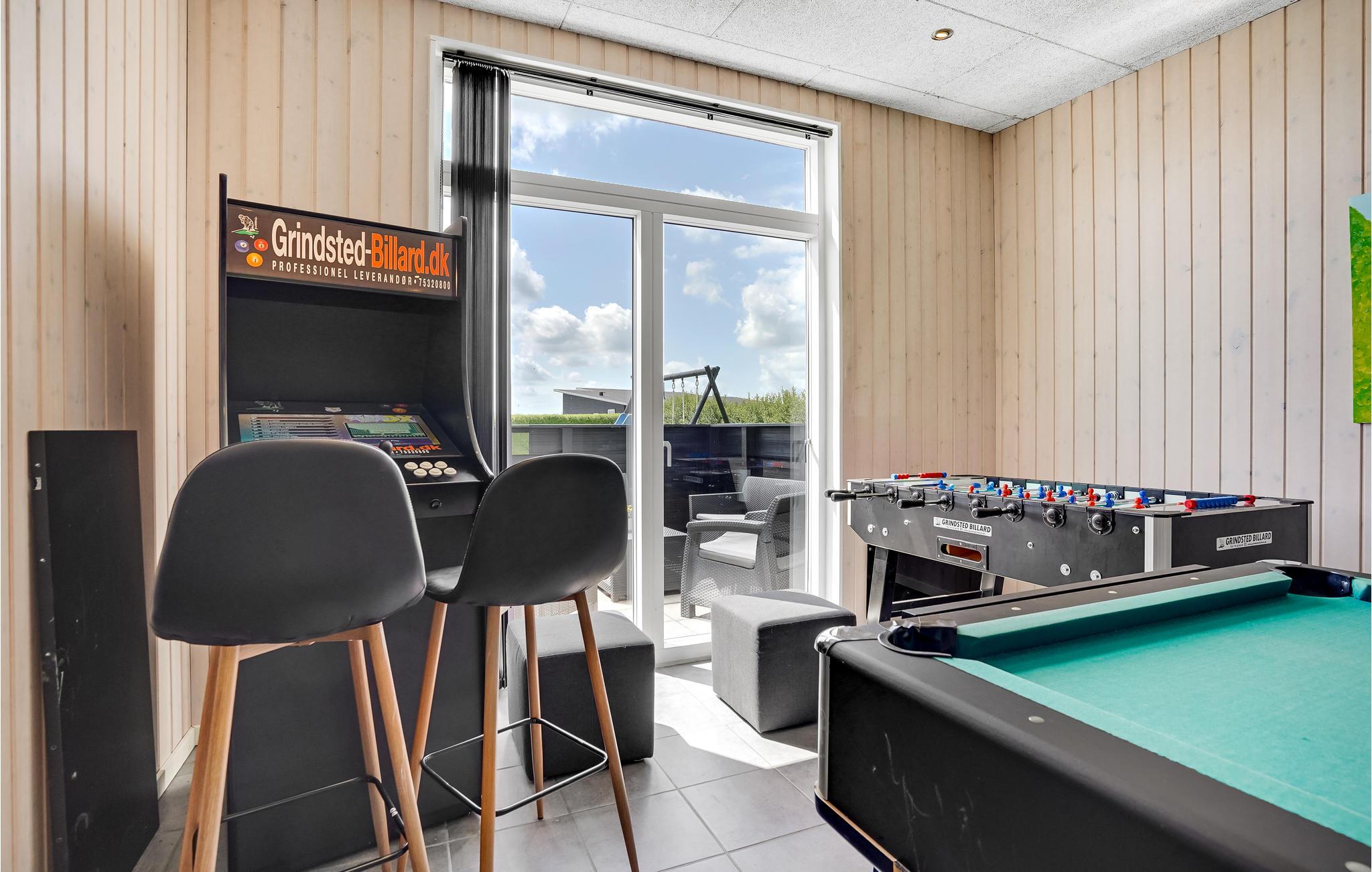 Hier finden Sie alles, was Ihr Herz begehrt. Das Ferienhaus besteht aus 2 Sektionen, eine überdachte Terrasse verbinden sie. Im Haupthaus sind im Spielzimmer Billard, Tischtennis, Tischfussball und ein Spielautomat mit 3000 Spielen vorhanden. In der gut ausgestatteten Wohnküche haben Sie es rund um den Kaminofen ganz behaglich. Die drei Schlafzimmer haben Qualitätsbetten. Im Bad erwarten Sie ein Whirlpool und die Infrarot-Sauna. In der anderen Sektion sind 2 Schlafzimmer und ein Badezimmer untergebracht. Das Ferienhaus eignet sich gut für zwei Familien.