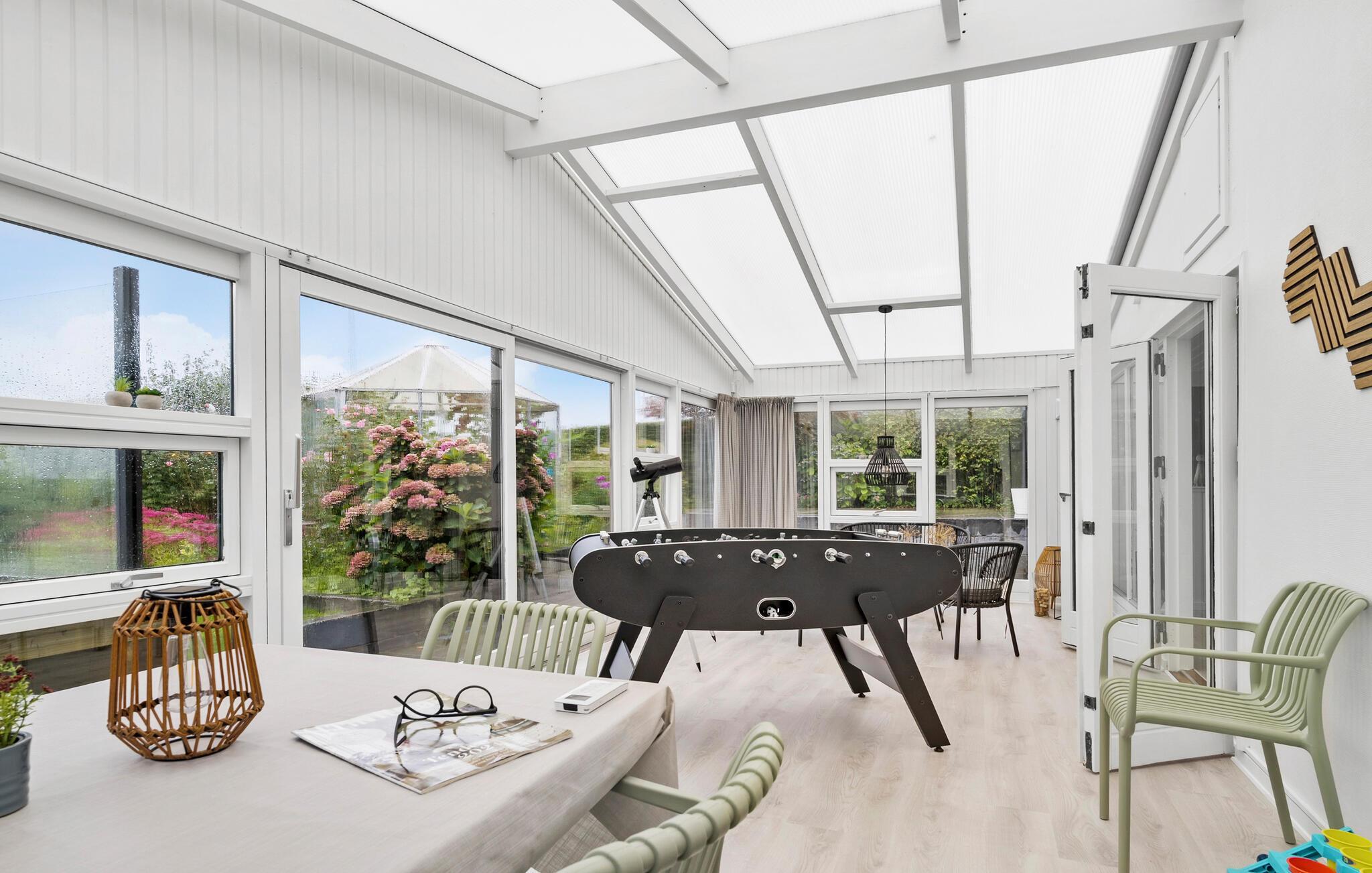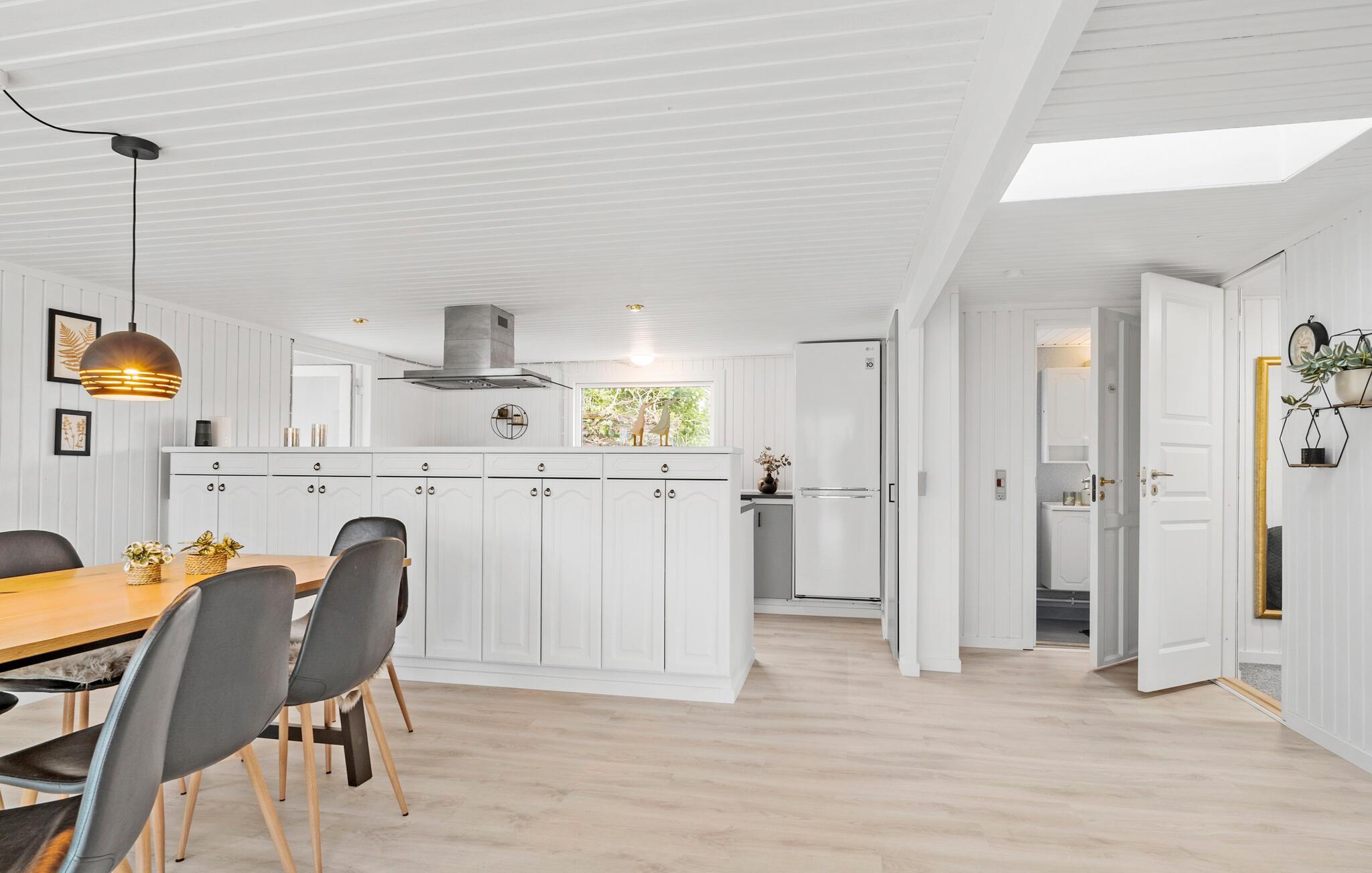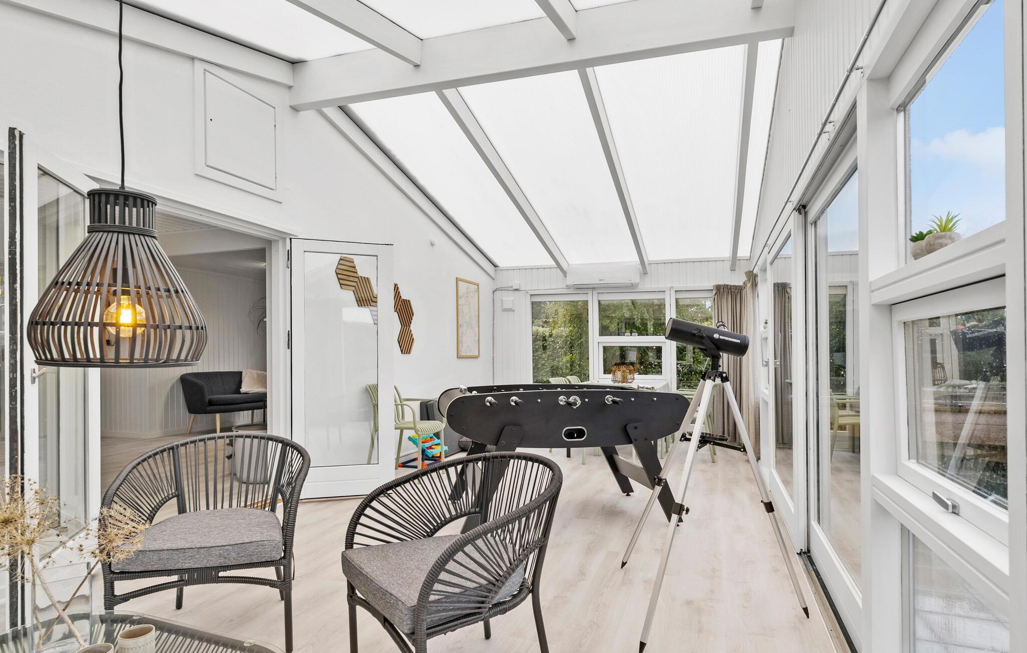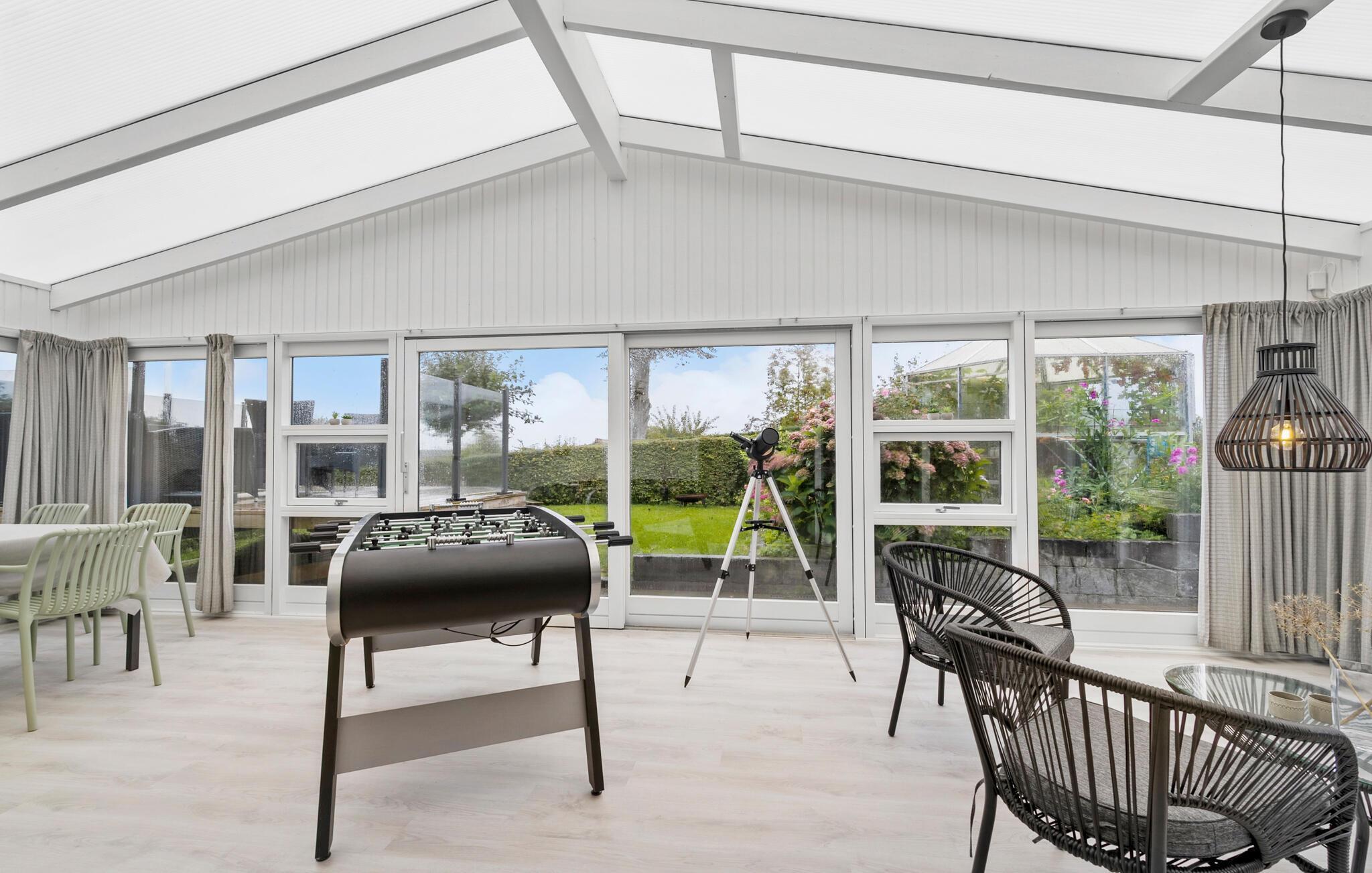 Verbringen Sie einen schönen Urlaub in diesem modernisierten Ferienhaus in Sandersvig, umgeben von einer idyllischen Landschaft und nur einen kurzen Spaziergang vom Strand entfernt. Das Haus besticht durch seine helle, freundliche Einrichtung und bietet ausreichend Platz für Entspannung und gemeinsame Stunden. Genießen Sie gemütliche Abende im offenen Wohnbereich mit einem Kamin, der besonders an kühleren Tagen für eine warme Atmosphäre sorgt. Nutzen Sie den Tischkicker, der im behaglichen Wintergarten bereitsteht, um sich bei einem Spiel mit der Familie zu vergnügen. Die modern ausgestattete Küche macht es Ihnen leicht, köstliche Mahlzeiten zuzubereiten, die Sie anschließend am großzügigen Esstisch genießen können.