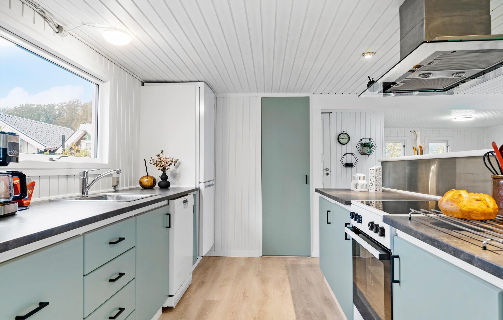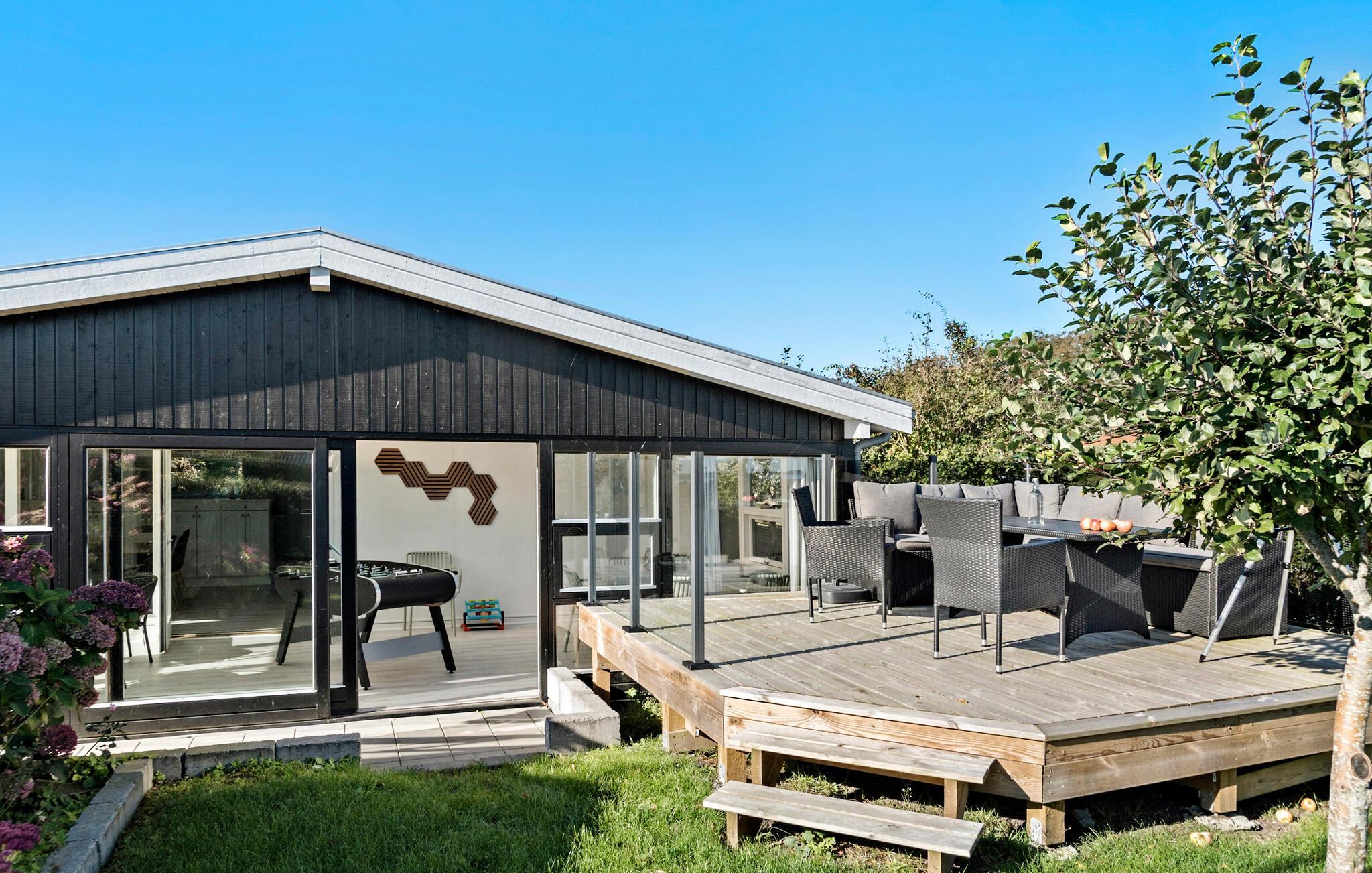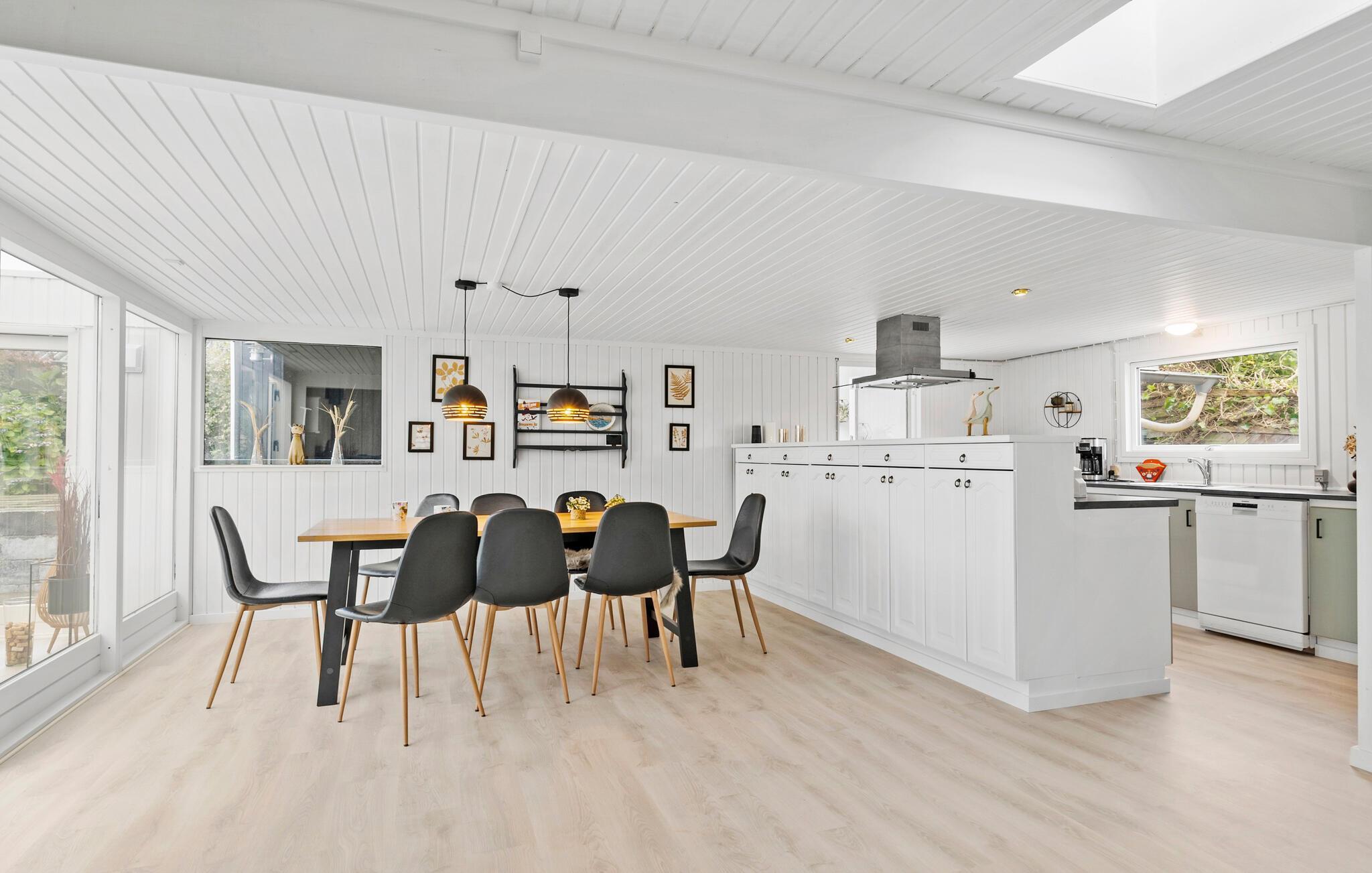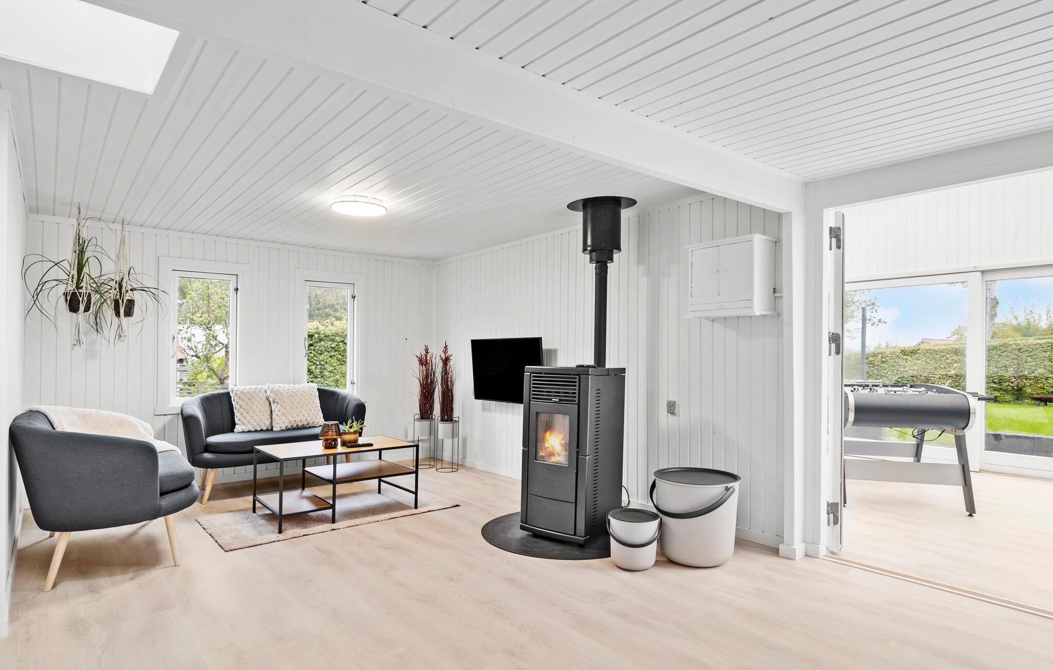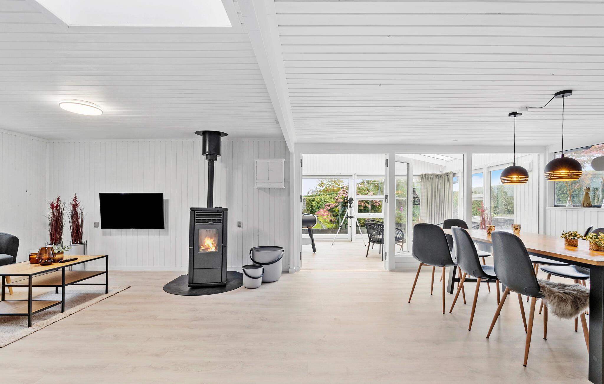 Verbringen Sie einen schönen Urlaub in diesem modernisierten Ferienhaus in Sandersvig, umgeben von einer idyllischen Landschaft und nur einen kurzen Spaziergang vom Strand entfernt. Das Haus besticht durch seine helle, freundliche Einrichtung und bietet ausreichend Platz für Entspannung und gemeinsame Stunden. Genießen Sie gemütliche Abende im offenen Wohnbereich mit einem Kamin, der besonders an kühleren Tagen für eine warme Atmosphäre sorgt. Nutzen Sie den Tischkicker, der im behaglichen Wintergarten bereitsteht, um sich bei einem Spiel mit der Familie zu vergnügen. Die modern ausgestattete Küche macht es Ihnen leicht, köstliche Mahlzeiten zuzubereiten, die Sie anschließend am großzügigen Esstisch genießen können.