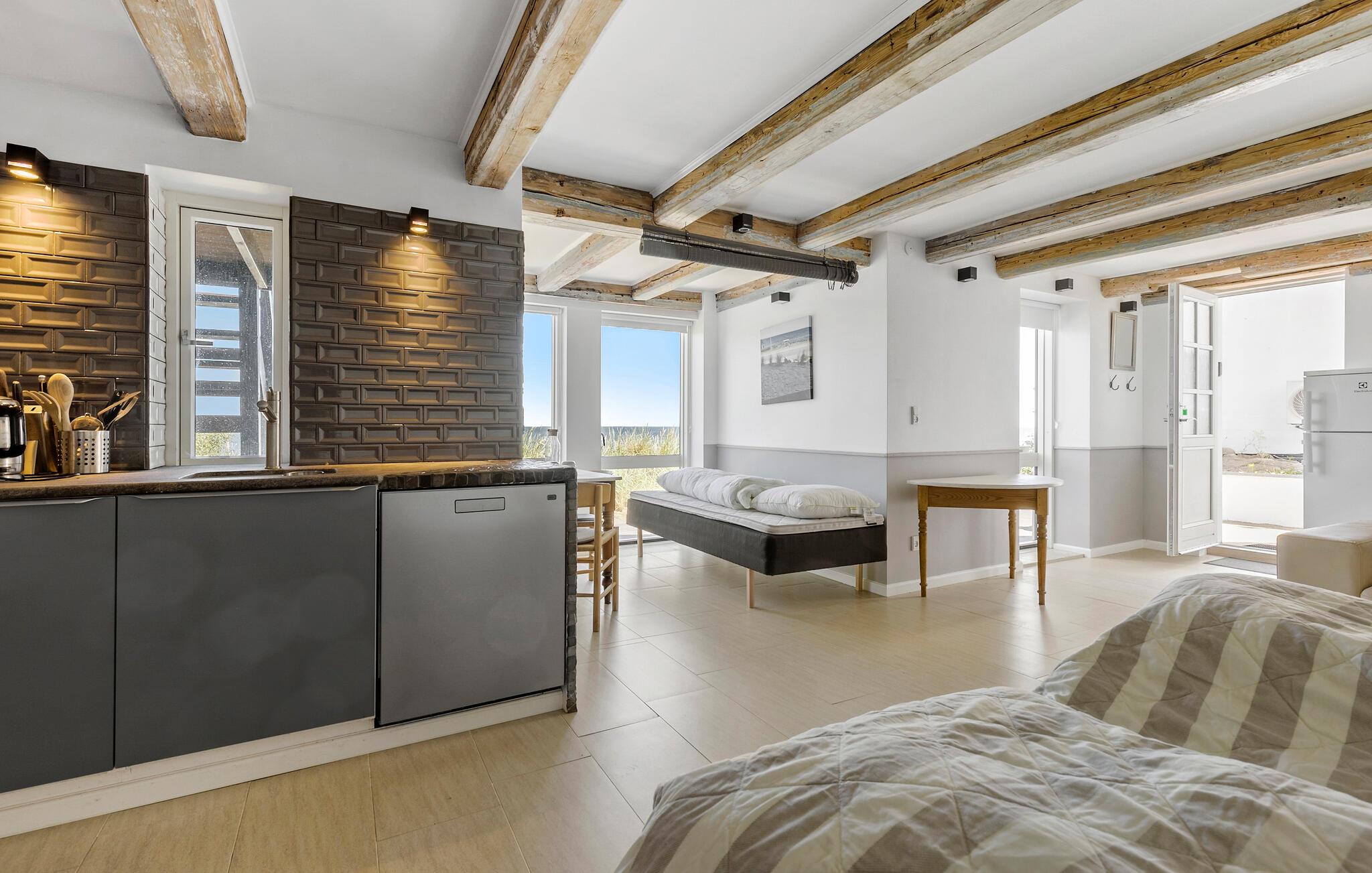 Im Umkreis von wenigen hundert Metern finden Sie gute Restaurants, einen Kiosk und nicht zuletzt einen schönen Sandstrand. Sandkås ist eines der ältesten touristischen Gegenden Bornholms. Hier können Sie Tage am Strand genießen oder Ihre Wanderschuhe schnüren und sich auf den Küstenweg begeben, der Sie hinauf in die Stadt Allinge führt. Die Stadt ist von wunderschöner Natur umgeben, vom magischen Troldeskov bis zum beeindruckenden Klüfttal Storedalen. Die Gastronomie ist erstklassig. Gönnen Sie sich alles von köstlichen Bieren bis hin zu frisch gebackenen Versuchungen aus der Bäckerei Brødre Bageriet. Wenn Sie auf der Suche nach gehobener Küche sind, besuchen Sie das nahegelegene Hotel Abildgård.