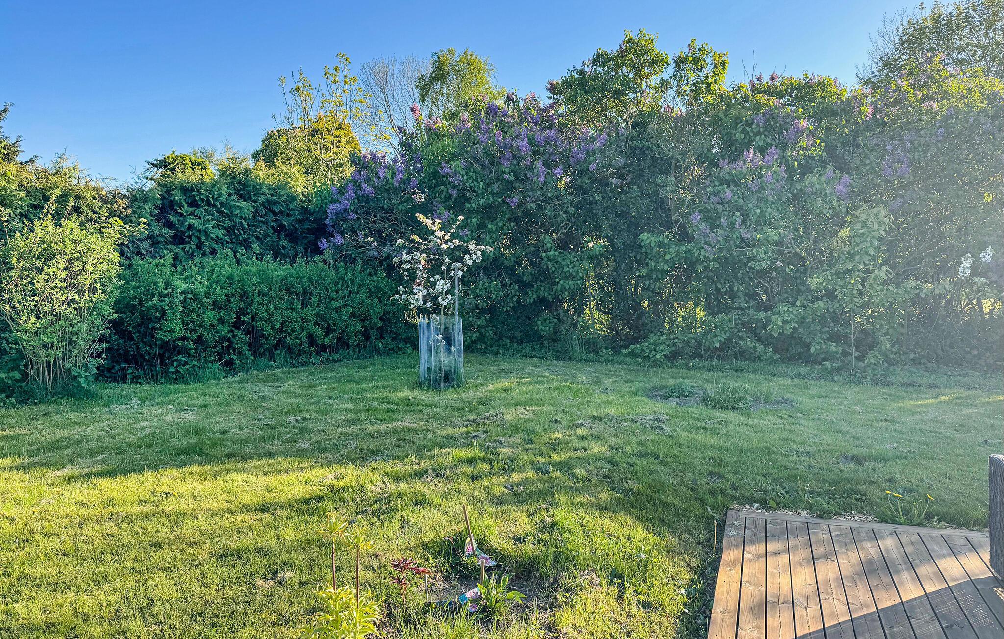Auf der großzügigen Terrasse können Sie den ganzen Tag Sonne und entspannte Mahlzeiten genießen sowie den Blick über den wild blühenden Garten schweifen lassen, der mit einem Trampolin und einer Feuerstelle für gesellige Abende unter freiem Himmel ausgestattet ist.