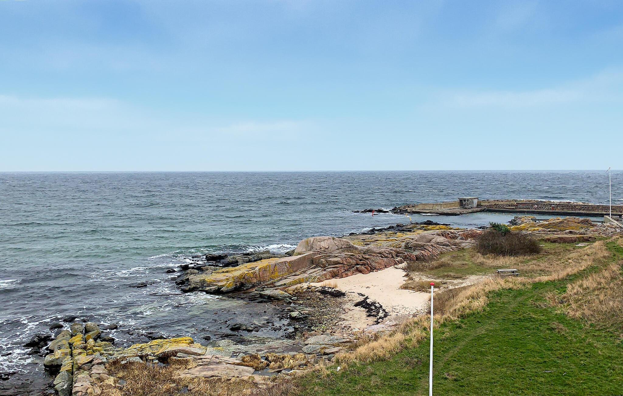 Obwohl Bornholm eine lange Küstenlinie hat, ist die Unterkunft in Sandvig dem Meer am nächsten. Von den drei Balkonen im zweiten Stock haben Sie den ganzen Tag über Sonne und die schönste Aussicht auf die Steilküste, den Hafen von Sandvig, die Strandpromenaden, den Strand, den Steg und Hammerknuden. Vom Ferienhaus aus können Sie den Wechsel der Jahreszeiten und die vielen Möglichkeiten, die Stadt und Natur in Sandvig zu bieten haben, genau verfolgen. Genießen Sie im Sommer einfach die herrliche Lage des Hauses mitten auf der Strandpromenade, die eine Verlängerung der feinsten Sandlagune mit einem von Felsen umgebenen Steg und dem schönsten Meeresgrund ist, mit dem wildesten Wanderweg der Insel, dem Hammerknuden, im Hintergrund. Sandvig ist der begehrteste Sommerort auf Bornholm, wegen seiner rauen Natur und nicht zuletzt wegen der unzähligen Initiativen in Musik, Restaurants und Cafés.