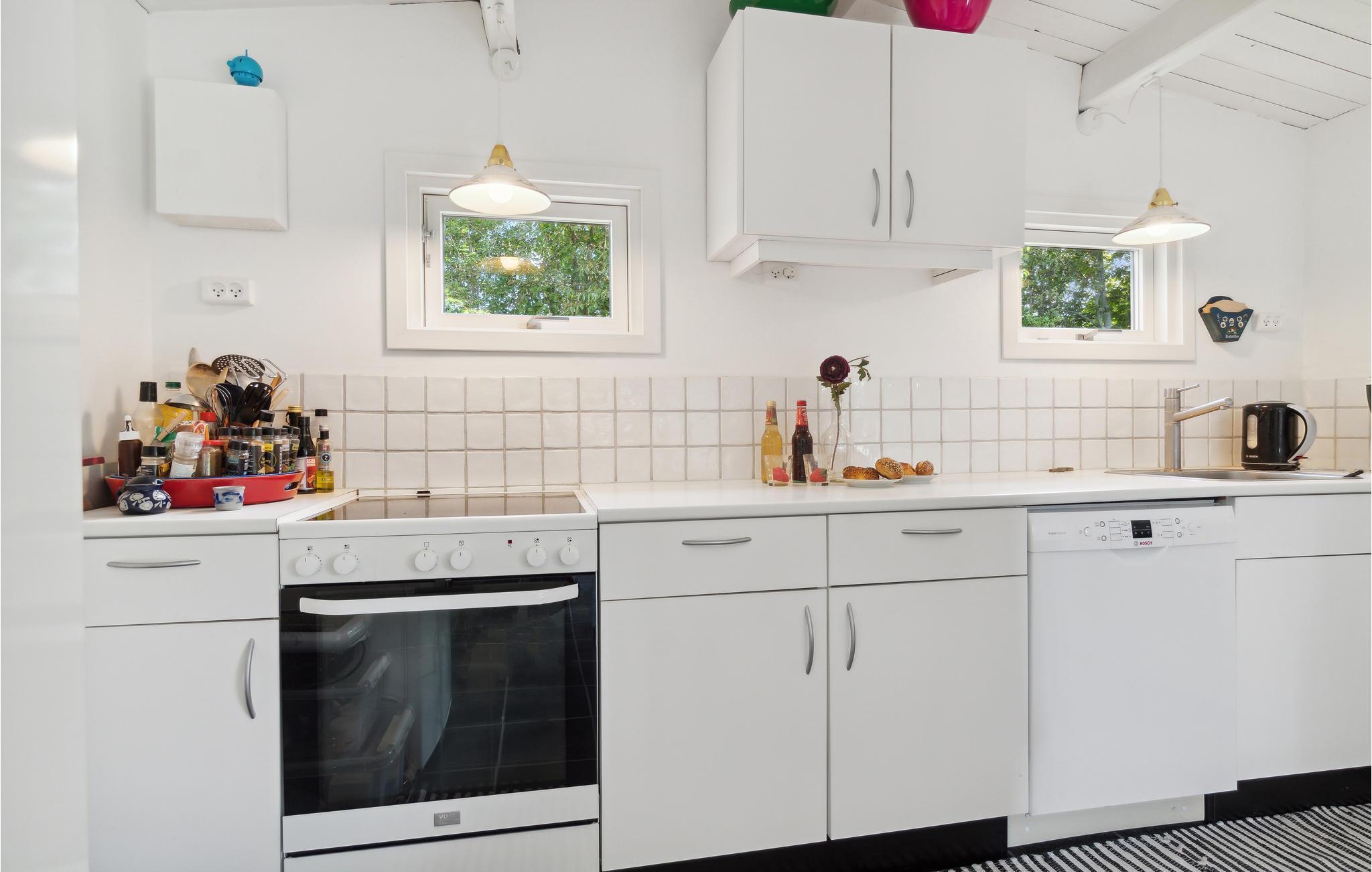 Die schöne Unterkunft ist in der Nähe von herrlicher Natur. Ein kurzer Spaziergang führt Sie an den Strand, kleinem Hafen und zum gemütlichem Sandvig, wo Minigolf, Spielplätze und Restaurants auf Sie warten!