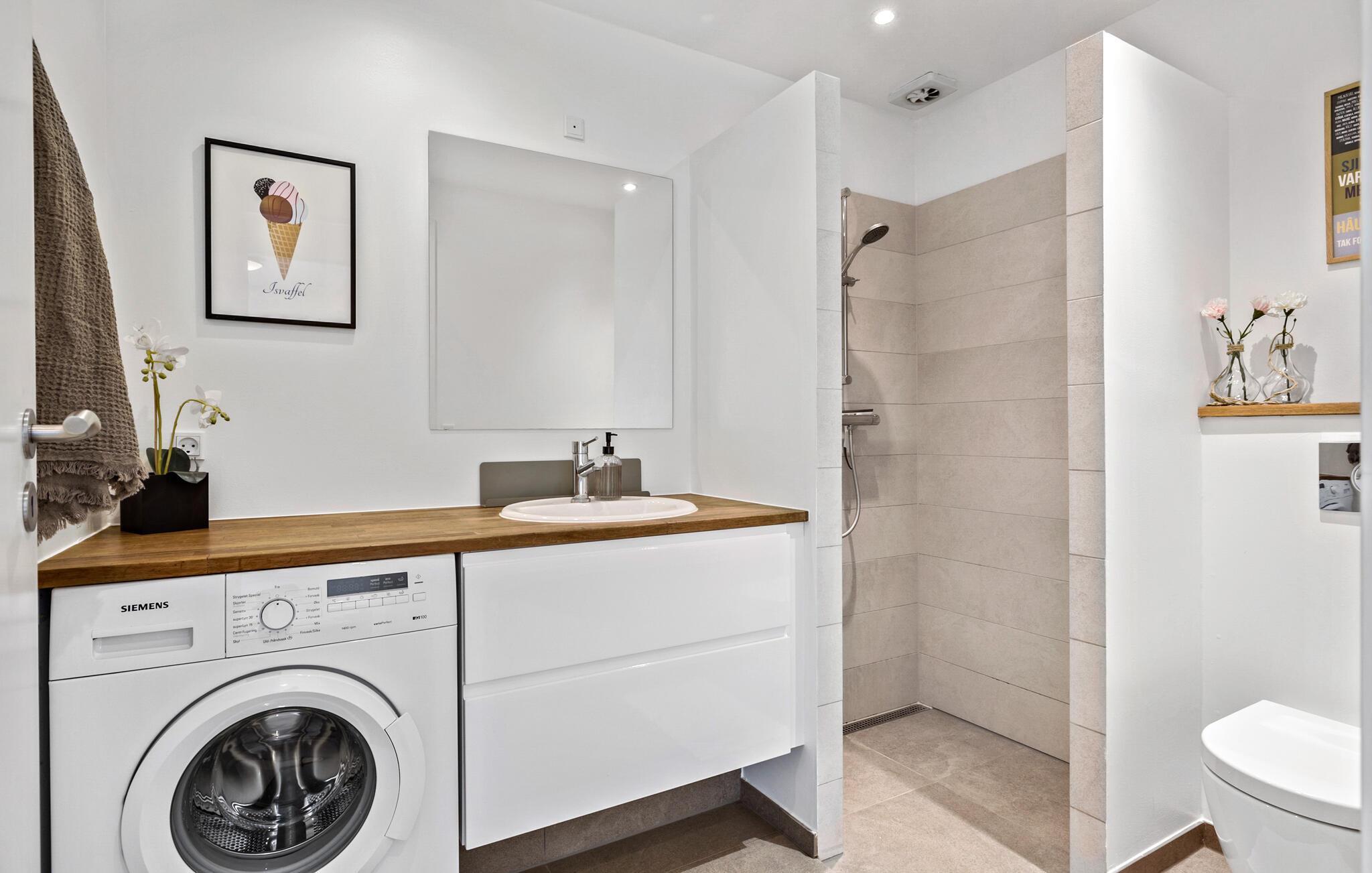Der natürliche Treffpunkt des Hauses ist die offene Wohnküche, wo Sie es sicher an so manchen Abenden richtig gemütlich machen werden, wenn die Einen kochen und die Anderen fernsehen. Vom Wohnzimmer aus haben Sie Zugang zu einer Terrasse mit Loungemöbeln und Grill, wo Sie es sich mit einem guten Buch gemütlich machen, die frische Meeresluft und Ihr Grillgut genießen können. Im Badezimmer gibt es eine Waschmaschine und eine angenehme Fußbodenheizung. Im ersten Stockwerk finden Sie ein großes Schlafzimmer mit vier Betten, durch eine Trennwand separiert - Bitte beachten Sie, dass die Deckenhöhe in einer Raumhälfte begrenzt ist.