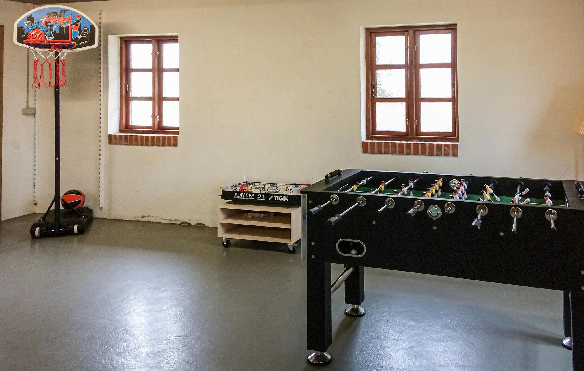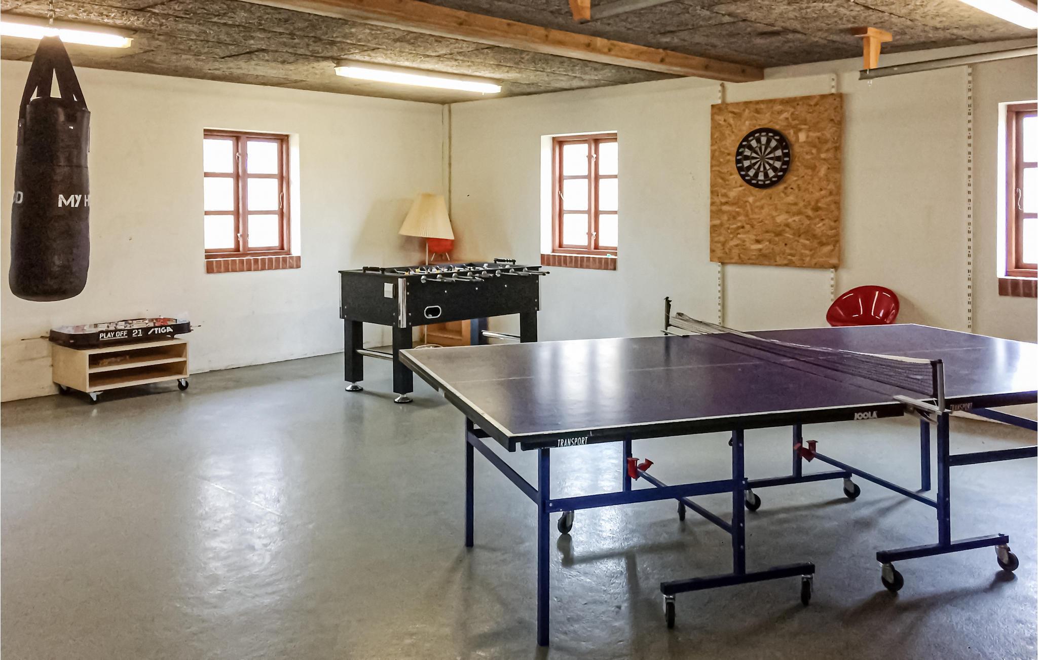 Im 97 m² großen Aktivitätshaus finden Sie u.a. Basketball, Tischtennis, einen Boxball und Darts. Hier können Groß und Klein jede Menge Spaß zusammen haben. Das Bauernhaus ist geschmackvoll eingerichtet. Die große Küche und das Wohnzimmer bilden einen Raum. Das Haus ist sehr geschmackvoll eingerichtet, die Möbel sind von guter Qualität.