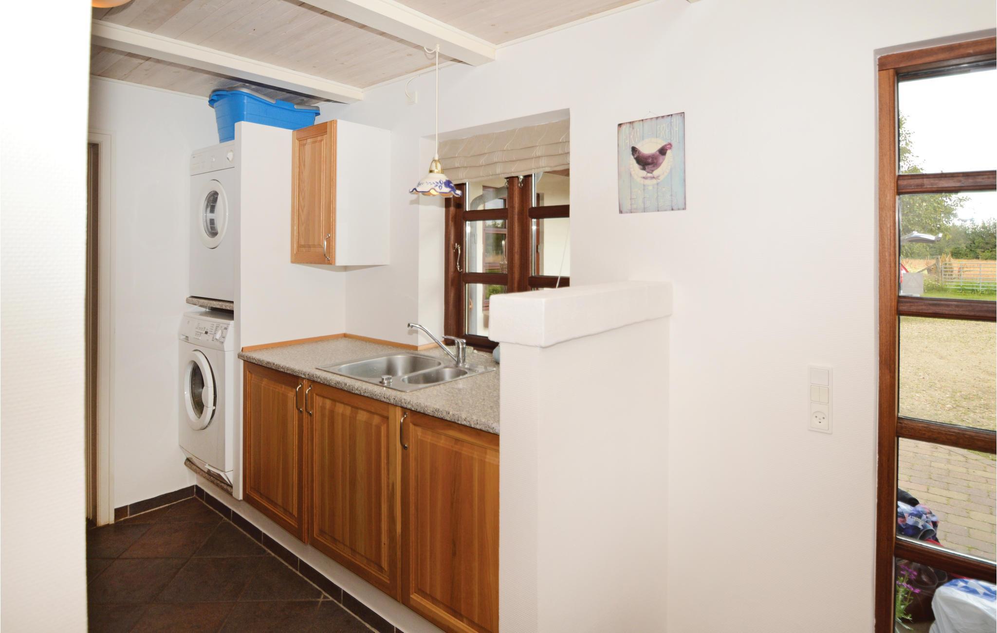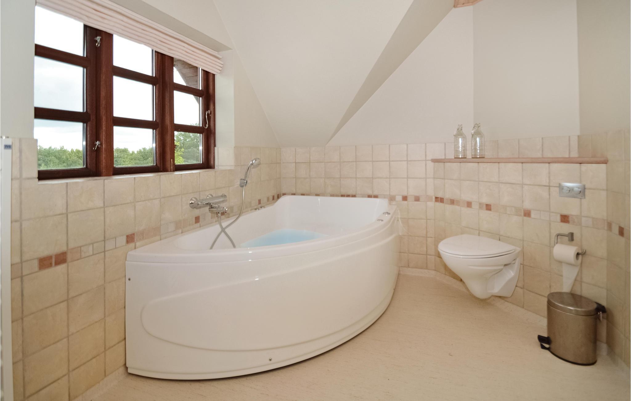 Die Terrasse nach Süden ist mit Fliesen belegt. Im Haus gibt es 2 Badezimmer, in einem steht ein Whirlpool. Im großen, gut angelegten Garten befinden sich ein 1,5 km langer Fußweg, eine Spielburg und ein Spielhaus. In der Umgebung finden Sie gute Fischgründe, passionierte Angler werden mit der geräumigen Gefriereinrichtung zufrieden sein, hier haben Sie für Ihren Fang ausreichend Platz.