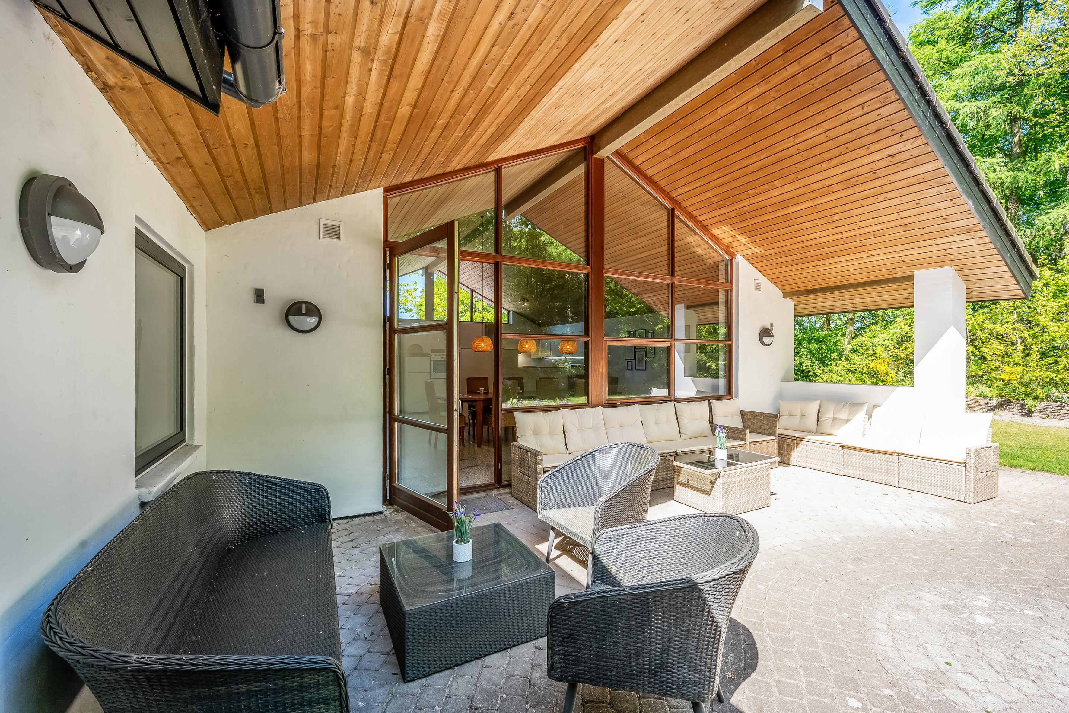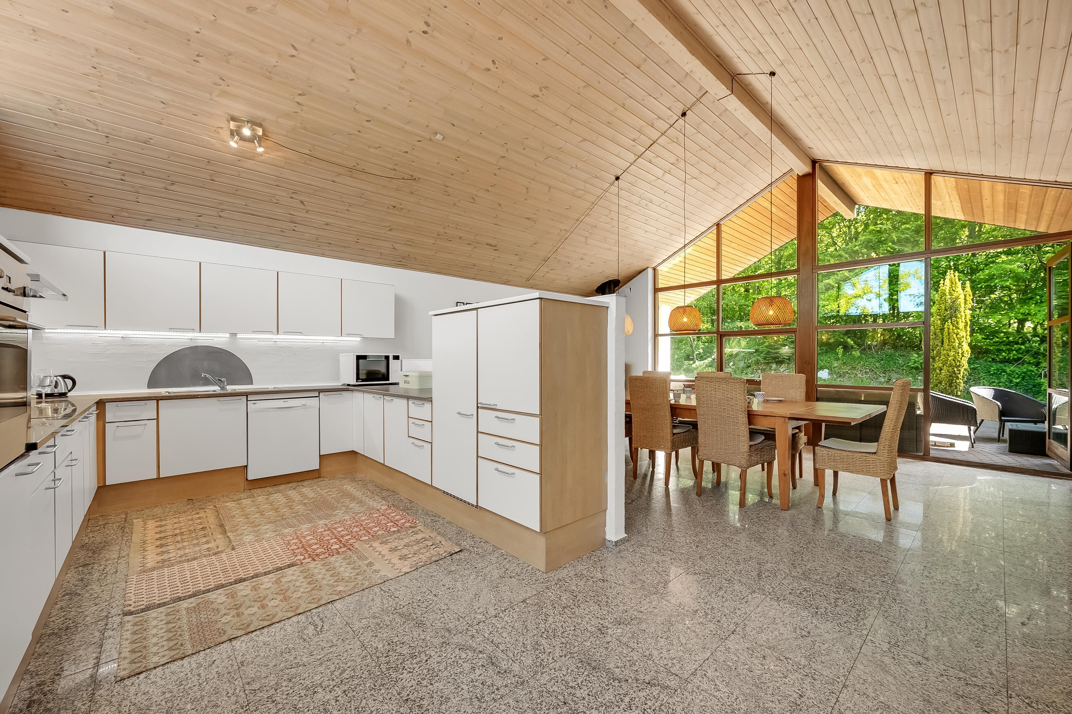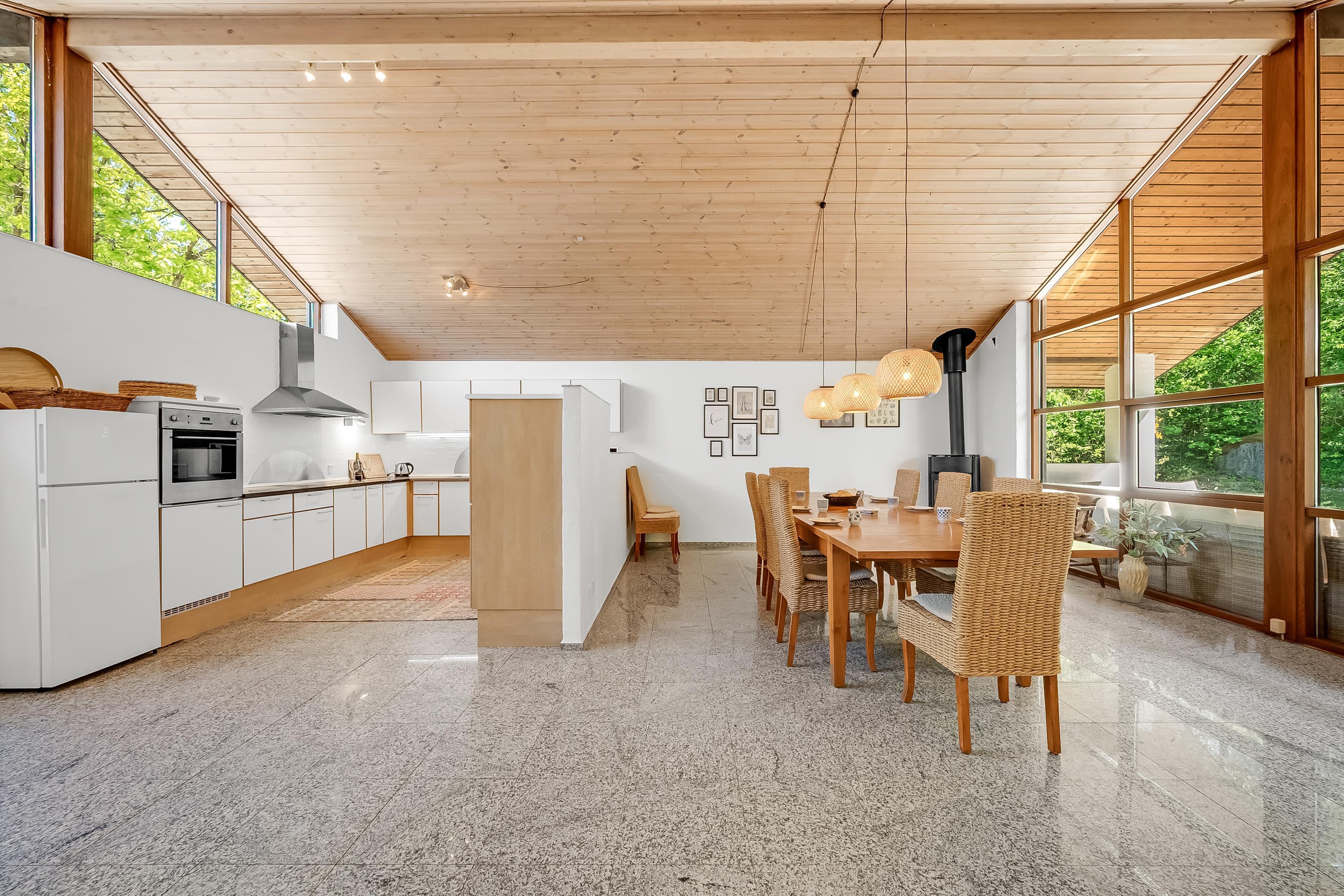 The property is equipped with modern amenities, including a heat pump, ensuring a comfortable temperature all year round. There is also a wood-burning stove, adding a cosy atmosphere on cold evenings. The house also has a fully equipped kitchen with all the necessary appliances, including a microwave, oven, ceramic hob, dishwasher, fridge and freezer with 30 litre capacity, making it easy to prepare meals for large groups.