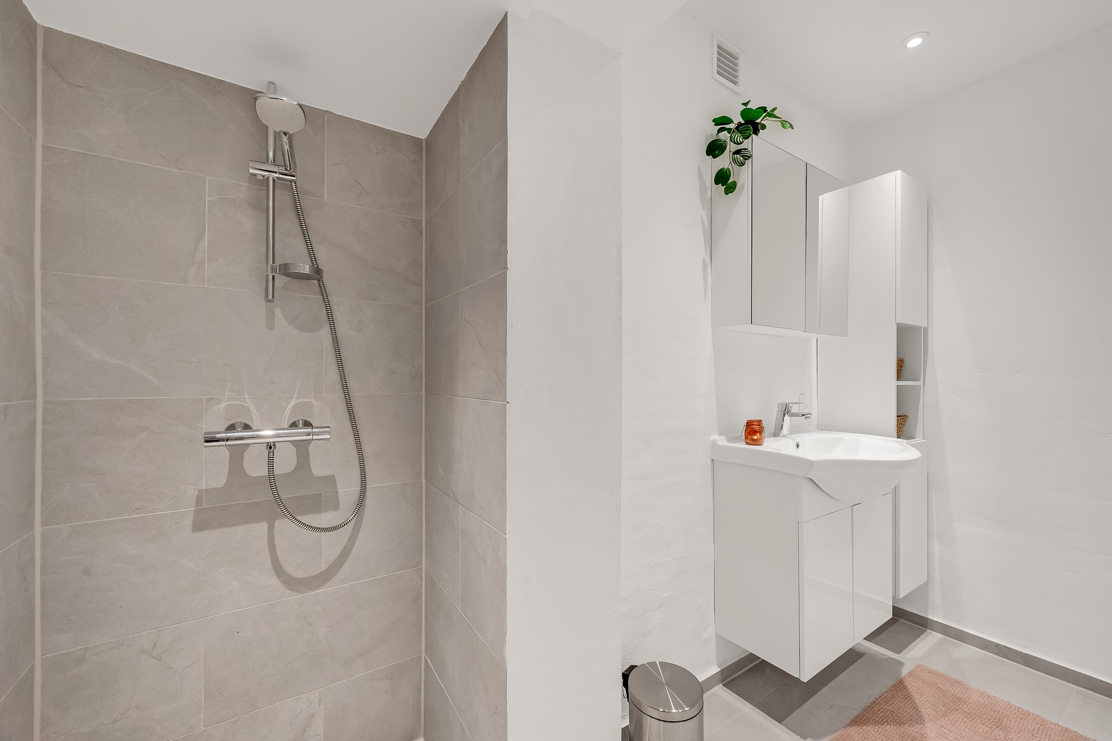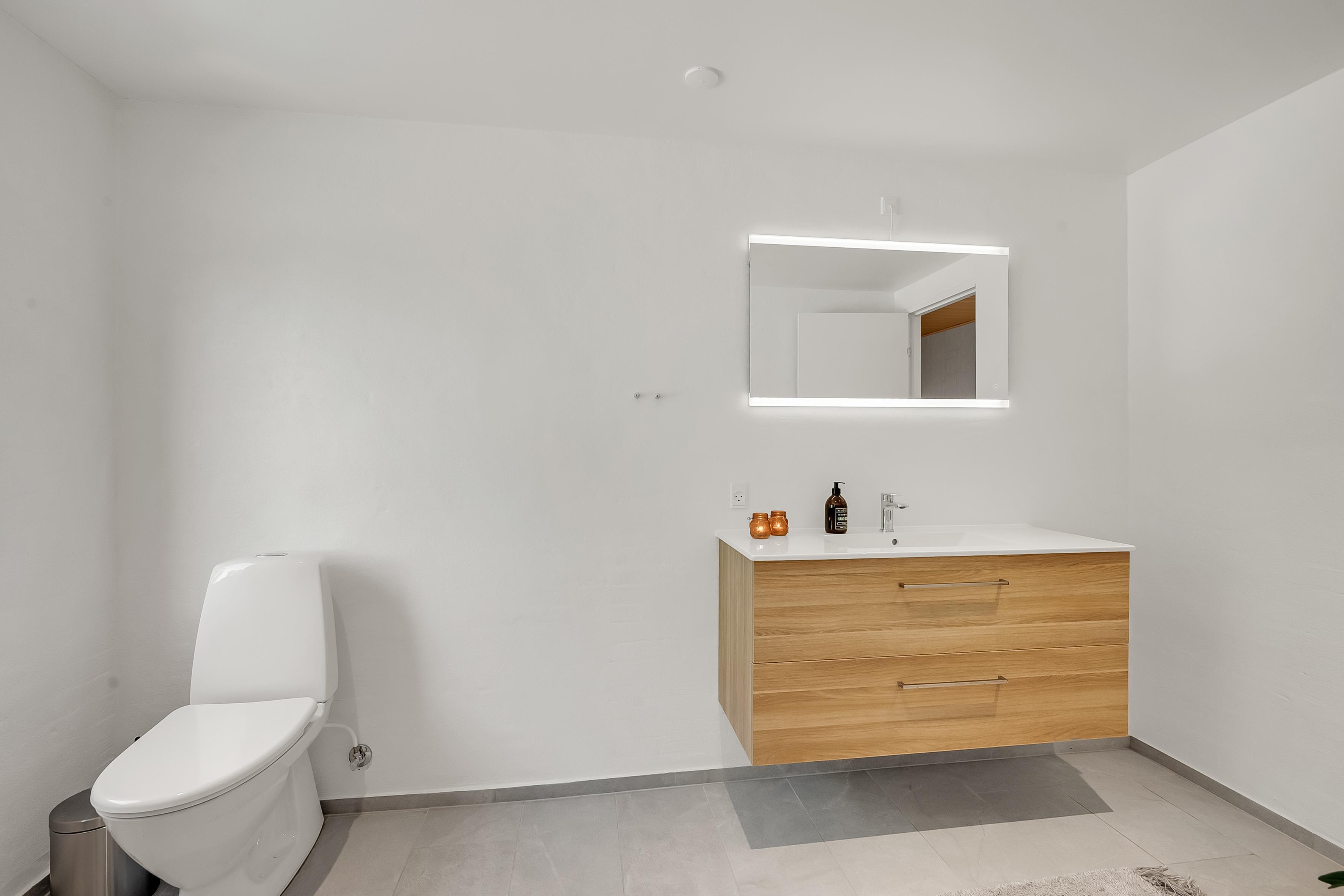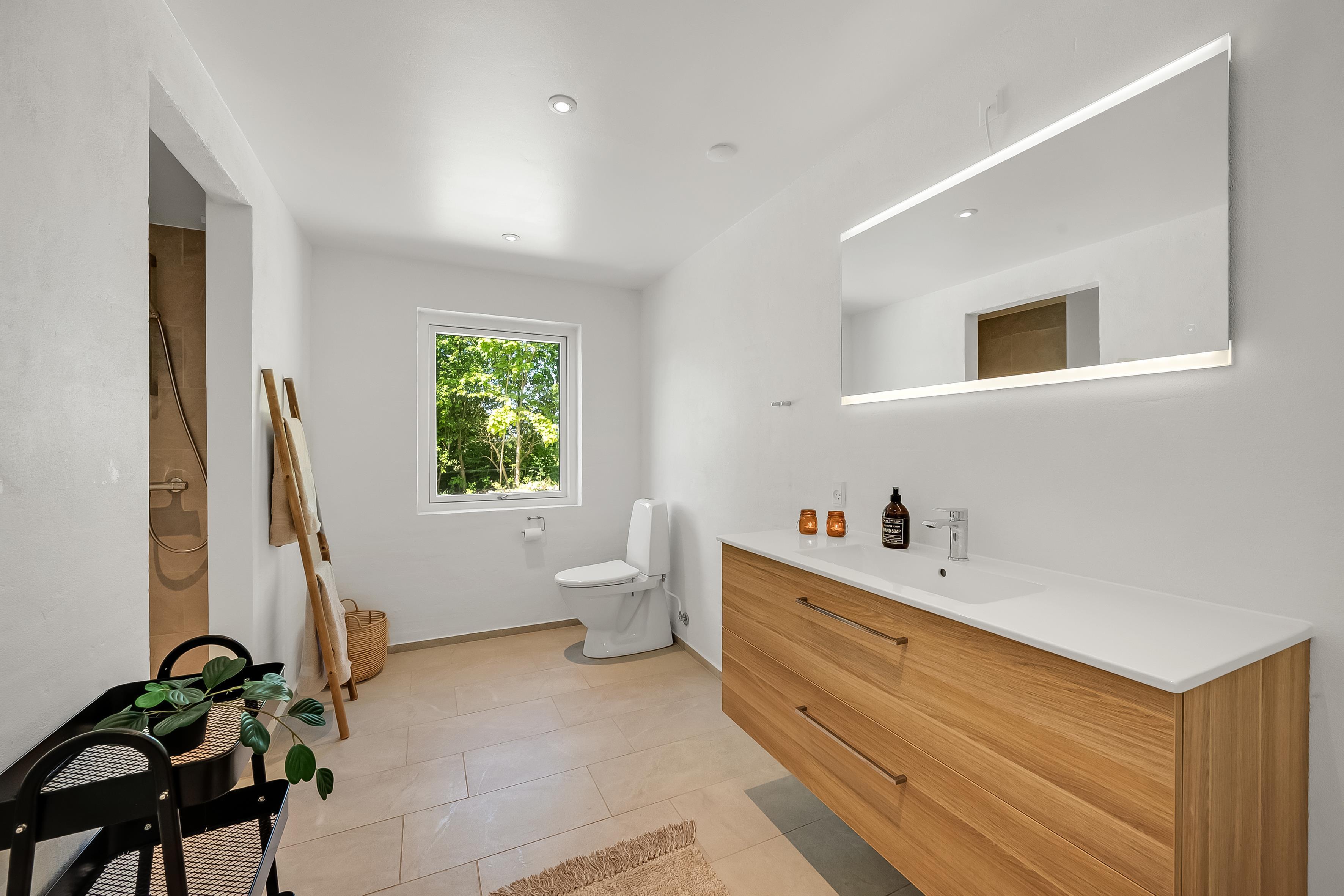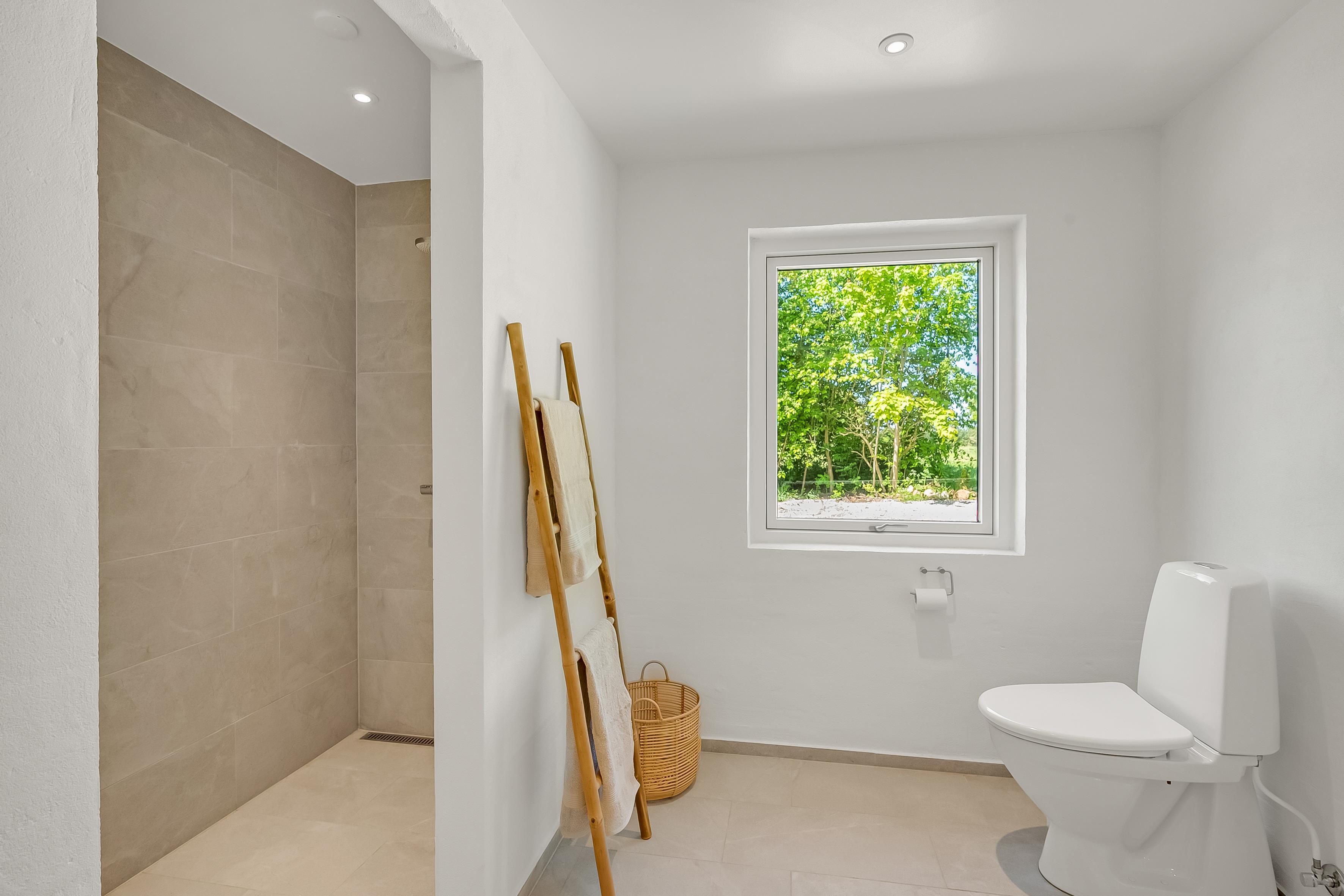 The house has two modern bathrooms, both with underfloor heating, which provides a comfortable experience, especially in winter. Each bathroom is also equipped with a shower, so there is no need to wait in line when it is time to freshen up. There are also two separate toilets, making it easy for everyone to access the facilities.