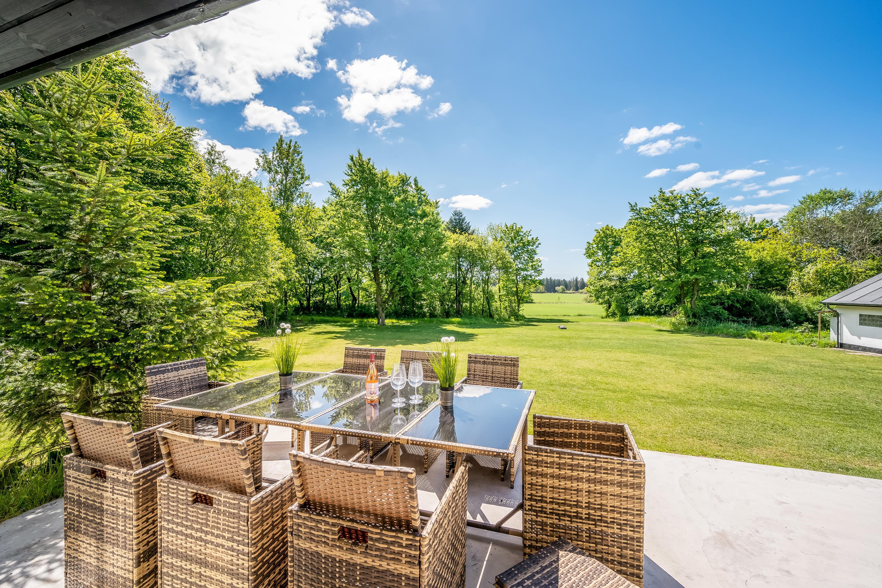 The property is located on a large plot of 41,341 square meters, which provides plenty of space for outdoor activities and play. The house area is 240 square meters, ensuring that there is plenty of space for all guests, with up to 10 sleeping places divided into five comfortable bedrooms. Two of the bedrooms have a double bed, while the other bedrooms are each equipped with two single beds, making it ideal for families or groups who want to share the space.