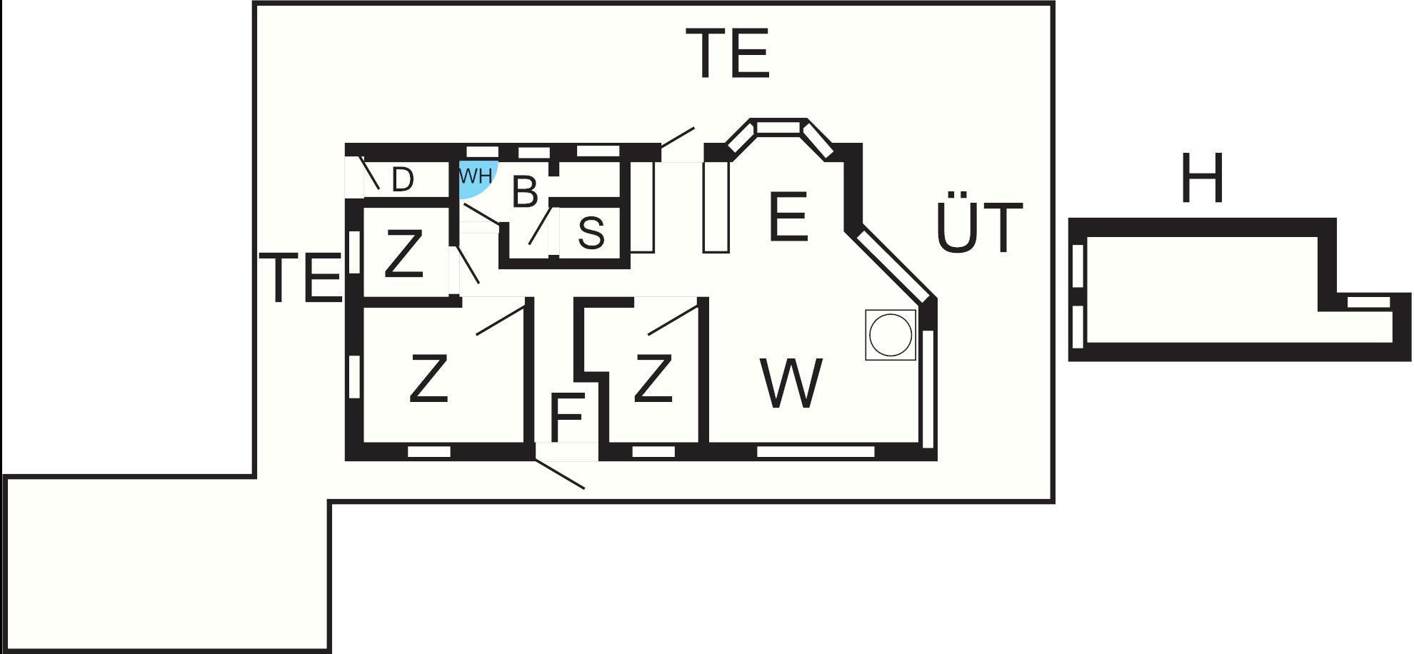 Bad: Waschm., WC, Waschb., Dusche, Fußbodenheiz.