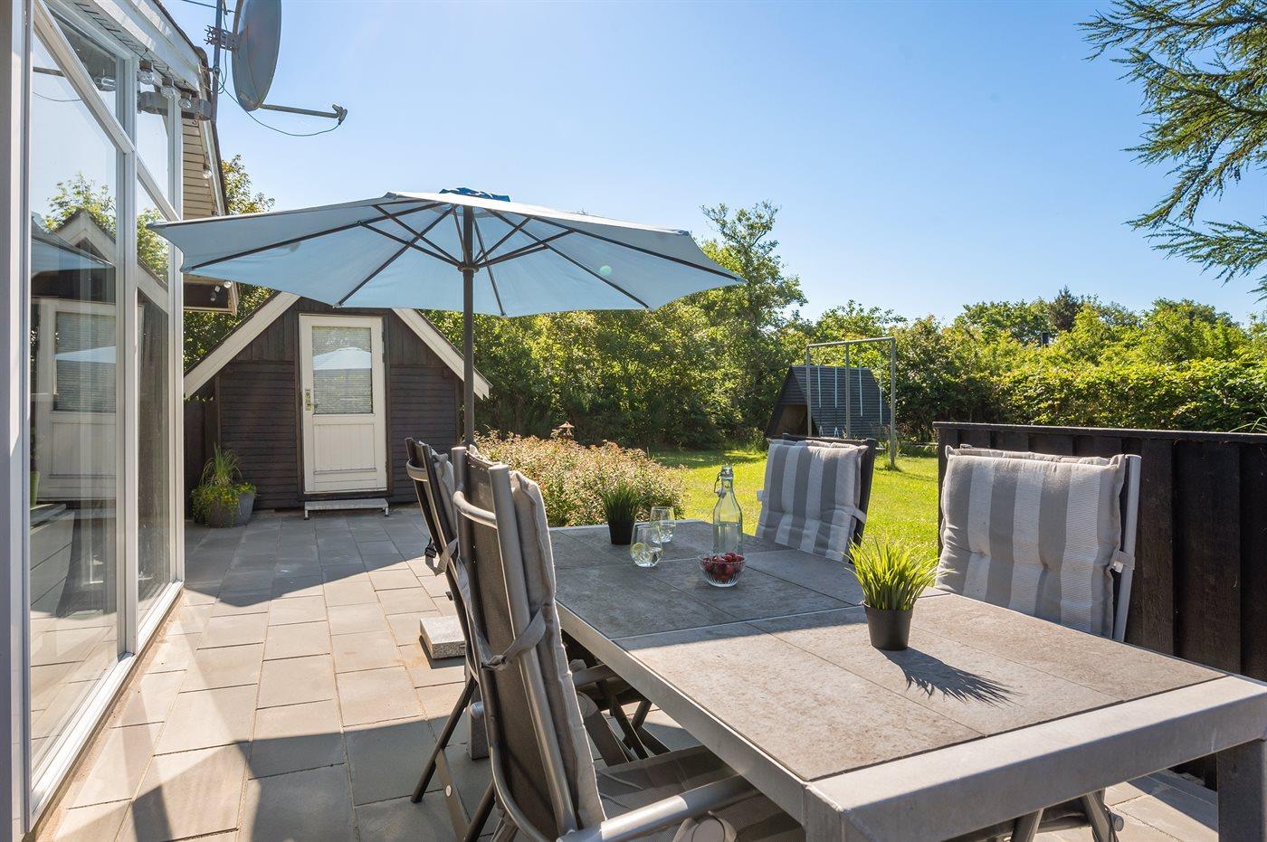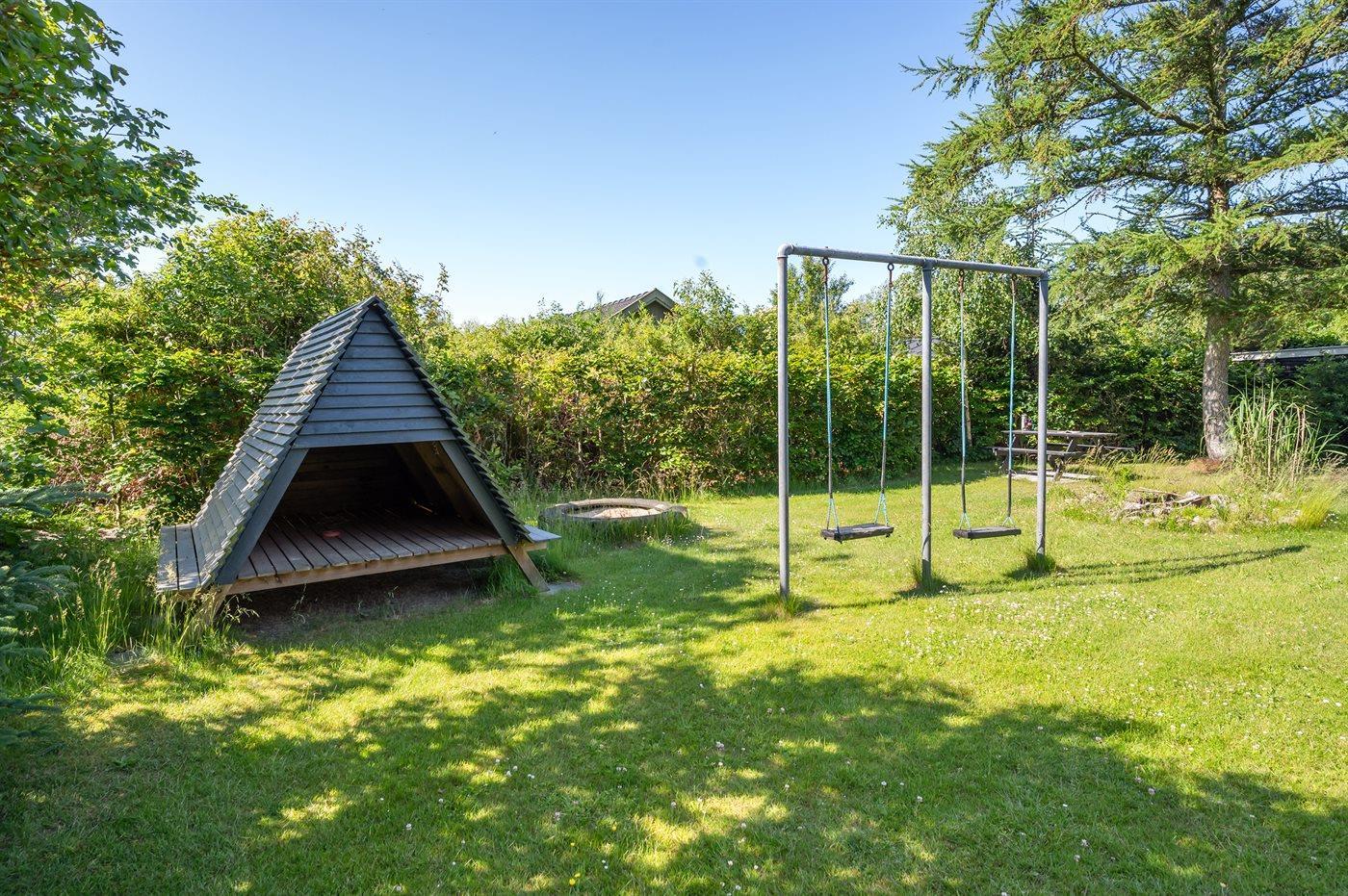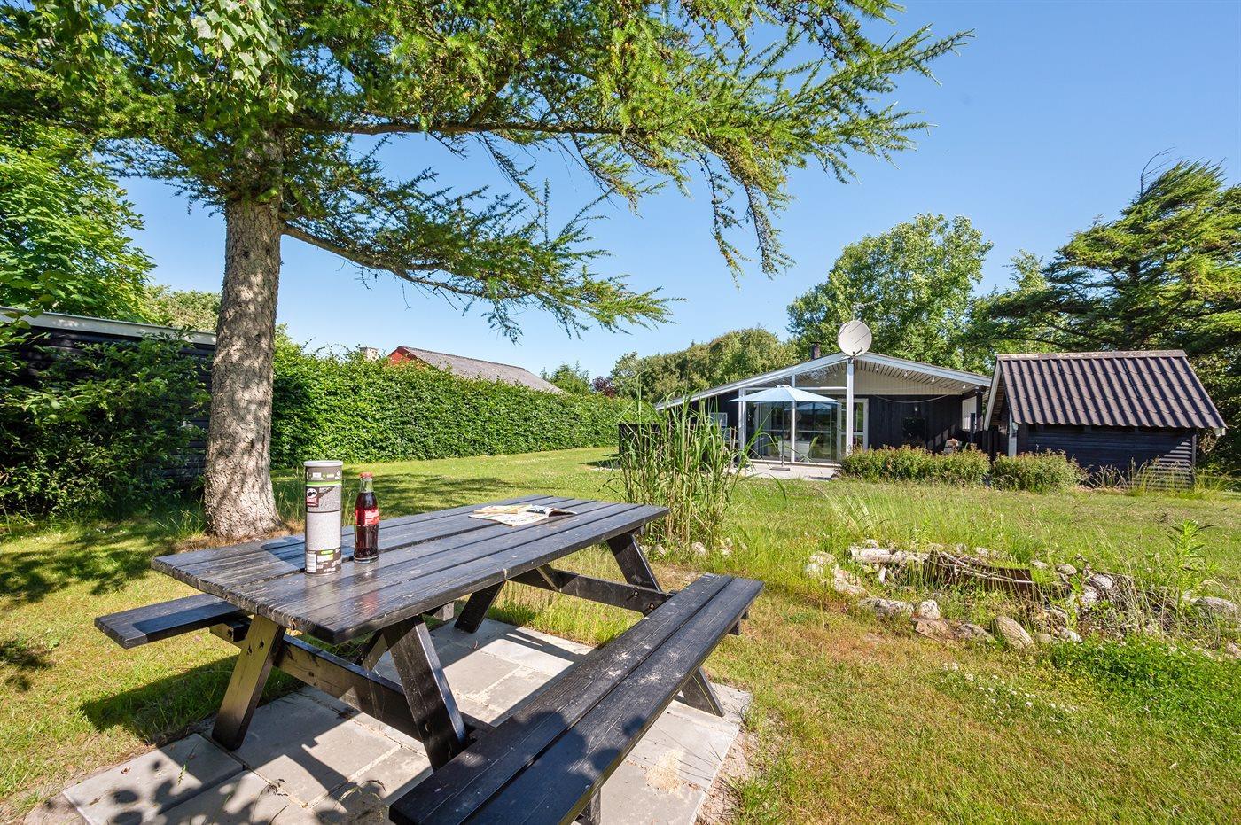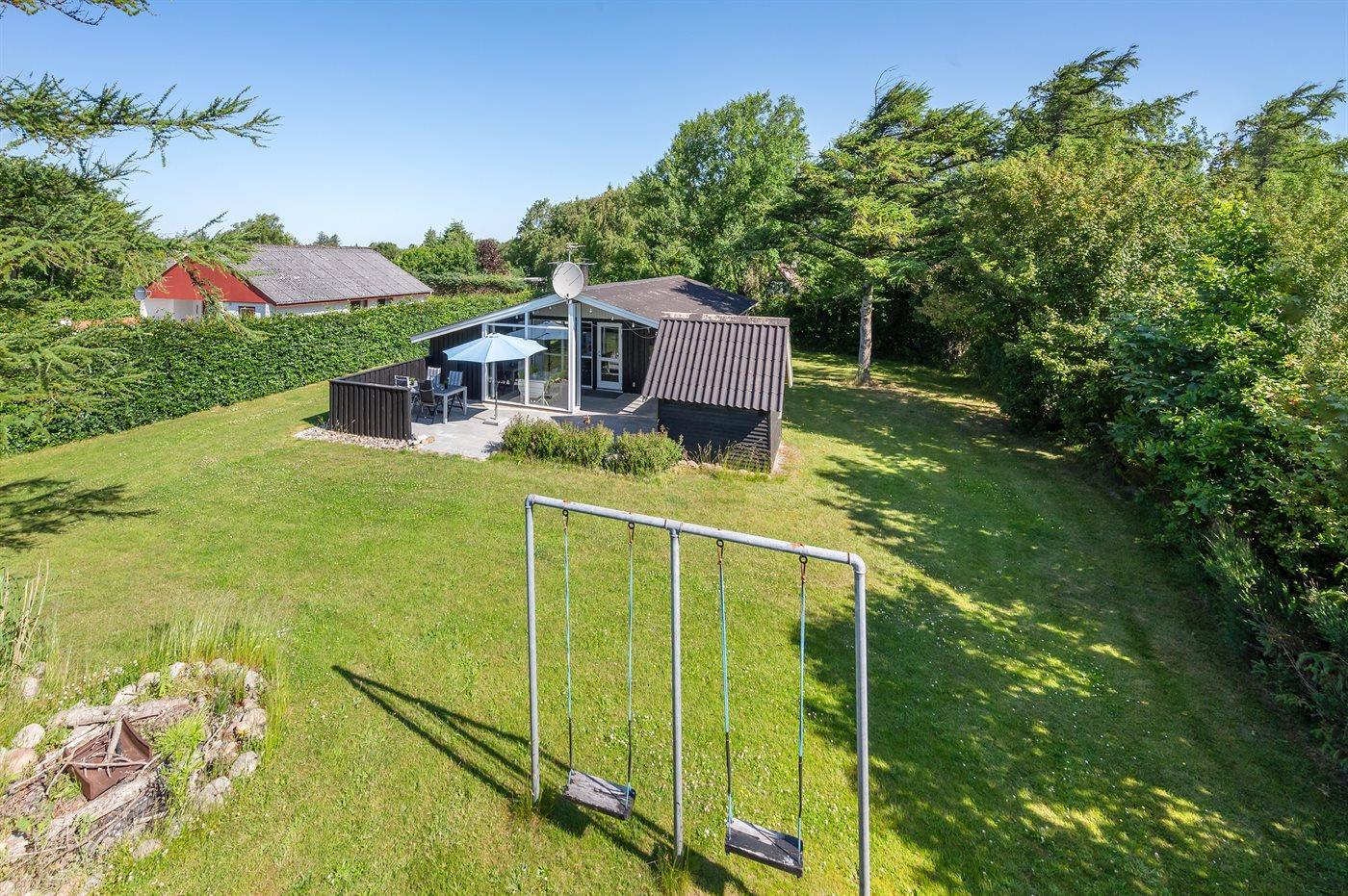 The holiday home is situated on a 910 m² natural site. Situated 5000 m from the sea. Situated 200 m from inlet. Nearest shop is 2000 m away. A 26 m² terrace belong to the holiday home. Furthermore the house has a 16 m² covered terrace. You find a tool shed. Swing. Sandbox. Parking place by the holiday home.