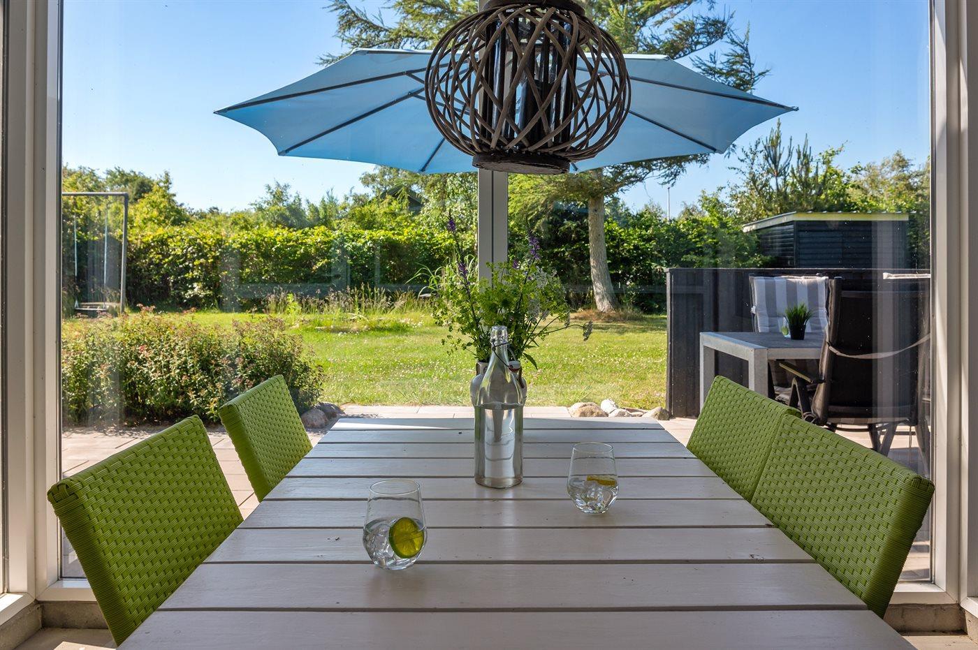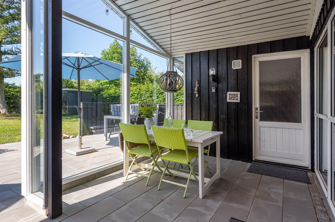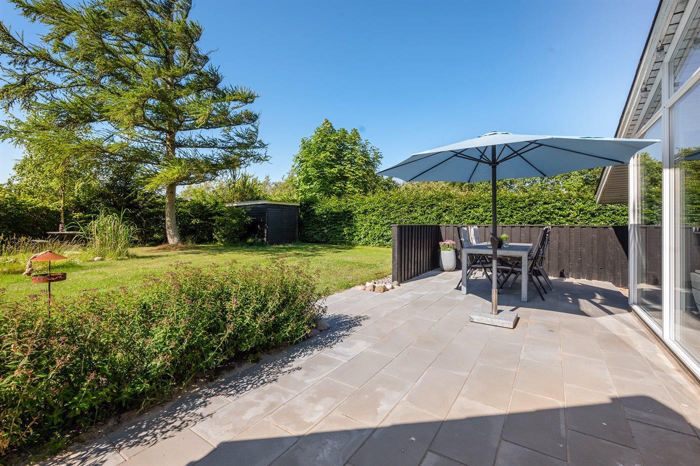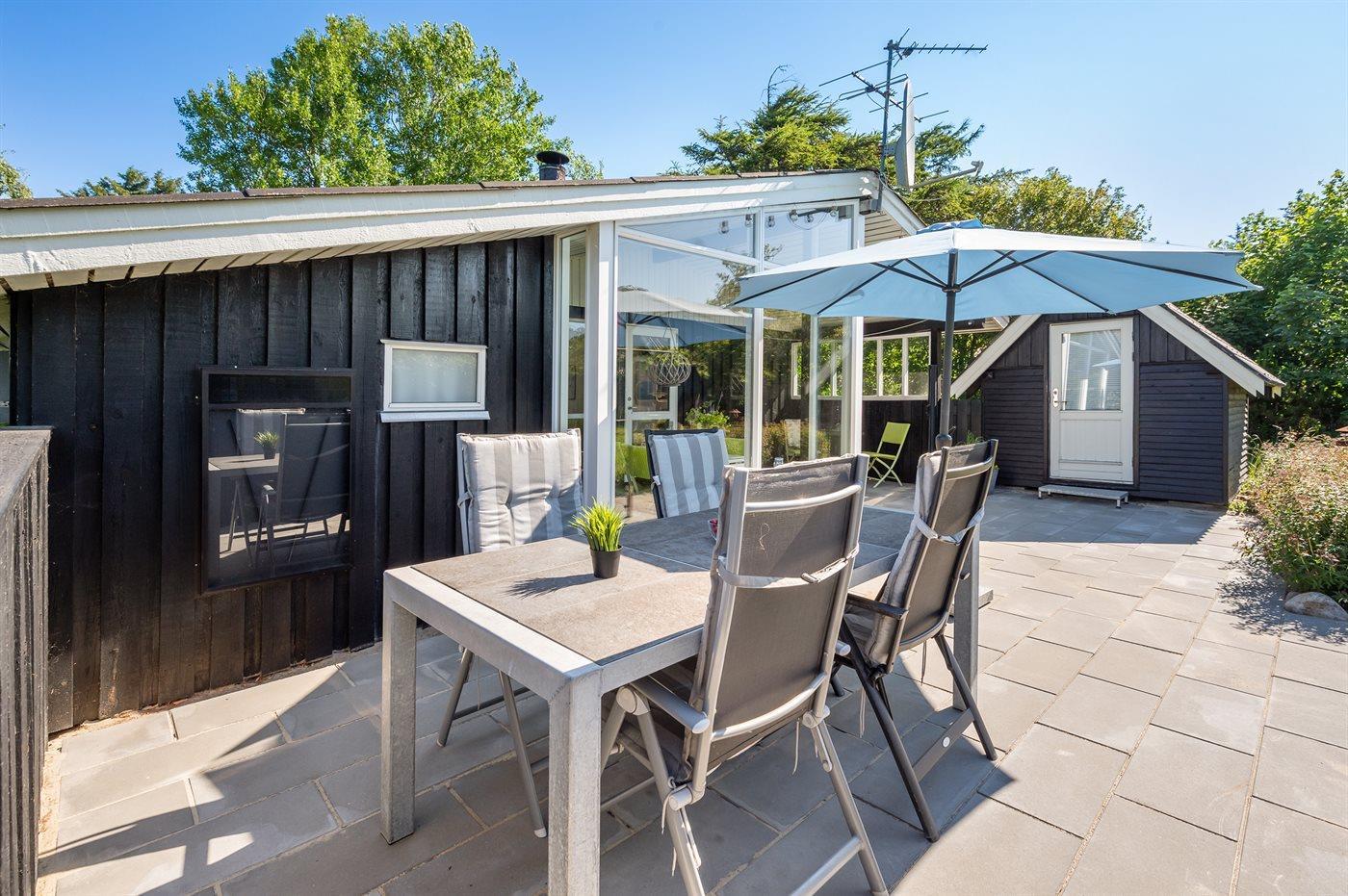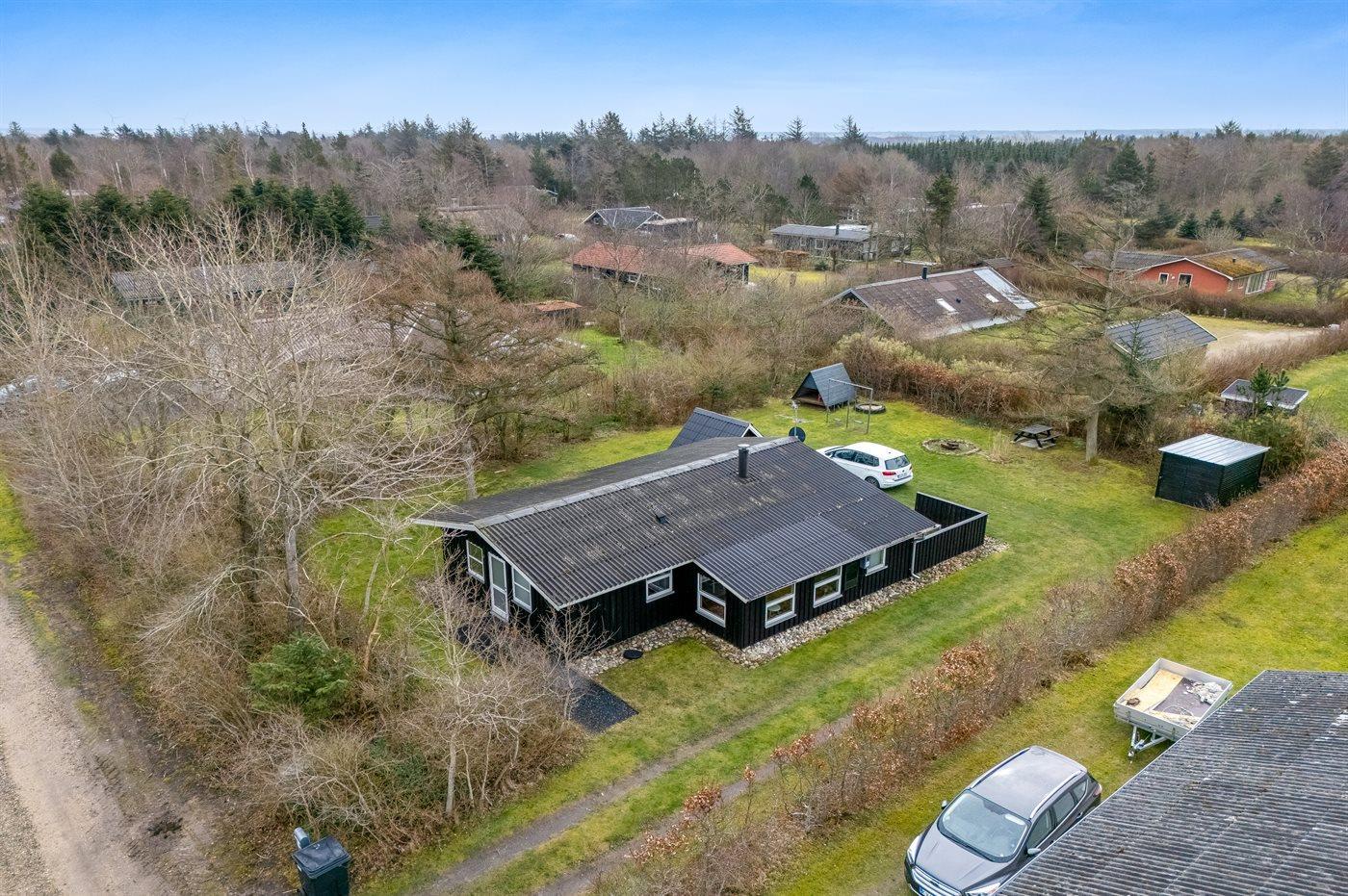 The holiday home is situated on a 910 m² natural site. Situated 5000 m from the sea. Situated 200 m from inlet. Nearest shop is 2000 m away. A 26 m² terrace belong to the holiday home. Furthermore the house has a 16 m² covered terrace. You find a tool shed. Swing. Sandbox. Parking place by the holiday home.