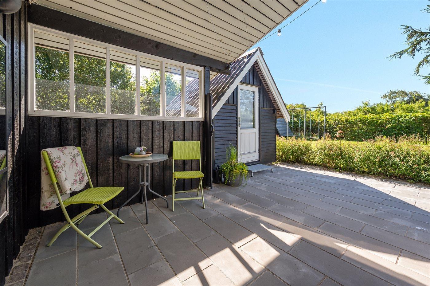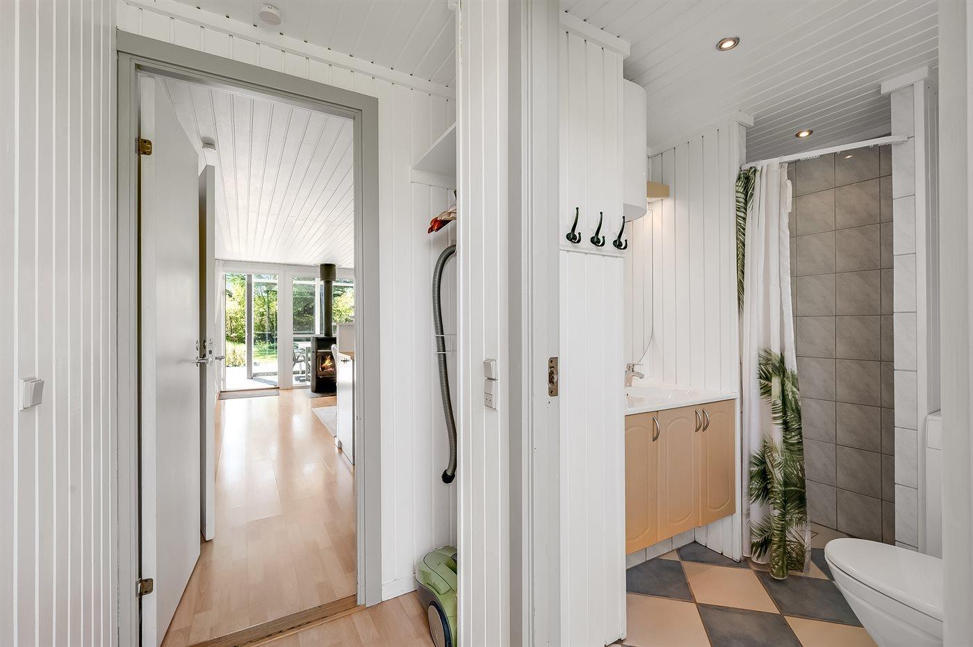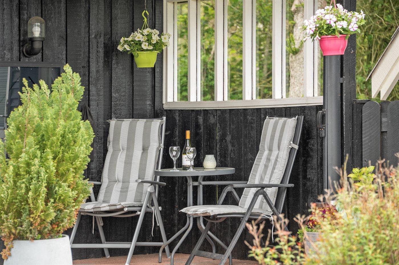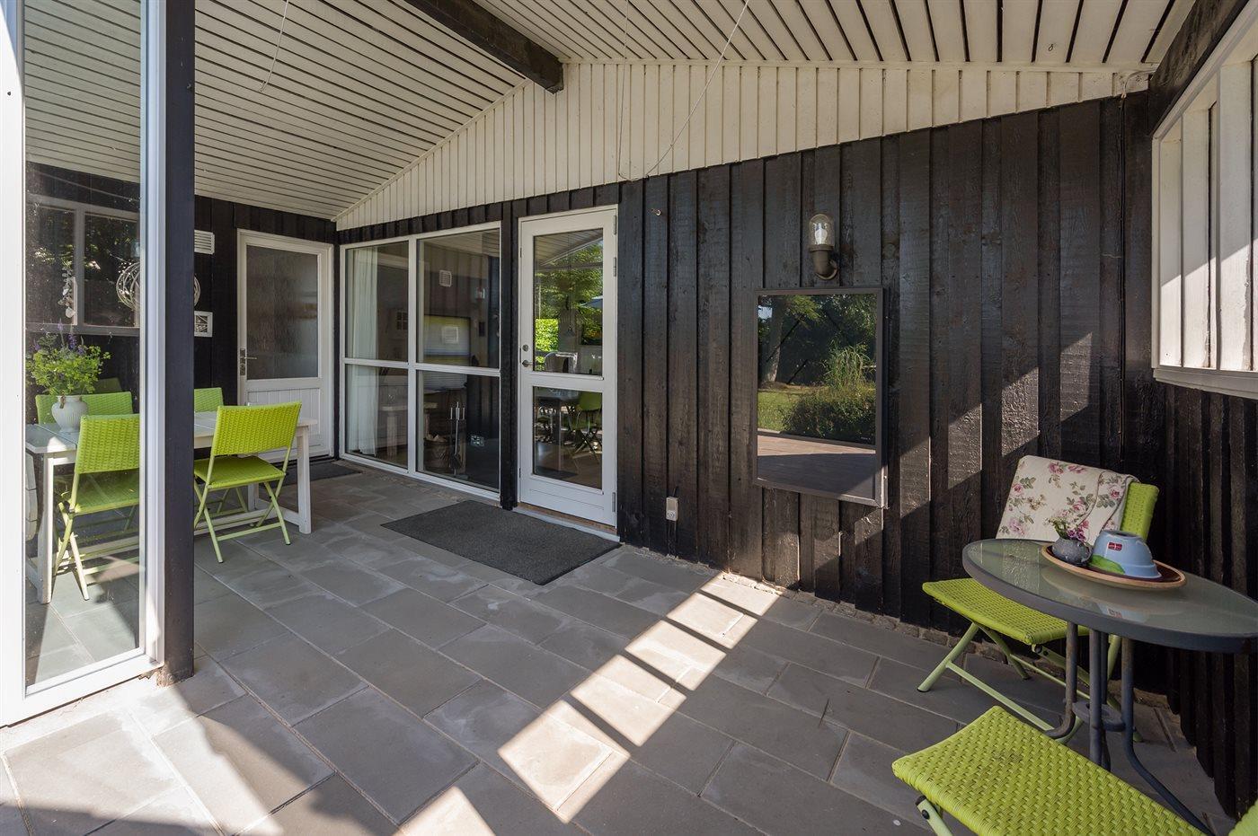 The holiday home is situated on a 910 m² natural site. Situated 5000 m from the sea. Situated 200 m from inlet. Nearest shop is 2000 m away. A 26 m² terrace belong to the holiday home. Furthermore the house has a 16 m² covered terrace. You find a tool shed. Swing. Sandbox. Parking place by the holiday home.