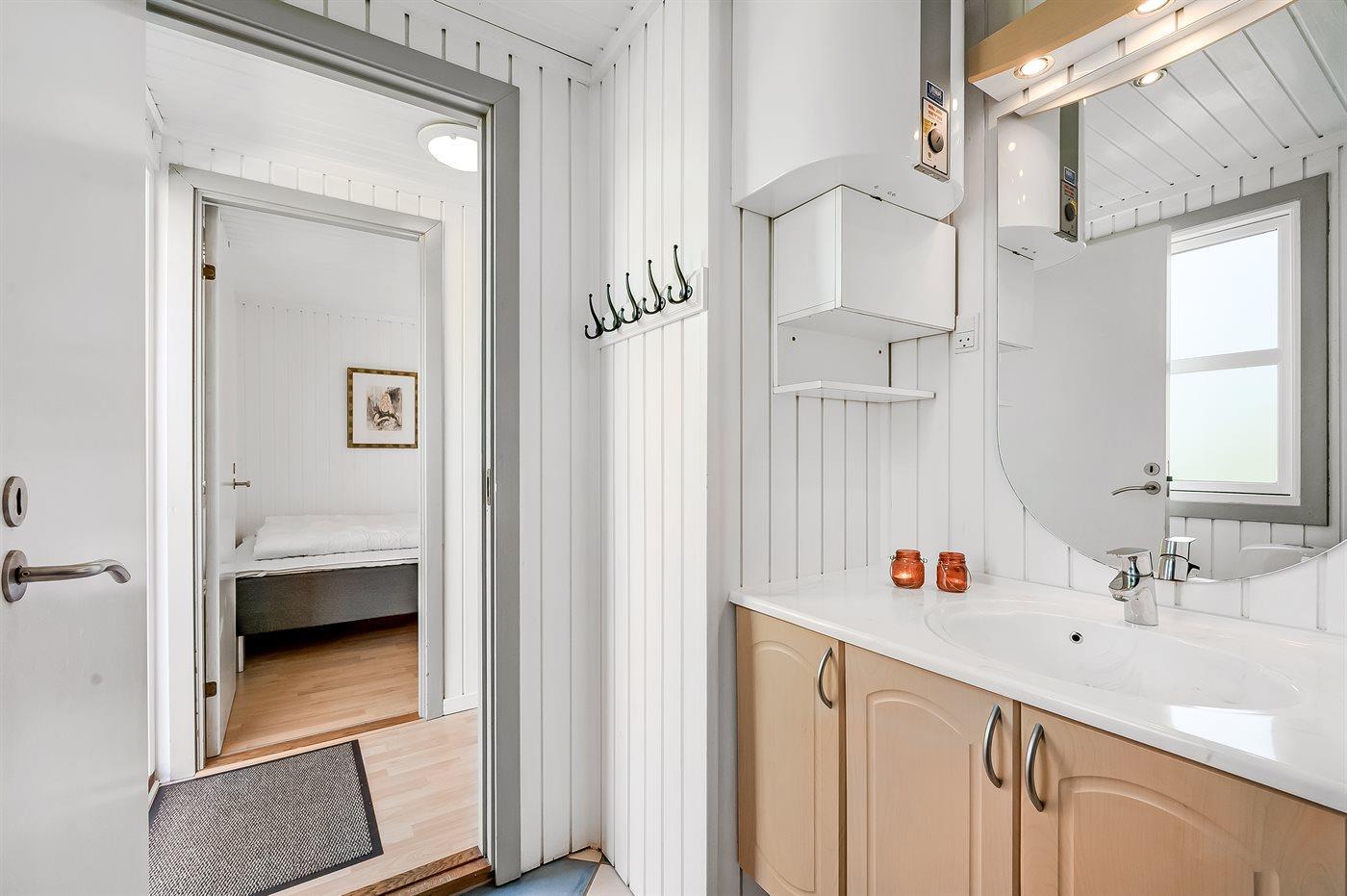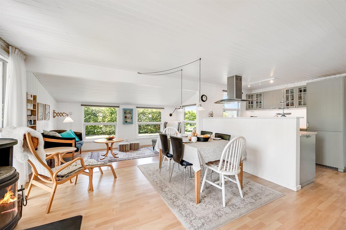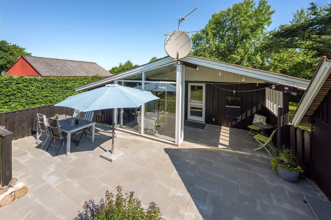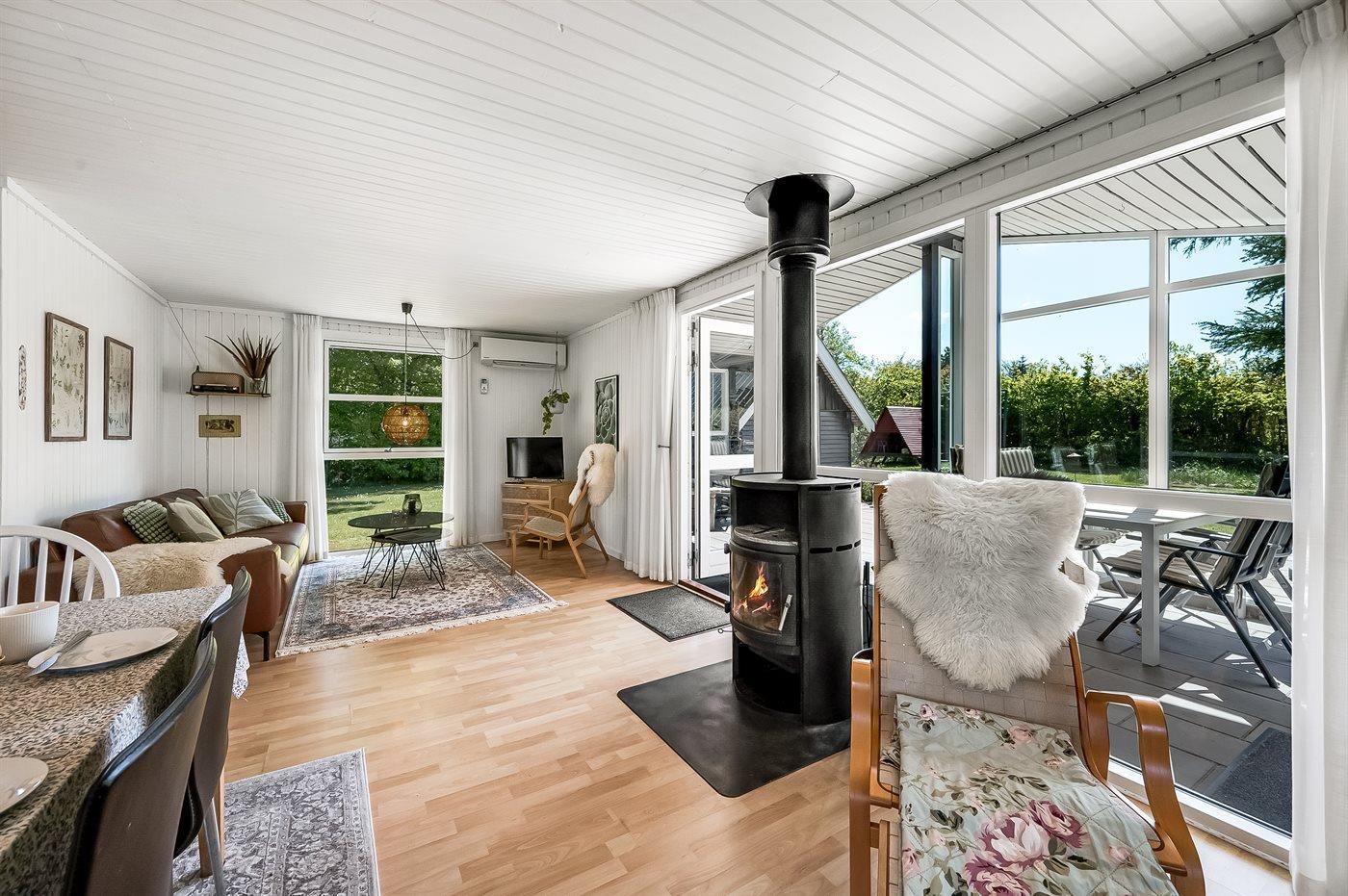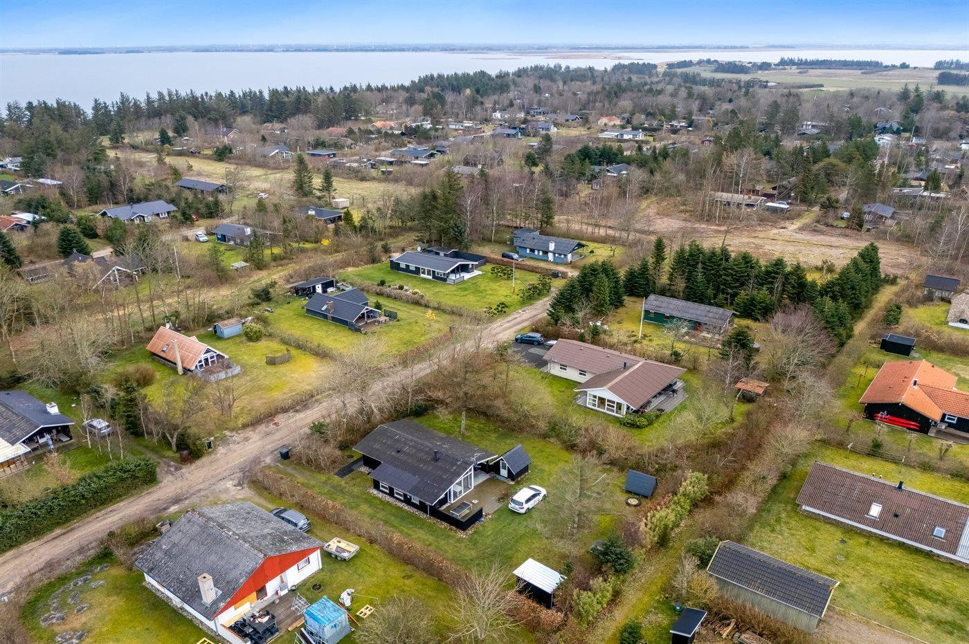 The holiday home is situated on a 910 m² natural site. Situated 5000 m from the sea. Situated 200 m from inlet. Nearest shop is 2000 m away. A 26 m² terrace belong to the holiday home. Furthermore the house has a 16 m² covered terrace. You find a tool shed. Swing. Sandbox. Parking place by the holiday home.
