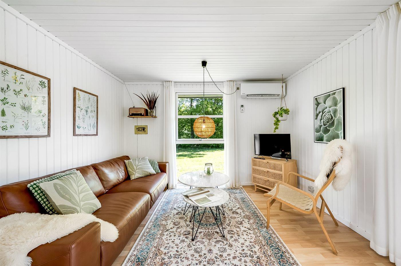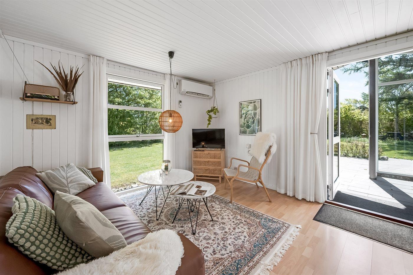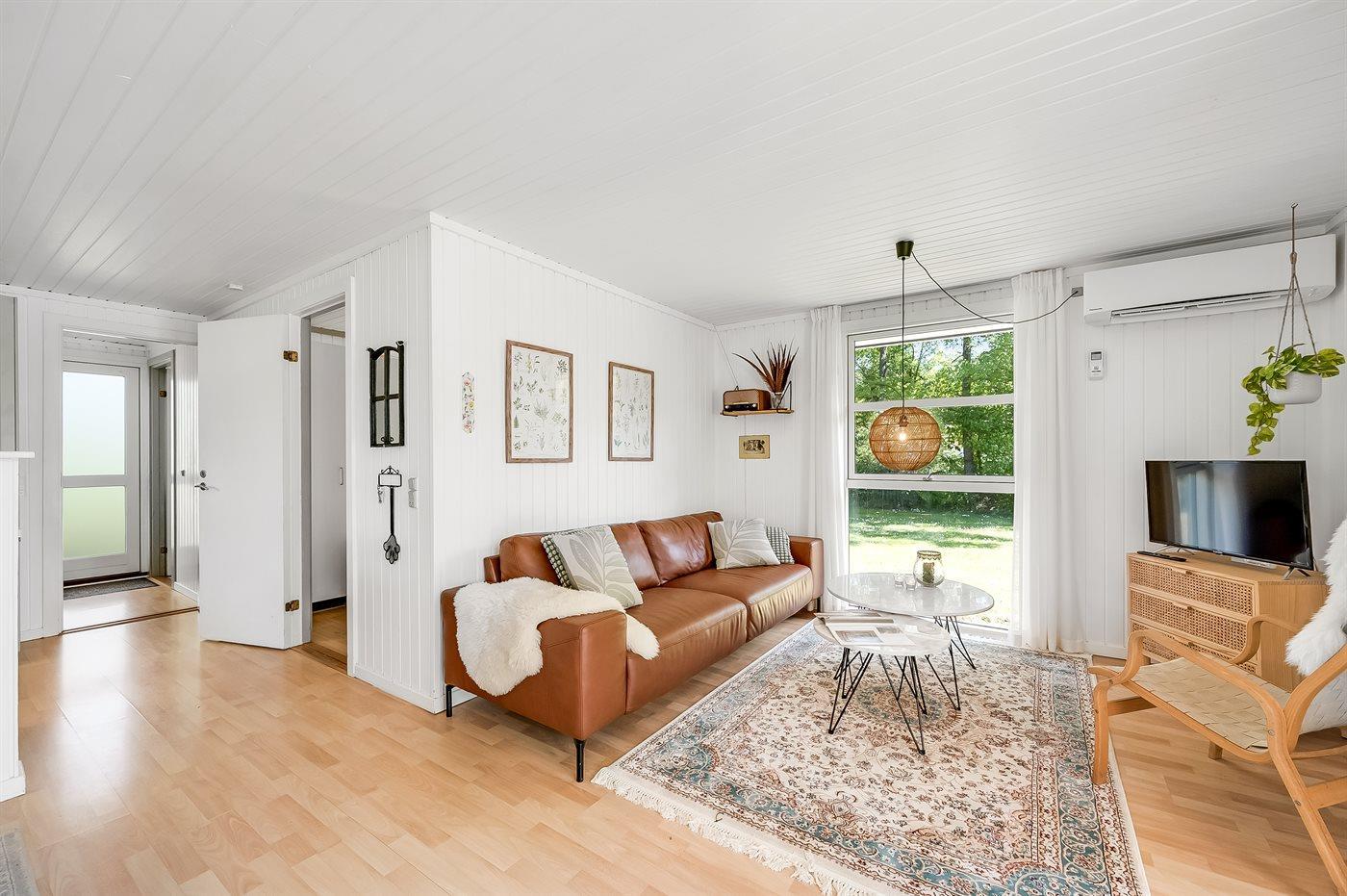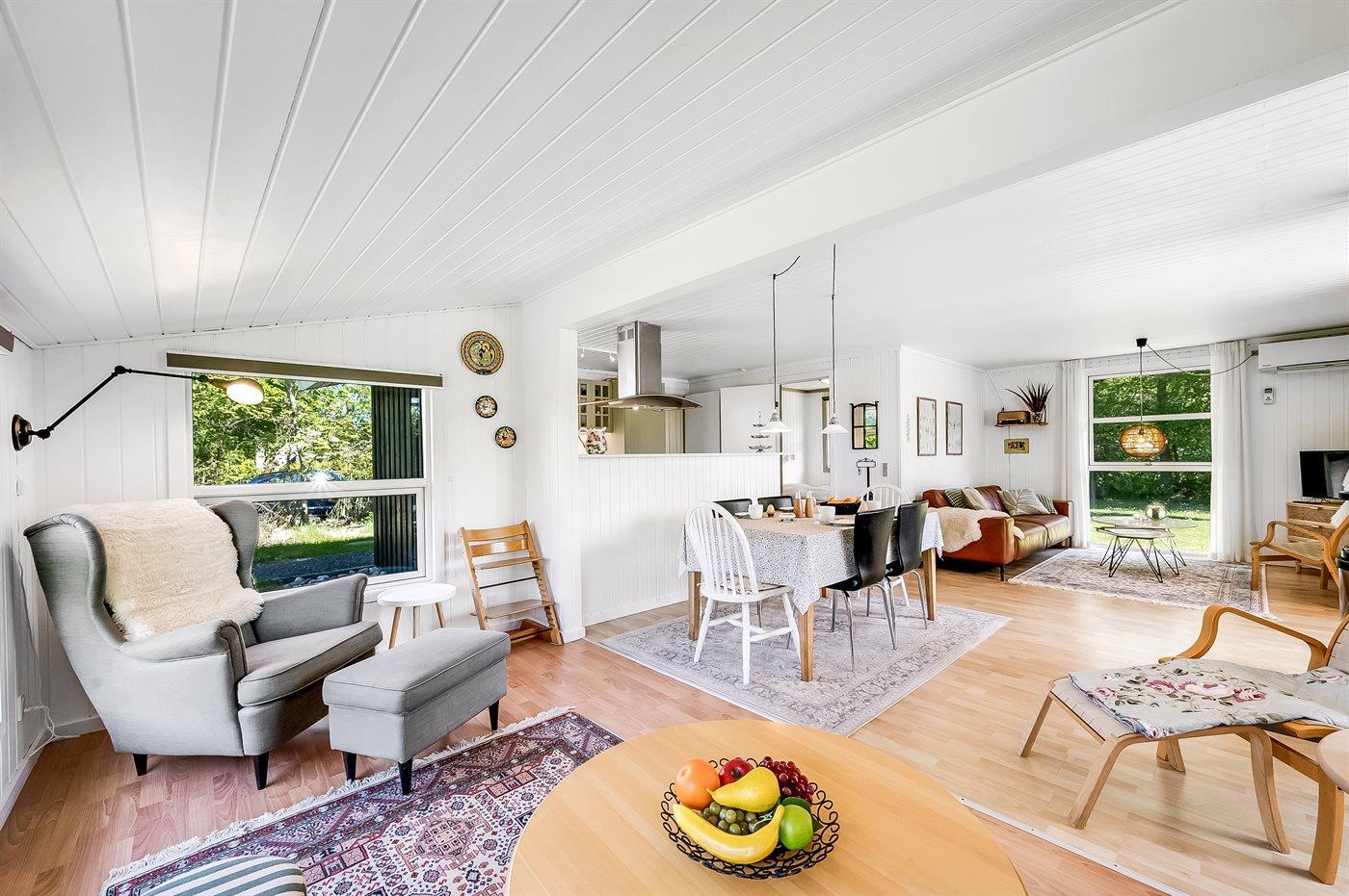 The holiday home is situated on a 910 m² natural site. Situated 5000 m from the sea. Situated 200 m from inlet. Nearest shop is 2000 m away. A 26 m² terrace belong to the holiday home. Furthermore the house has a 16 m² covered terrace. You find a tool shed. Swing. Sandbox. Parking place by the holiday home.