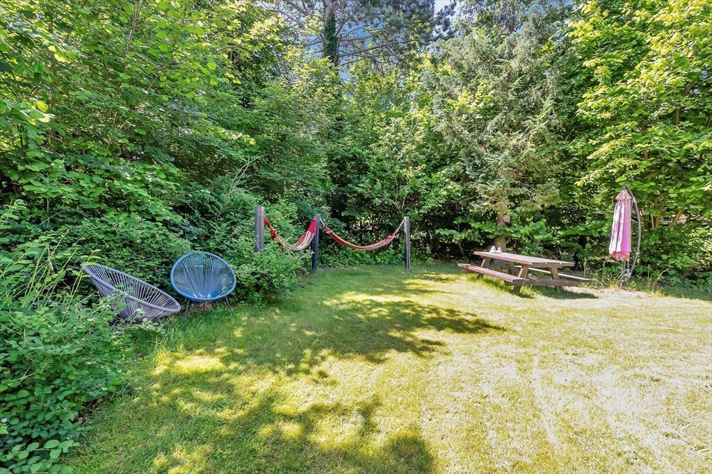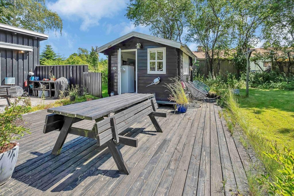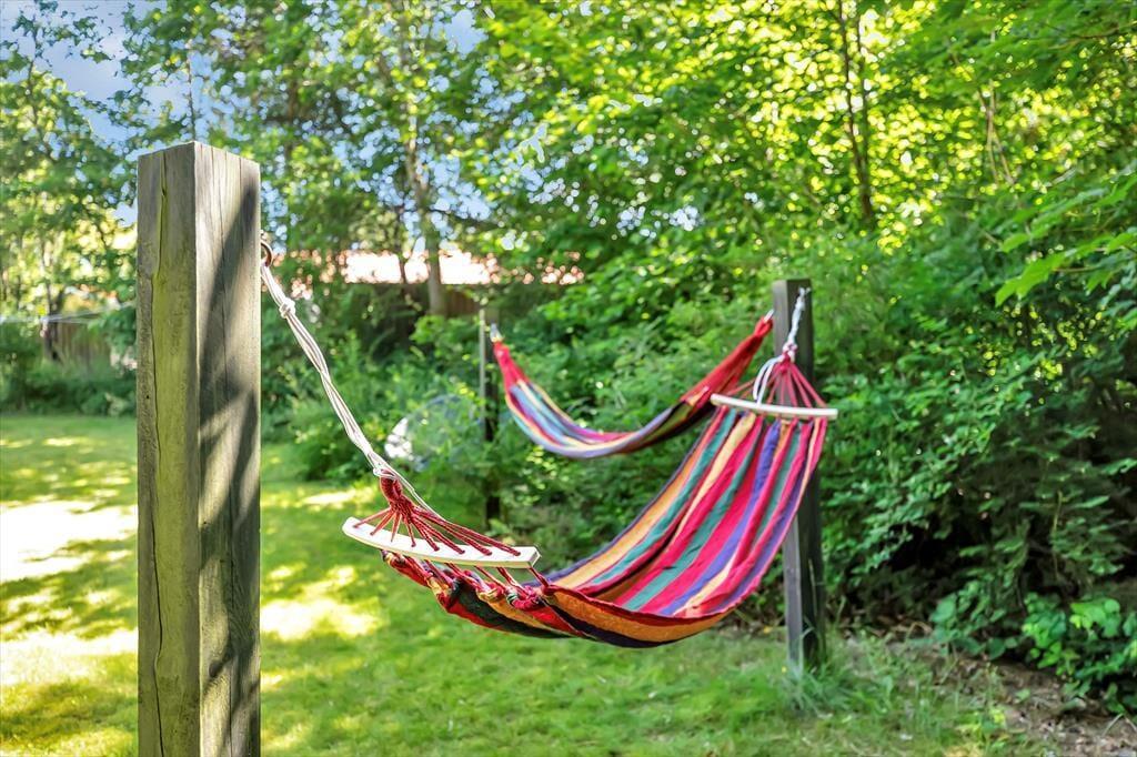 Auf der großen Terrasse, die sich in unterschiedliche Bereiche unterteilt, kannst du es dir ganz nach persönlicher Vorliebe im Schatten oder in der Sonne gemütlich machen. Sonnige Aufenthaltsplätze findest du von morgens bis abends. Während du in aller Ruhe die Seele baumeln lässt, spielen deine Kinder vergnügt Fußball oder die von euch mitgebrachten Gartenspiele. Dein Ferienhausgrundstück wirkt aufgrund der dichten Randbepflanzung wie eine kleine, private Oase, in der du dich vollends entspannst und mit bester Urlaubsstimmung verwöhnt wirst.