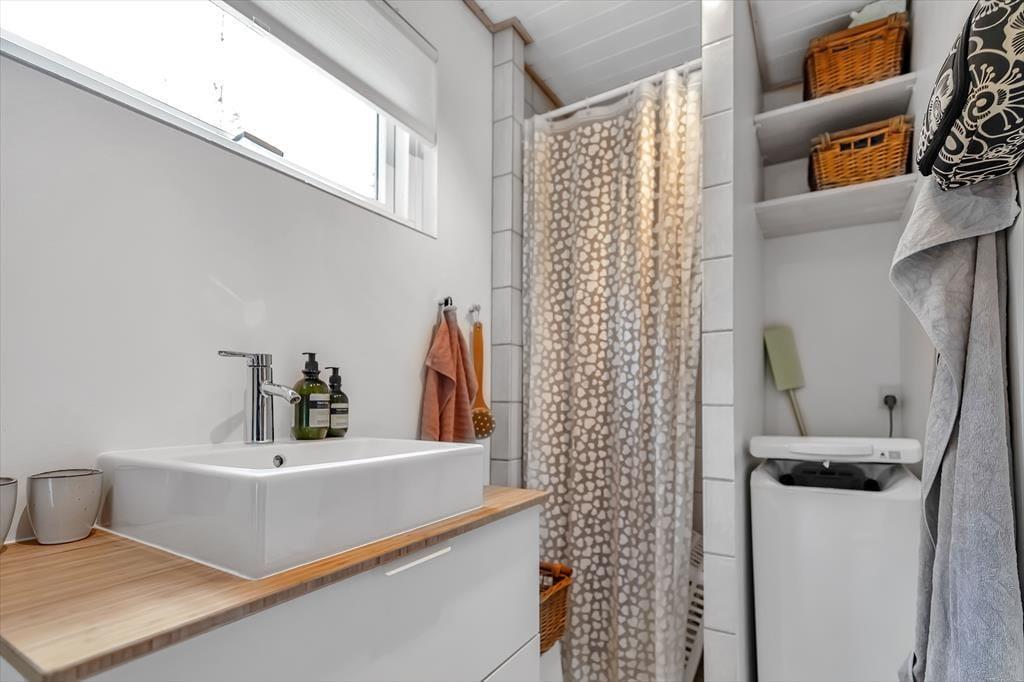 Outdoor showerHeated with solar cells, so temperature depends on the weather