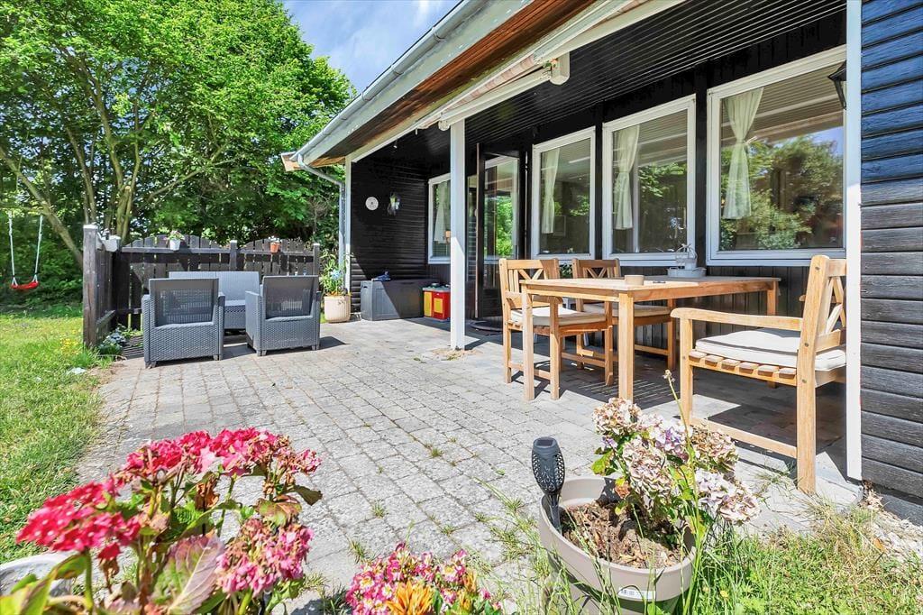 Auf der gepflasterten Terrasse deines Urlaubsdomizils genießt du Sonne und Schatten zugleich. Die Terrasse verfügt über einen überdachten Bereich, der sich wunderbar zum Lesen eines spannenden Buches und zum Genießen der Mahlzeiten anbietet. Der offene Teil der Terrasse verwöhnt dich hingegen von morgens bis abends mit Sonne - perfekt für ein entspanntes Sonnenbad auf einer der Gartenliegen. Während du es dir auf der Terrasse gemütlich machst und die Seele baumeln lässt, werden deine Kinder vergnügt im Garten umhertollen, schaukeln und die von zuhause mitgebrachten Gartenspiele spielen.